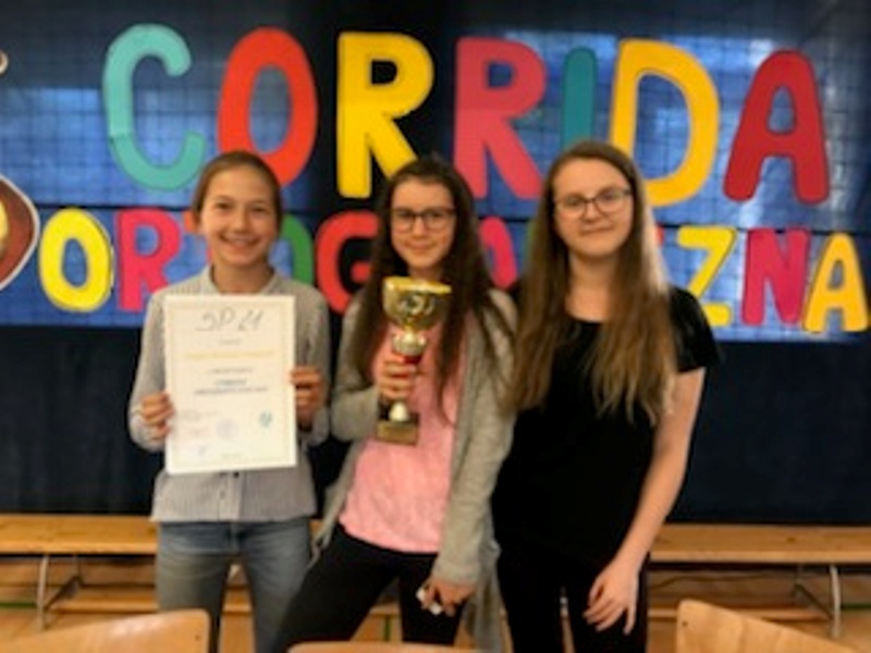 6 czerwca 2018 r. w Szkole Podstawowej nr 4 w Elblągu odbył się Międzyszkolny Konkurs Corrida ortograficzna. Naszą szkołę reprezentowały trzy uczennice: Joanna Karaś z kl. 5d, Maja Wojtaś z kl.6d i Klaudia Krzywdzińska z kl. 7c. Dziewczęta wykazały się bezbłędną znajomością zasad ortograficznych i umiejętnością wykorzystania ich w przeróżnych, naprawdę trudnych konkurencjach i zdobyły puchar oraz tytuł Szkoły Mistrzów Ortografii.