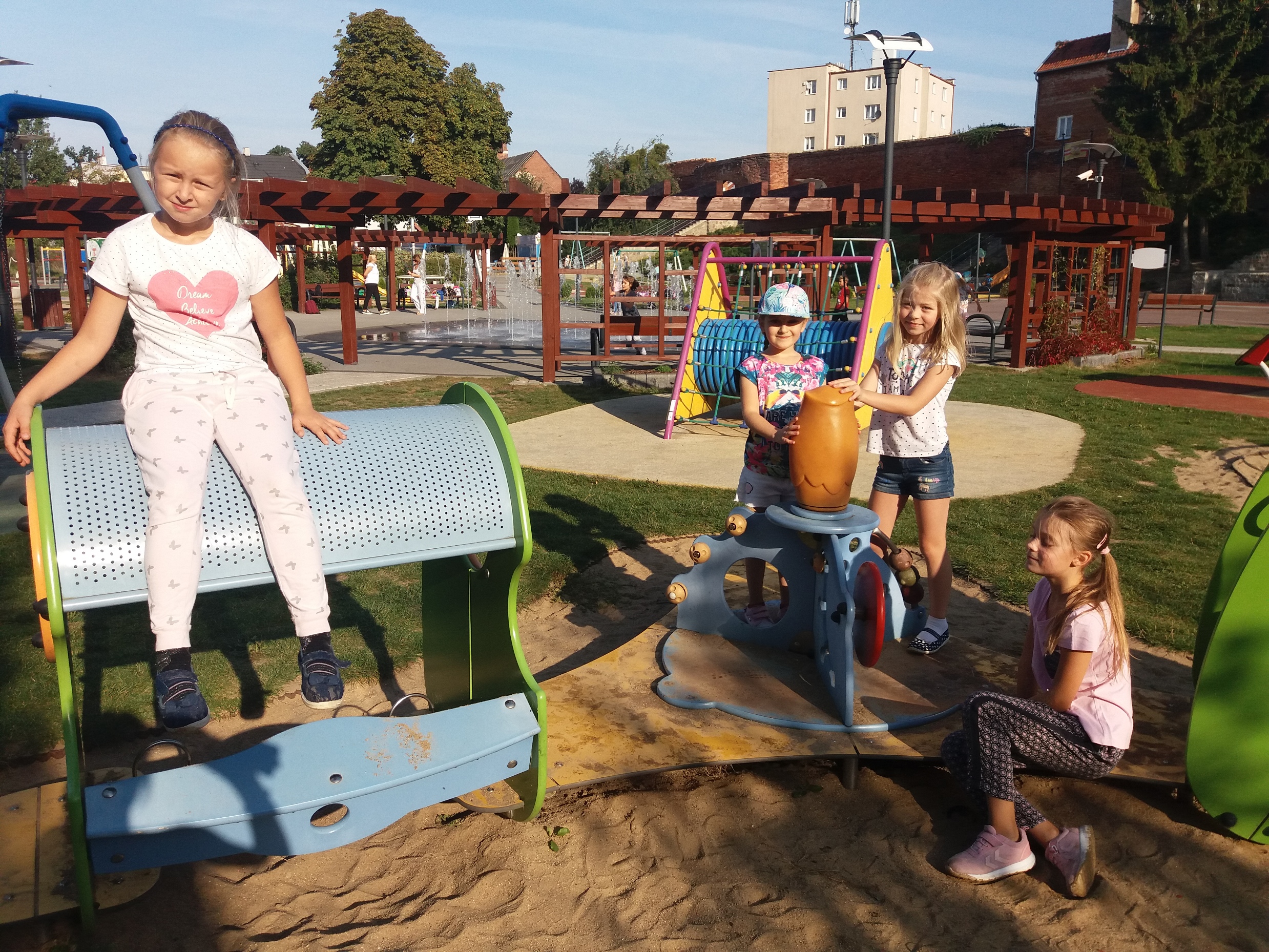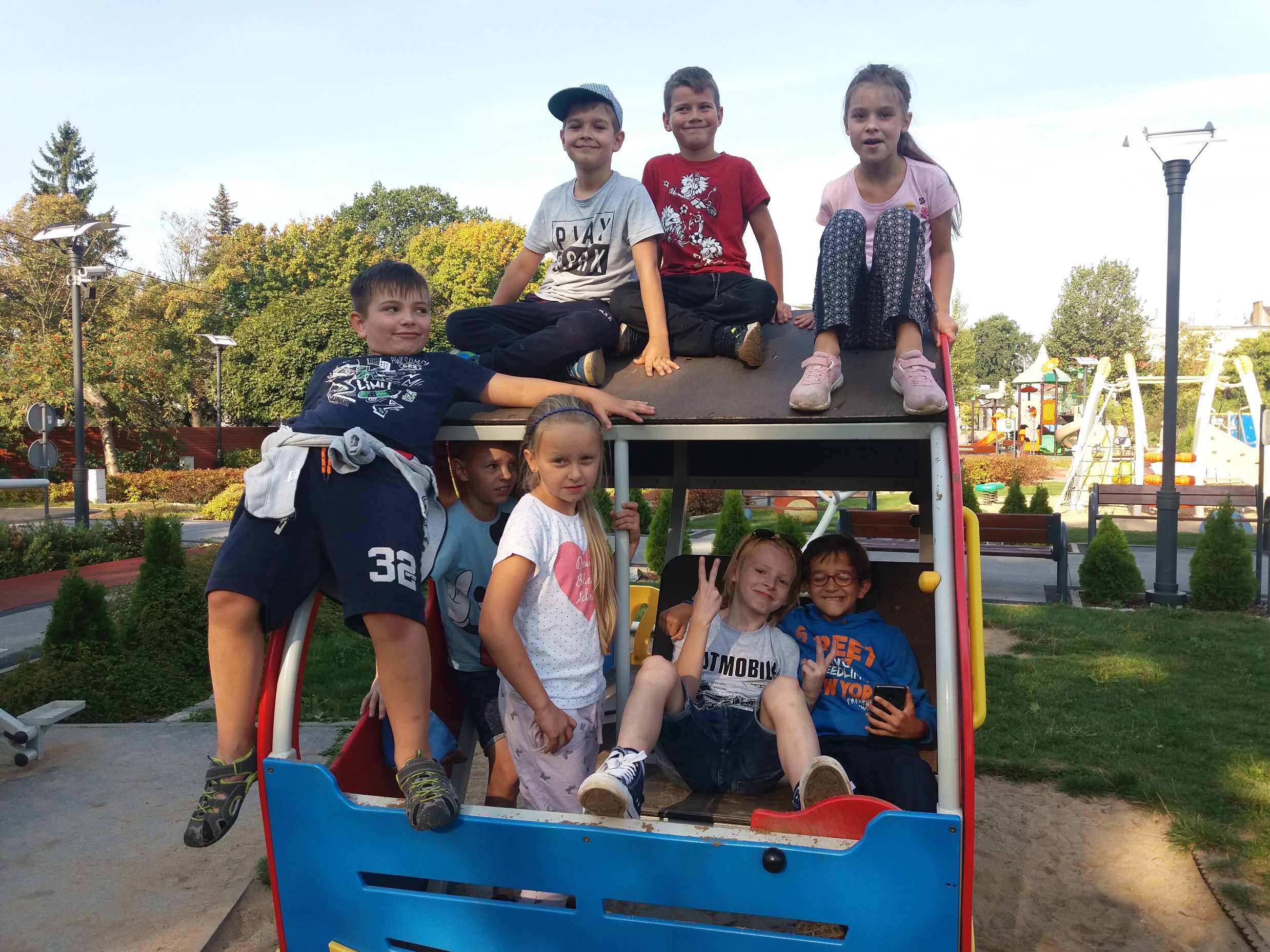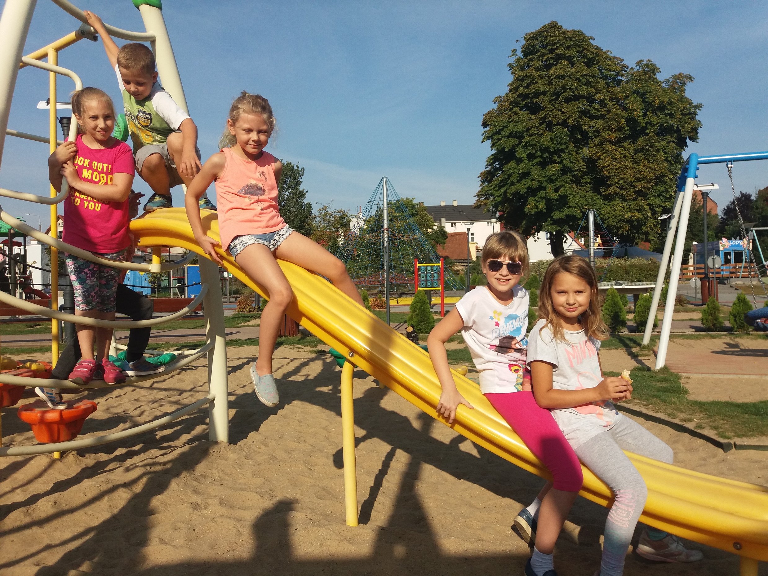 Uczniowie klas 2c, 3a oraz 3c pożegnali lato w Pasłęku. Świetnie bawili się na tutejszym placu zabaw. W różnych strefach biegom, skokom, zjazdom, wspinaczkom…. nie było końca. Następnie wszyscy udali się na pyszne lody i gofry. Ten słoneczny, upalny dzień będzie miłym wspomnieniem gdy nastaną chłodne, deszczowe, jesienne dni.