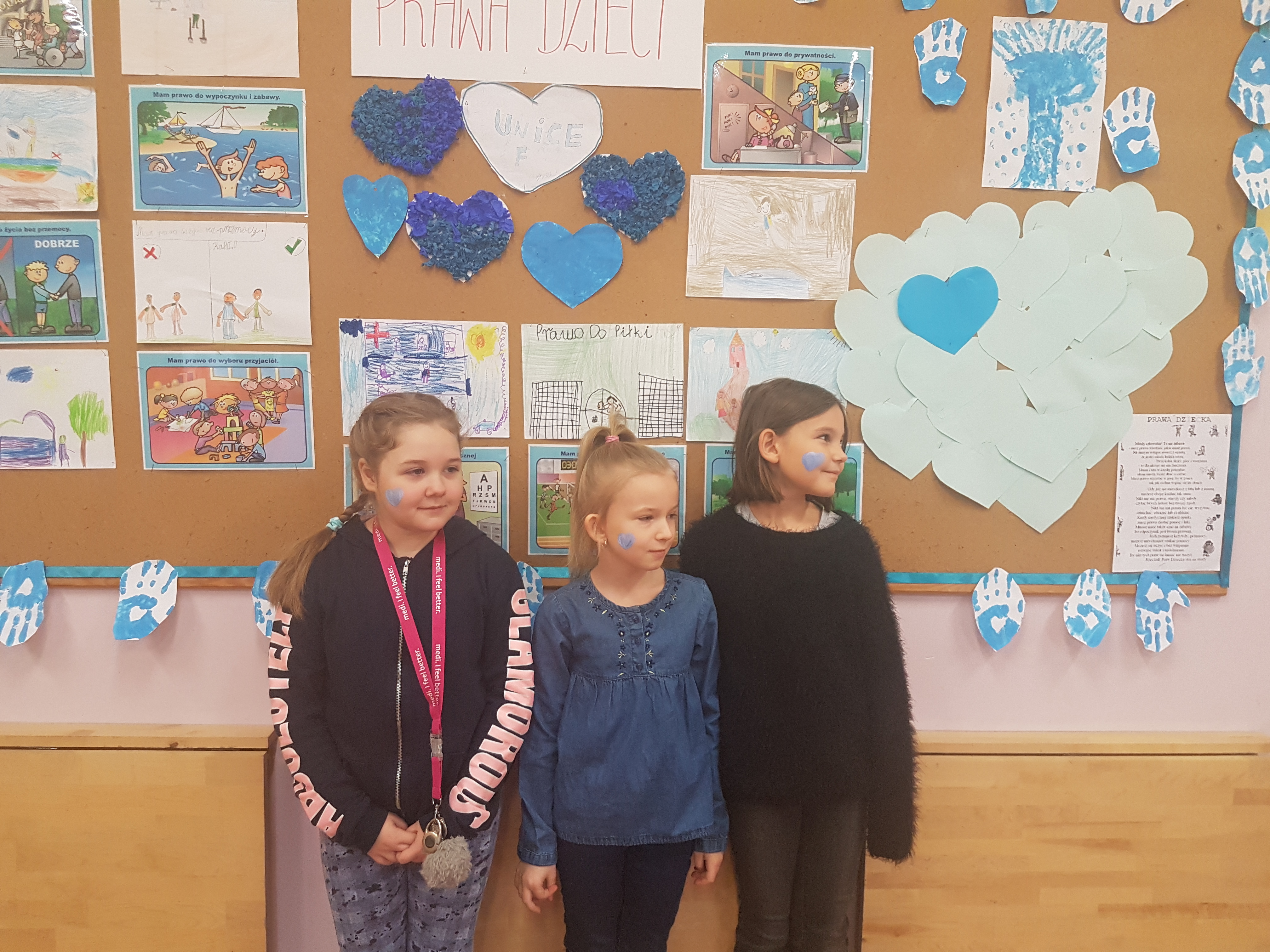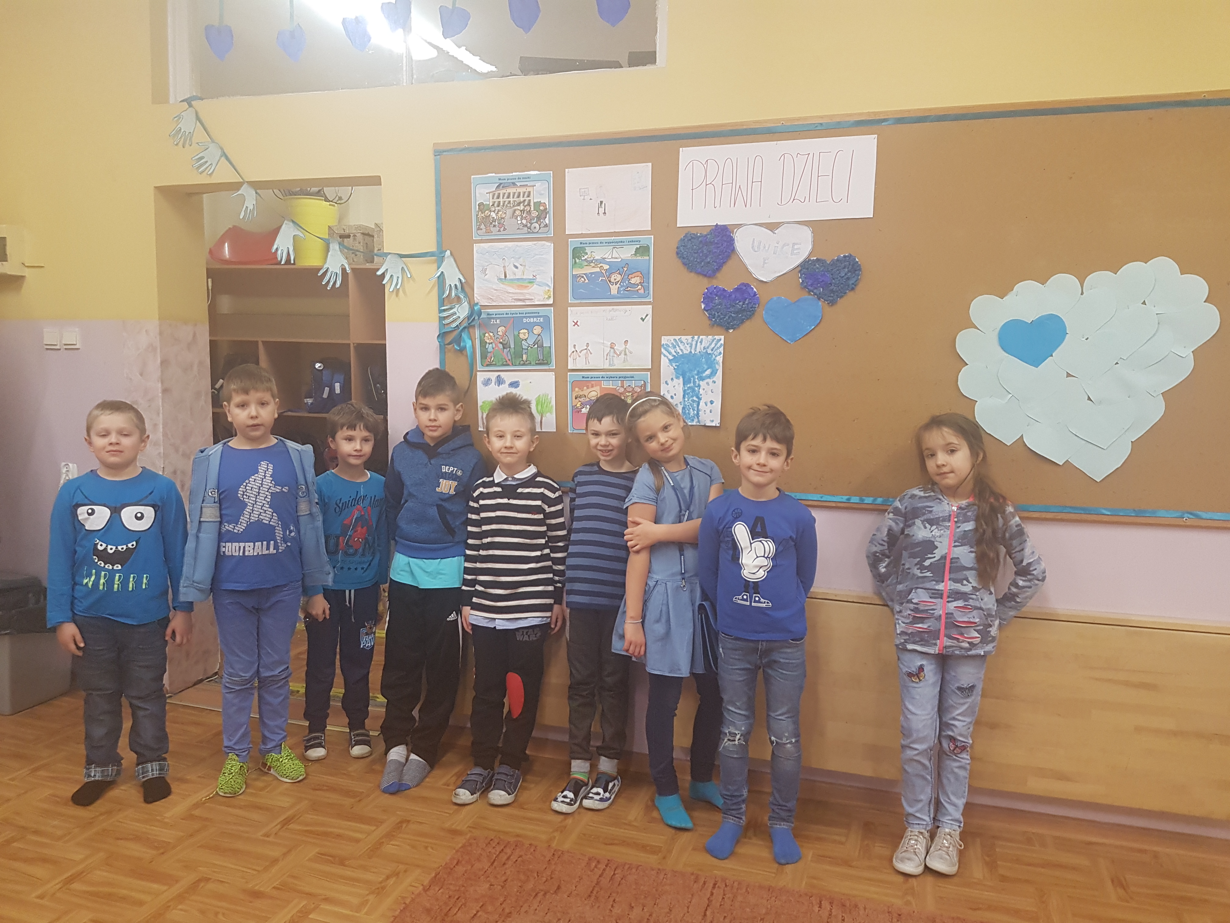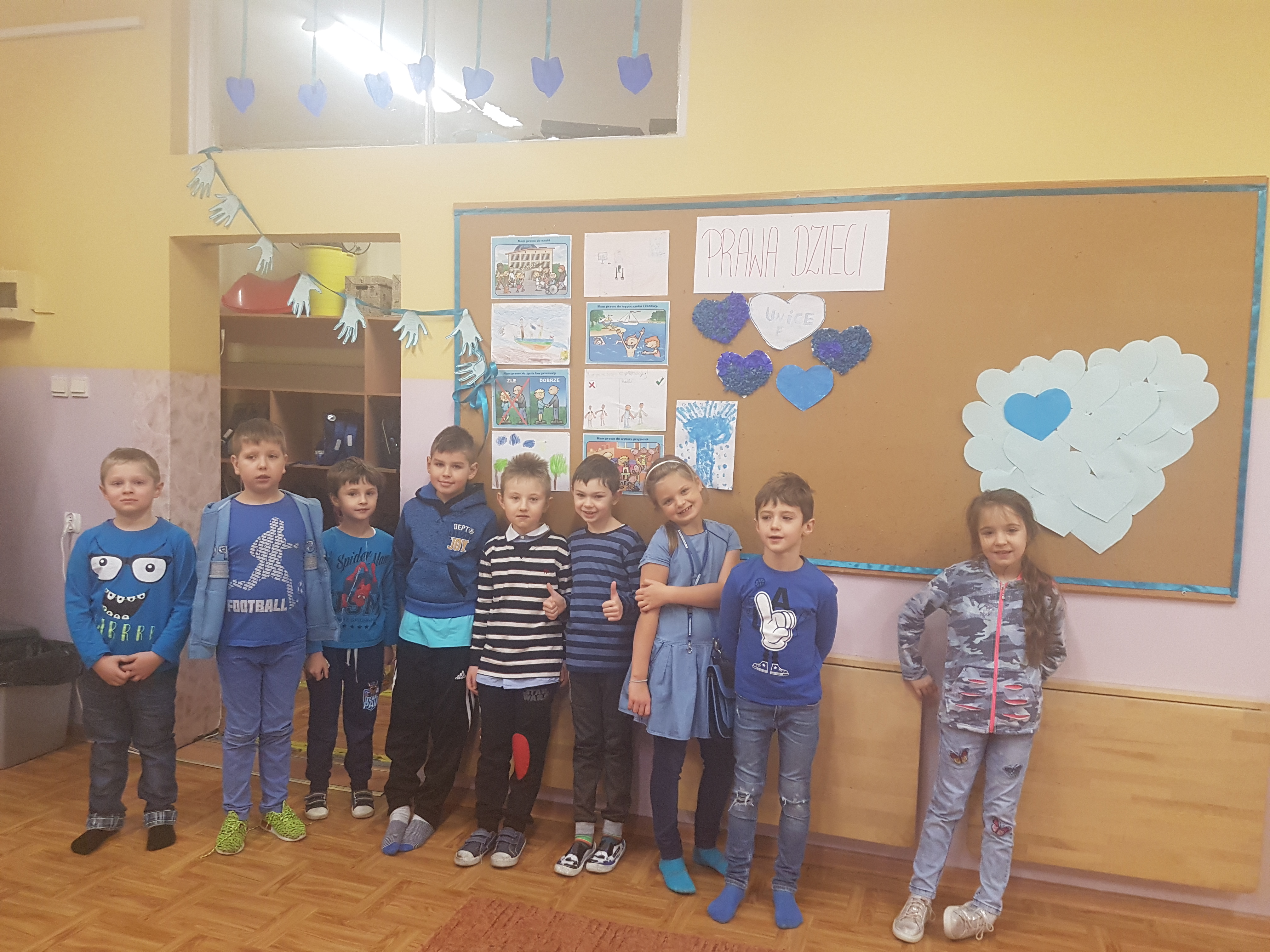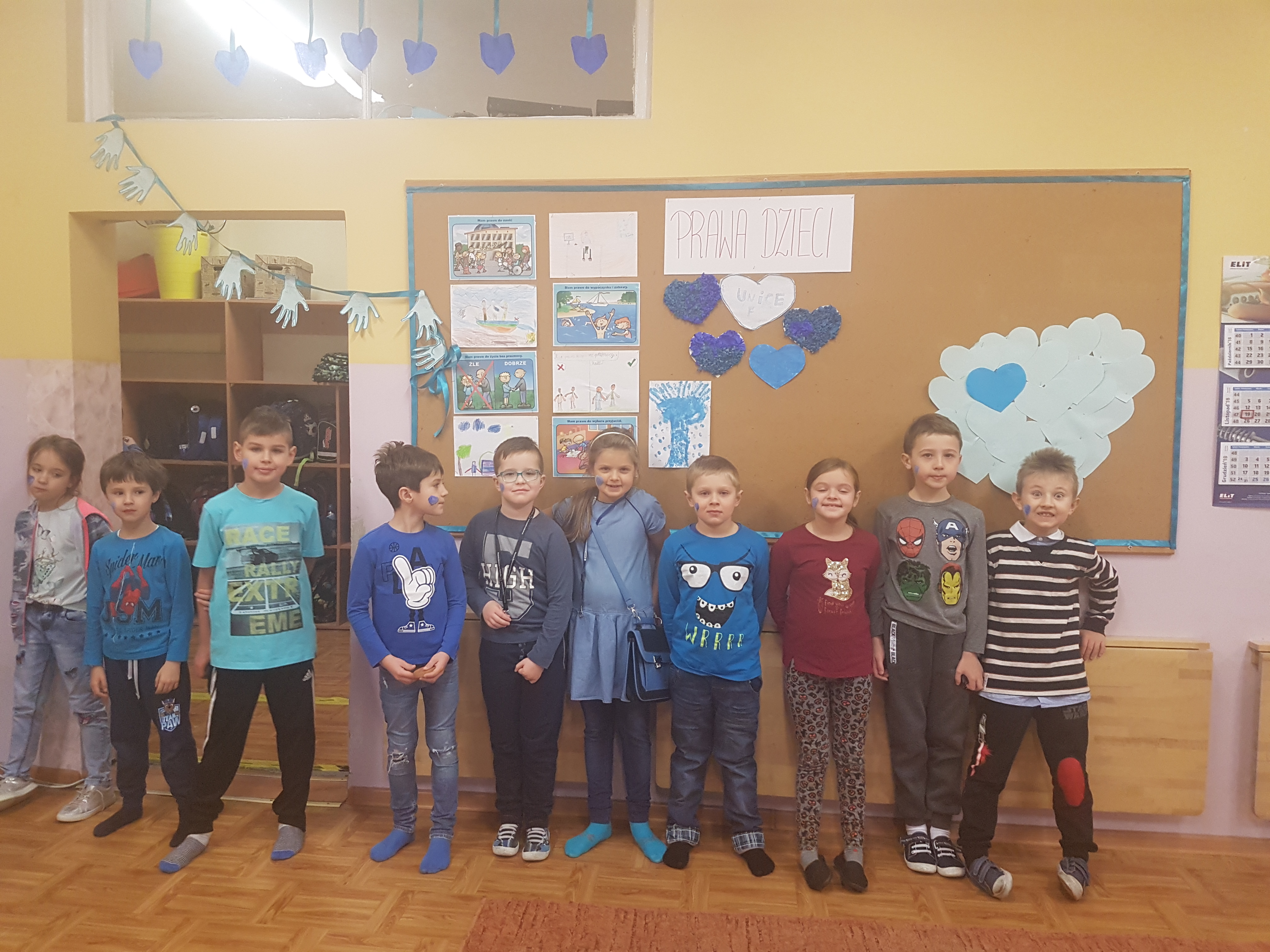 We wtorek 20 listopada przypadał Światowy Dzień Praw Dziecka. Świetlica szkolna włączyła się w tegoroczną akcję #goblue rekomendowaną przez Unicef. Dzieci wraz z wychowawcami wykonywały niebieskie dekoracje sal oraz gazetki tematyczne. Tego dnia ubrani na niebiesko z wymalowanymi na policzkach niebieskimi serduszkami wspólnie świętowaliśmy.