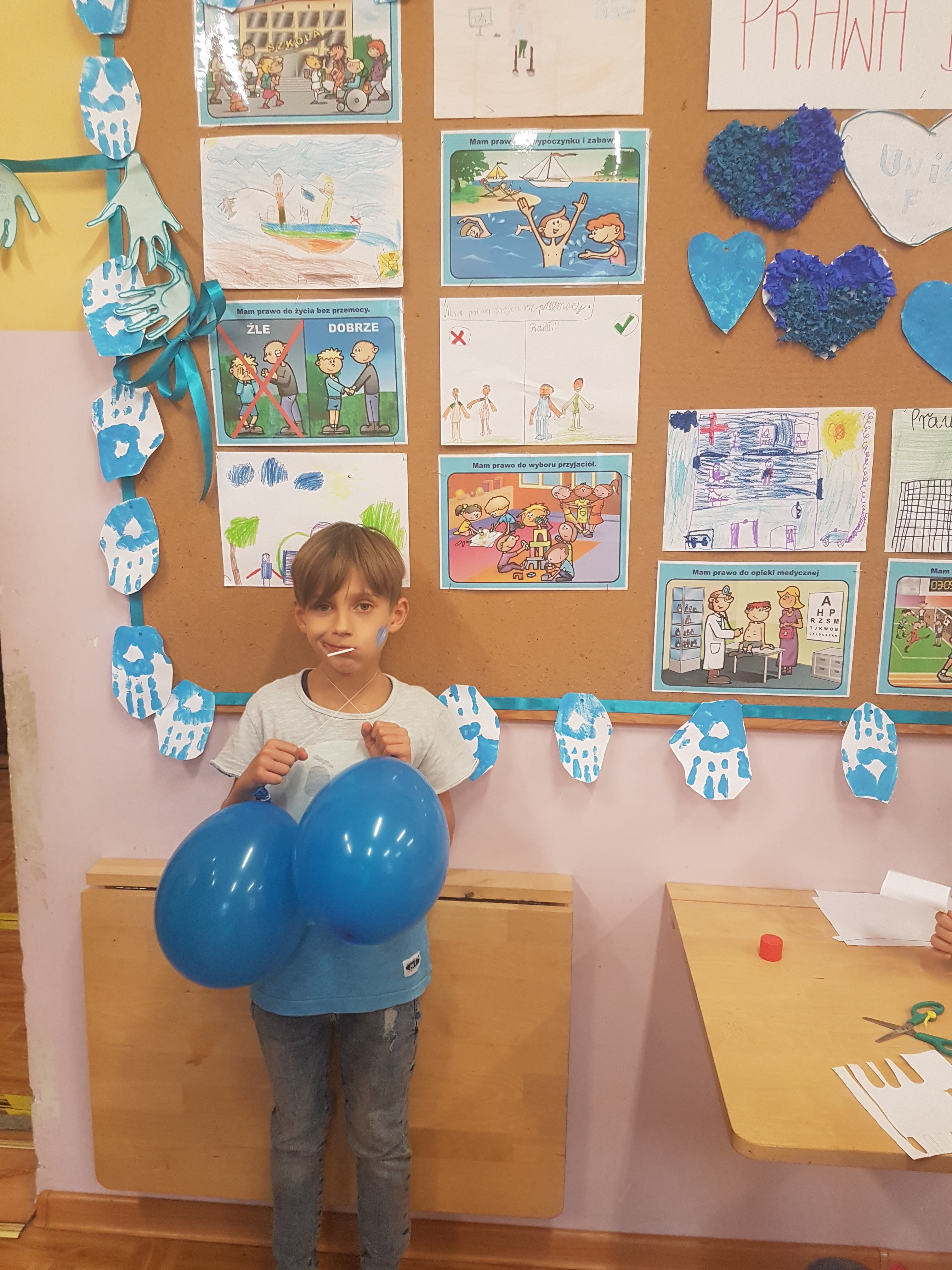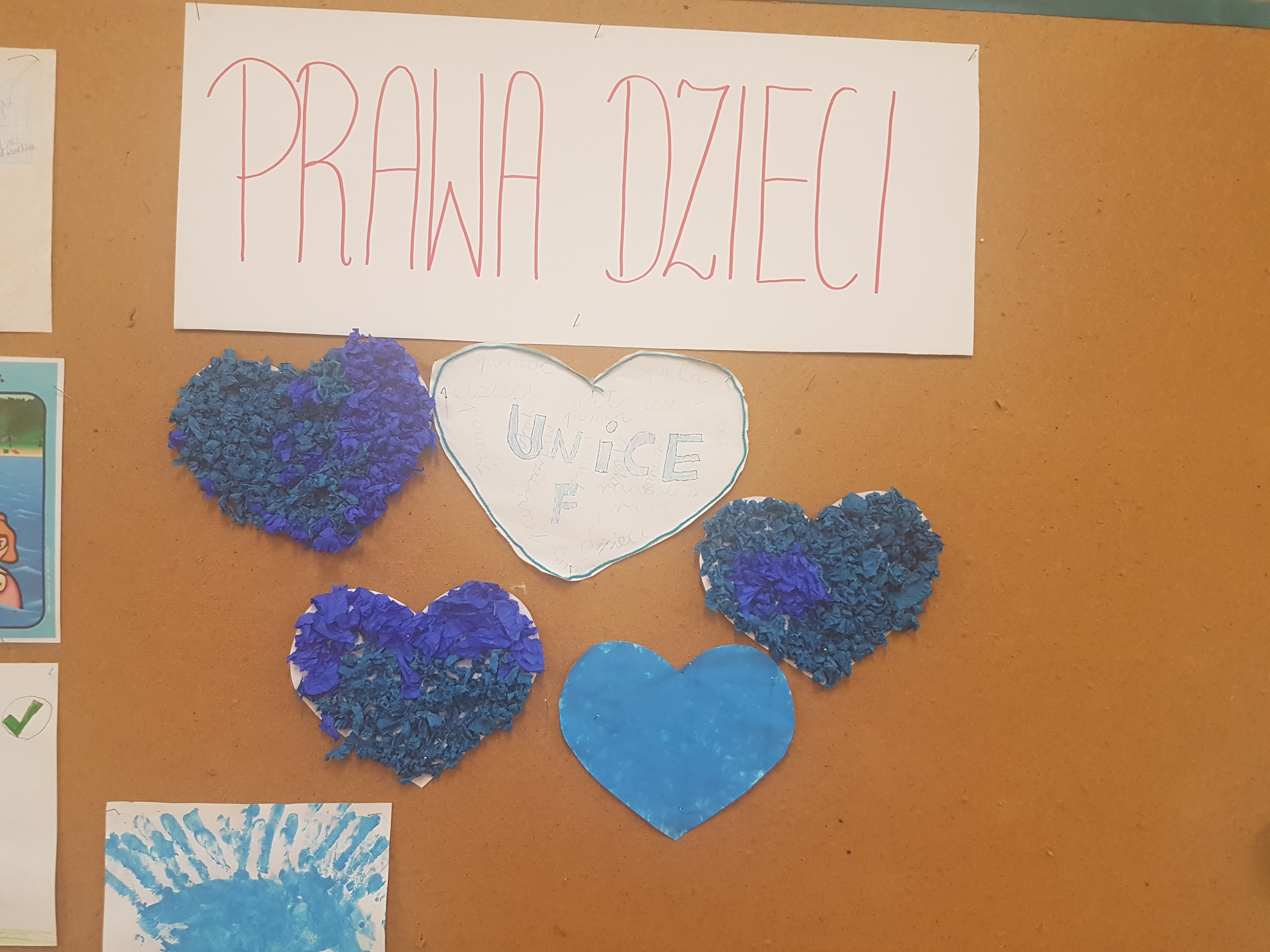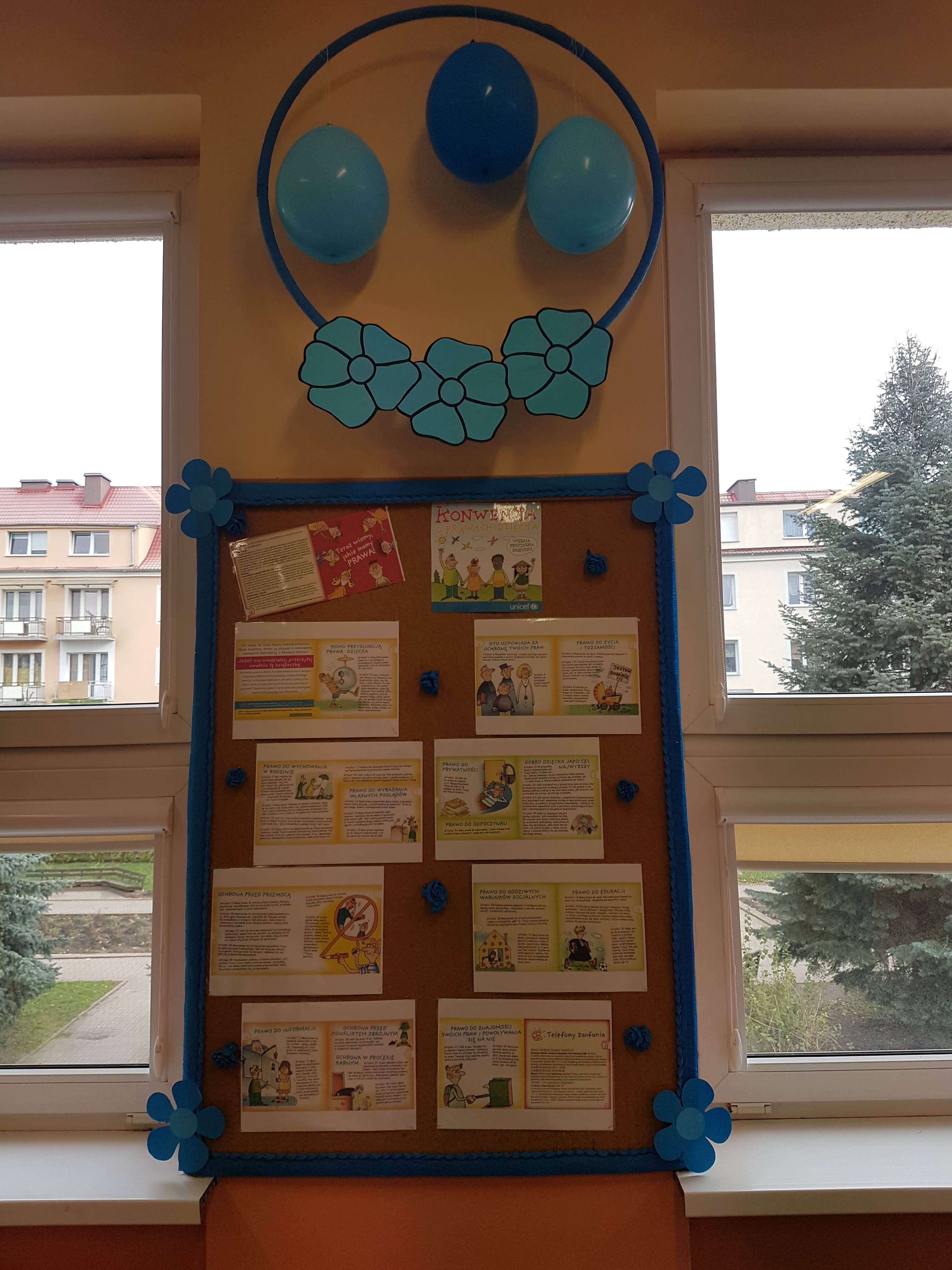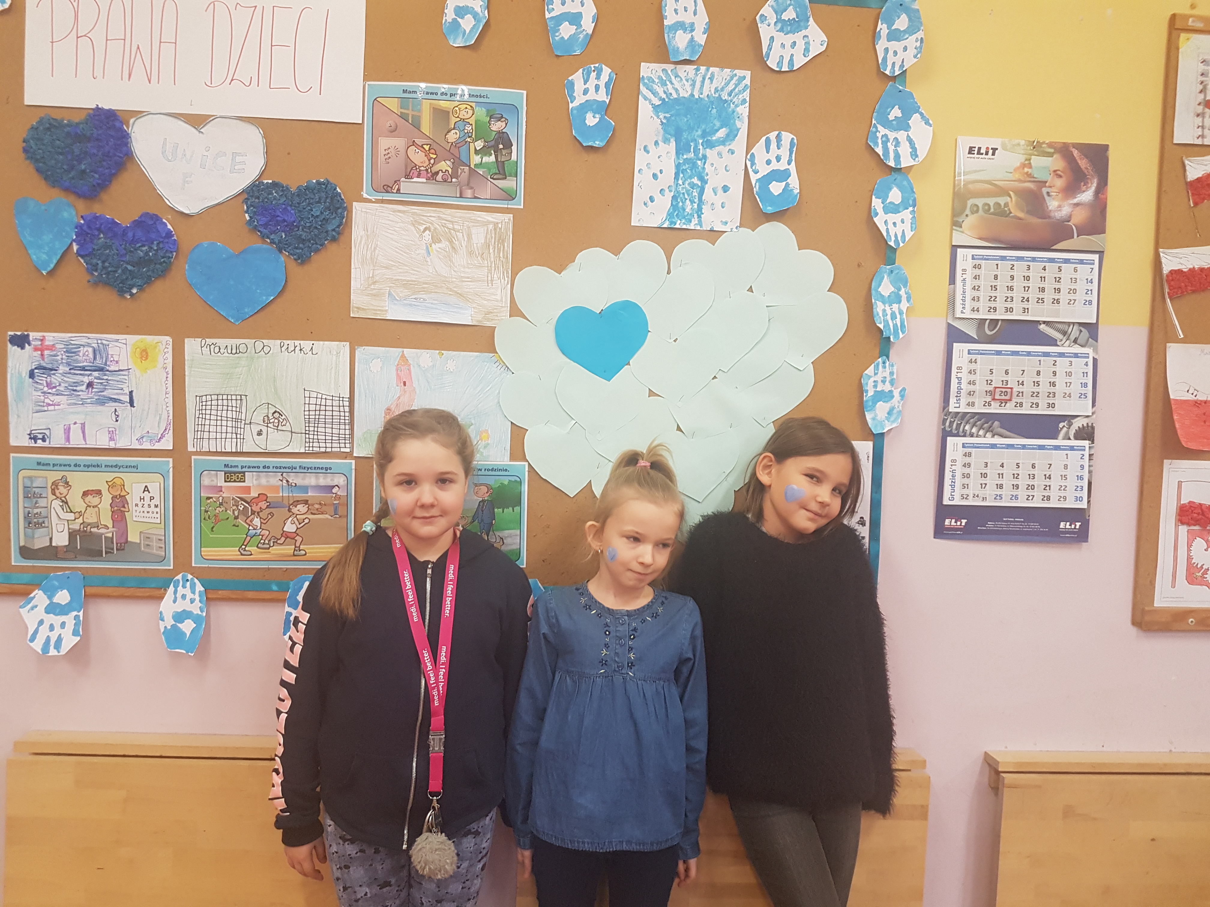 We wtorek 20 listopada przypadał Światowy Dzień Praw Dziecka. Świetlica szkolna włączyła się w tegoroczną akcję #goblue rekomendowaną przez Unicef. Dzieci wraz z wychowawcami wykonywały niebieskie dekoracje sal oraz gazetki tematyczne. Tego dnia ubrani na niebiesko z wymalowanymi na policzkach niebieskimi serduszkami wspólnie świętowaliśmy.