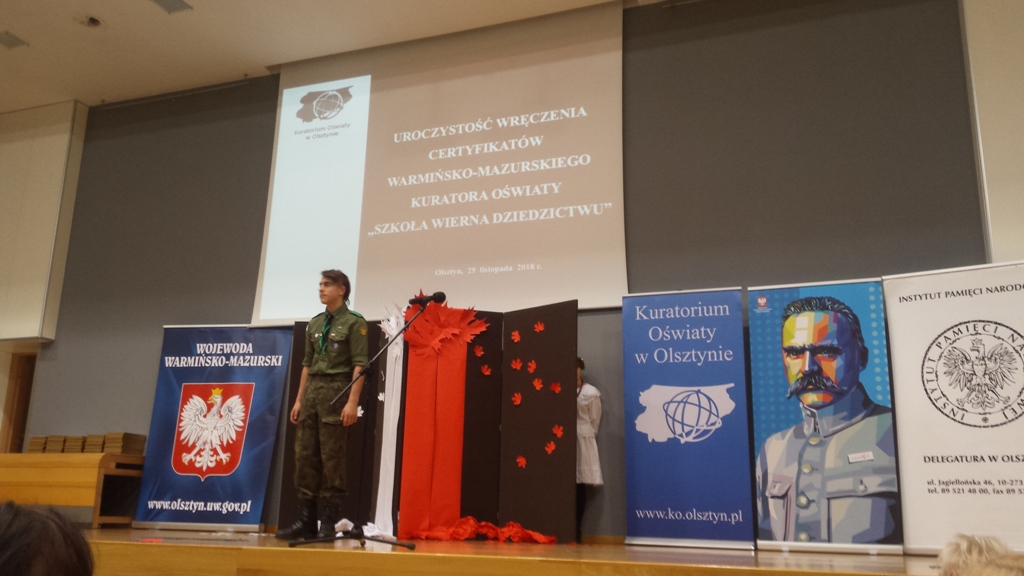 Gala wręczenia certyfikatu miała miejsce 29 listopada 2018 r. w Kuratorium Oświaty w Olsztynie.