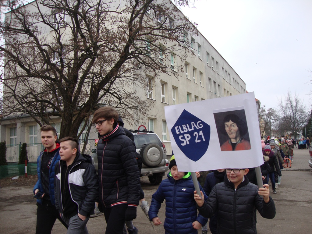 19 luty to ważna data dla naszej społeczności szkolnej . W tym dniu urodził się patron naszej szkoły Mikołaj Kopernik. Już kolejny raz uczciliśmy ten fakt wesołym przemarszem uczniów kl. IV – VI , który odbył się w ubiegły czwartek. Było nas widać i słychać z daleka! Kolorowe transparenty, okrzyki , gwizdy i …sygnalizowały naszą obecność w Elblągu : ) . Mieszkańcy ulic, którymi maszerowaliśmy i przypadkowi przechodnie na nasz widok zatrzymywali się zaciekawieni, uśmiechali się i przyjaźnie do nas machali.