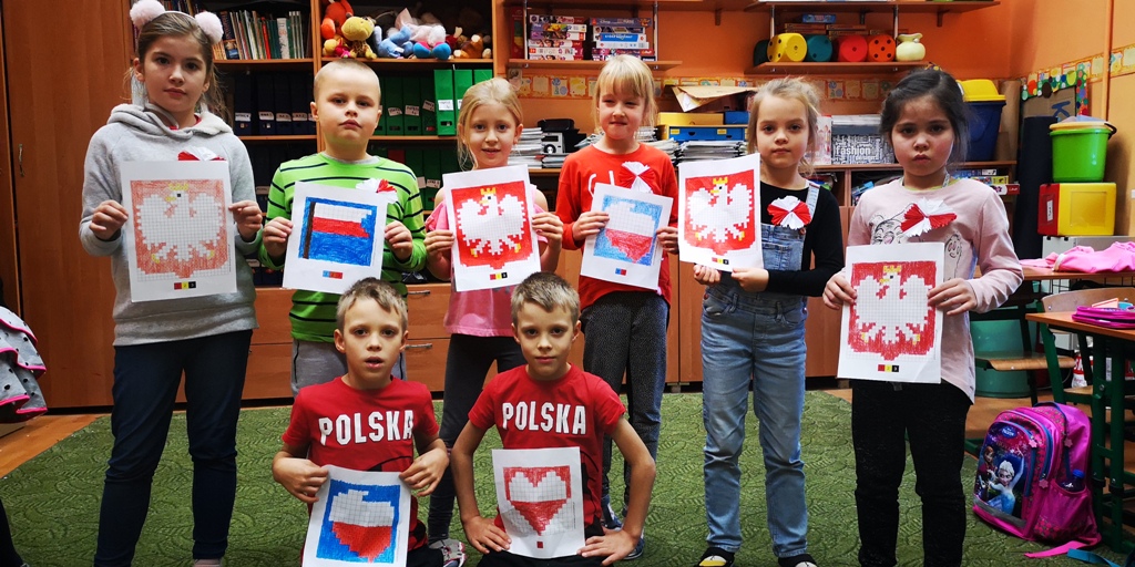 Już wkrótce 11 listopada, czyli Narodowe Święto Niepodległości. Uczniowie klasy 1a obejrzeli wystawę w Ratuszu Staromiejskim, poświęconą Marszałkowi Józefowi Piłsudskiemu, rozmawiali o historii naszej ojczyzny, obejrzeli filmik o symbolach narodowych, rozwiązali kodowanki-kolorowanki w barwach biało-czerwonych.