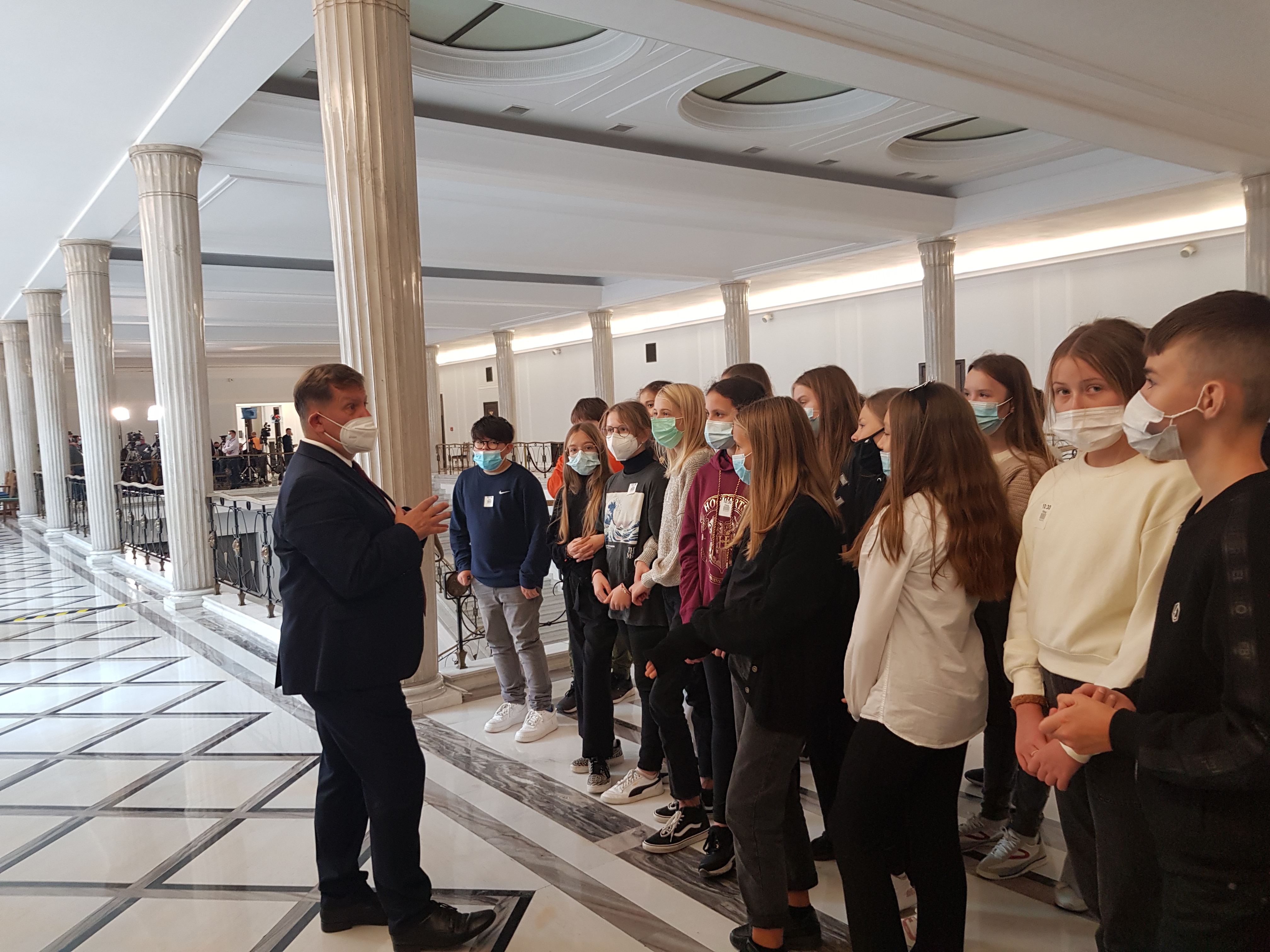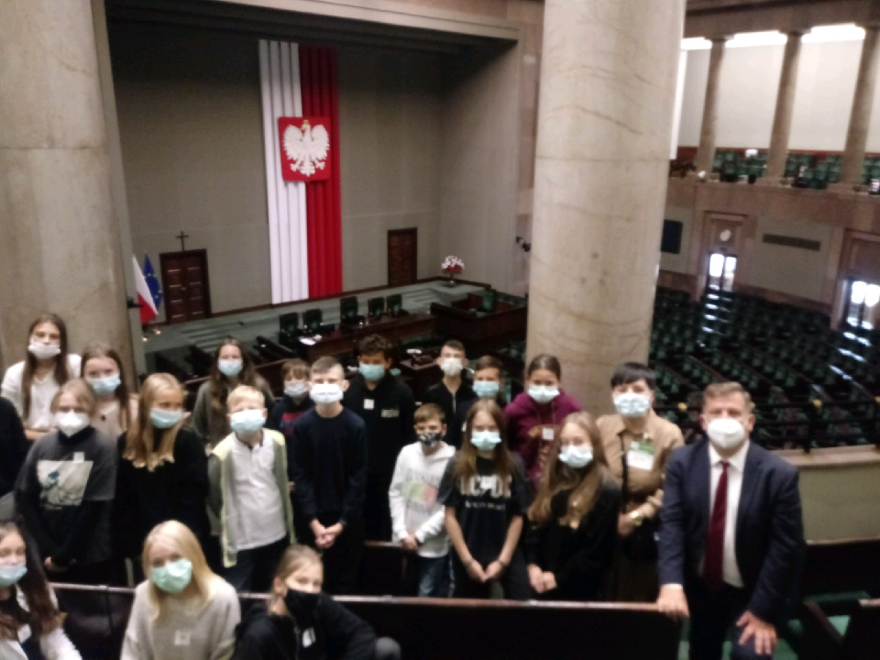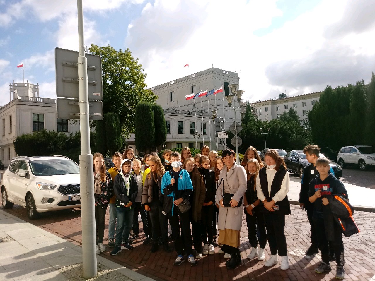 24 września uczniowie klasy 7a wraz z opiekunami udali się do stolicy, aby zwiedzić obiekty łączące przeszłość z teraźniejszością .W bogatym programie wyjazdu siódmoklasiści niczym posłowie mogli zasiąść w Sejmie, zgłębić tajniki korytarzy i sal Pałacu Prezydenckiego czy wreszcie poznać tragiczny los rodaków opowiadany przez przewodników Muzeum Powstania Warszawskiego. Wyjazd pozwolił uczniom zobaczyć miejsca, które na co dzień znają jedynie z telewizji oraz lekcji języka polskiego czy historii. Oglądany w Muzeum Powstania Warszawskiego film doszczętnie zrujnowanej w czasie wojny stolicy budził nie tylko przerażenie, ale również podziw, że miasto to ,mimo okrutnego losu, zostało tak pięknie odbudowane. Wiara i nadzieja doprowadziły bowiem do spełnienia przepowiedni poety- Leopolda Staffa, który kiedyś, spacerując po zgliszczach Warszawy, powiedział: „Przejdą dni ciężkie klęski i rozgromu(…)Będziemy znowu mieszkać w swoim domu. Będziemy stąpać po swych własnych schodach” Uczniowie klasy 7a o sile tych słów mogli się przekonać, gdyż odbudowana po wojnie stolica ze wszech miar oczarowała ich swym niezaprzeczalnym pięknem.
