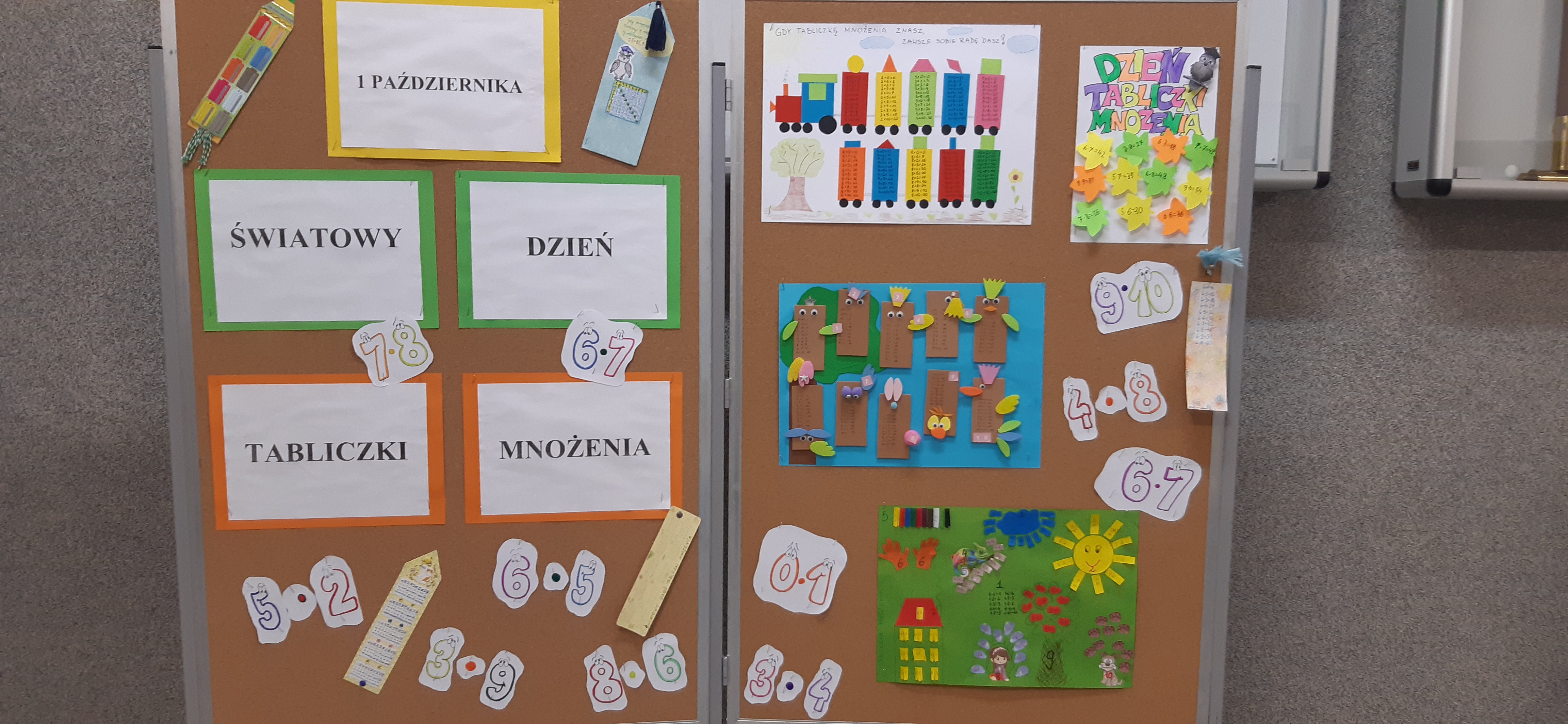 1 października obchodziliśmy Światowy Dzień Tabliczki Mnożenia. Chętni uczniowie naszej szkoły z tej okazji wykonywali plakaty i zakładki do książek przedstawiające w różny sposób tabliczkę mnożenia. Na lekcjach matematyki wykazywali się znajomością tabliczki, ważna była poprawność obliczeń i czas ich wykonania. Najlepsi uczniowie otrzymali tytuł ,,Eksperta Tabliczki Mnożenia” i zostali nagrodzeni oceną celującą. Dziękujemy za wspólną zabawę.