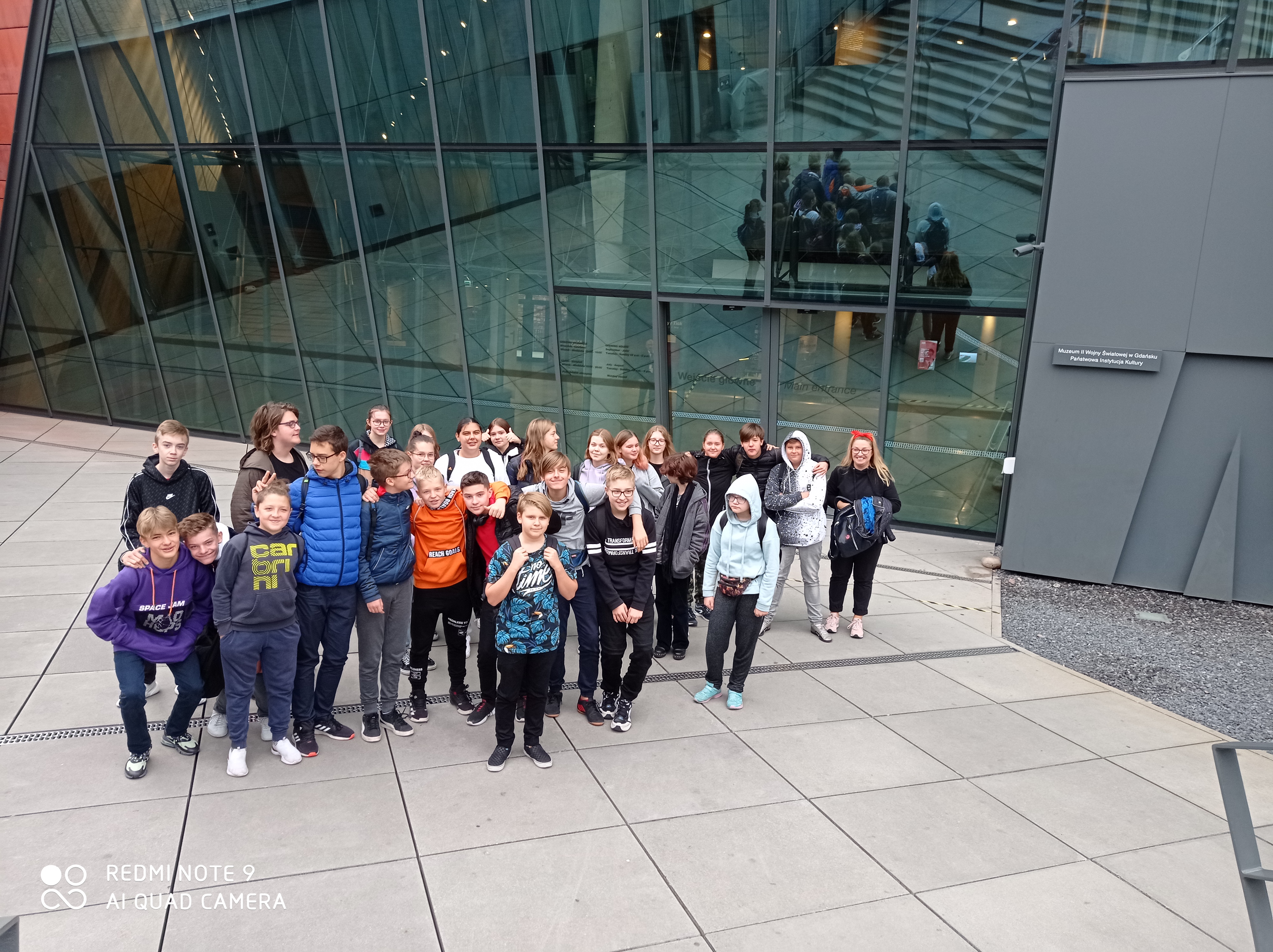 6.10.2021r. uczniowie klasy 8d pod opieką p. Moniki Milan i wych. Barbary Warmińskiej odwiedzili to wyjątkowe miejsce i obejrzeli wystawę główną muzeum, którą tworzą trzy bloki tematyczne. Pierwsza część „Droga do wojny” poświęcona jest genezie konfliktu. Druga część „Groza wojny” ukazuje wojenne losy ludzi: żołnierzy, jeńców , więźniów obozów, przymusowych robotników, a także kobiet, dzieci i mężczyzn cywilów. „Długi cień wojny”- ostatnia część łączy opowieść o zakończeniu wojny z narracją o konsekwencjach wojny.