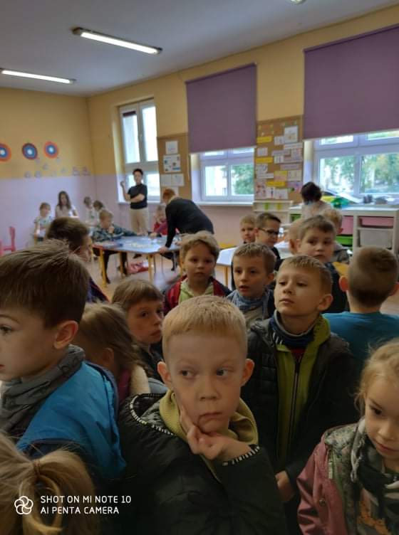 Już niedługo będę uczniem! – sześciolatki odwiedziły naszą szkołę. Pani Asia  oprowadziła dzieci po szkole. Przyszli uczniowie byli w świetlicy, w klasach, w bibliotece, w stołówce, w szatni i nawet w sali gimnastycznej 😀