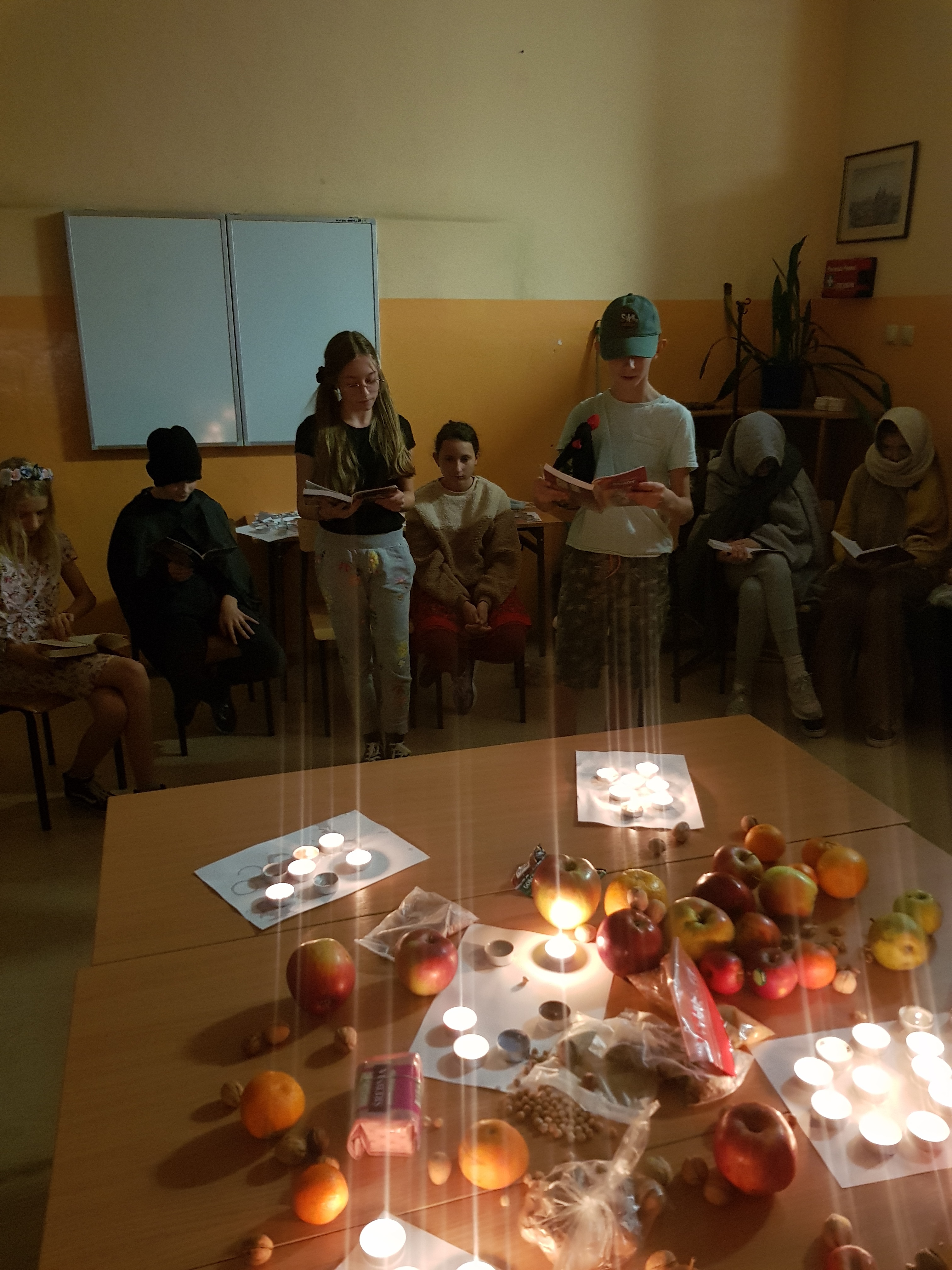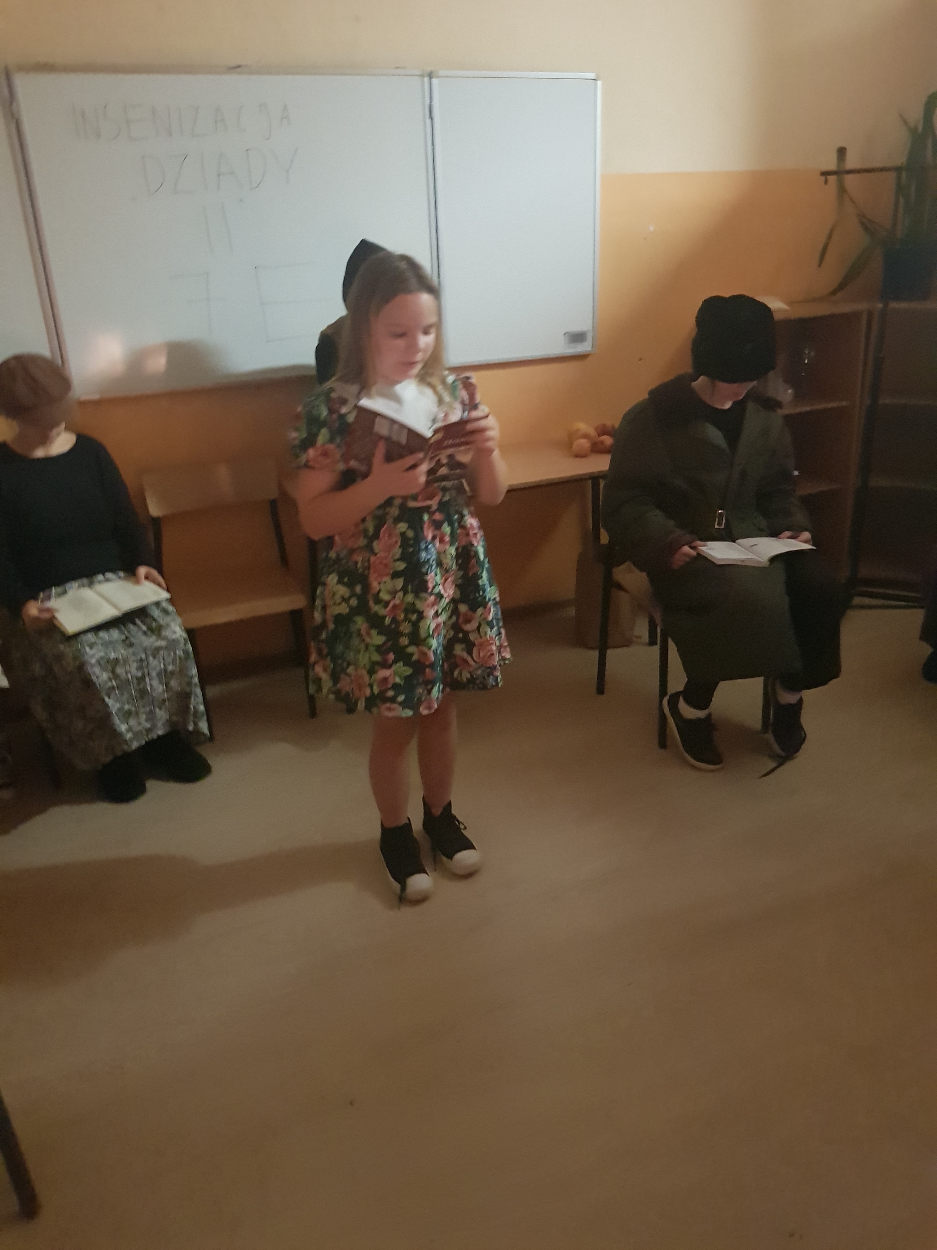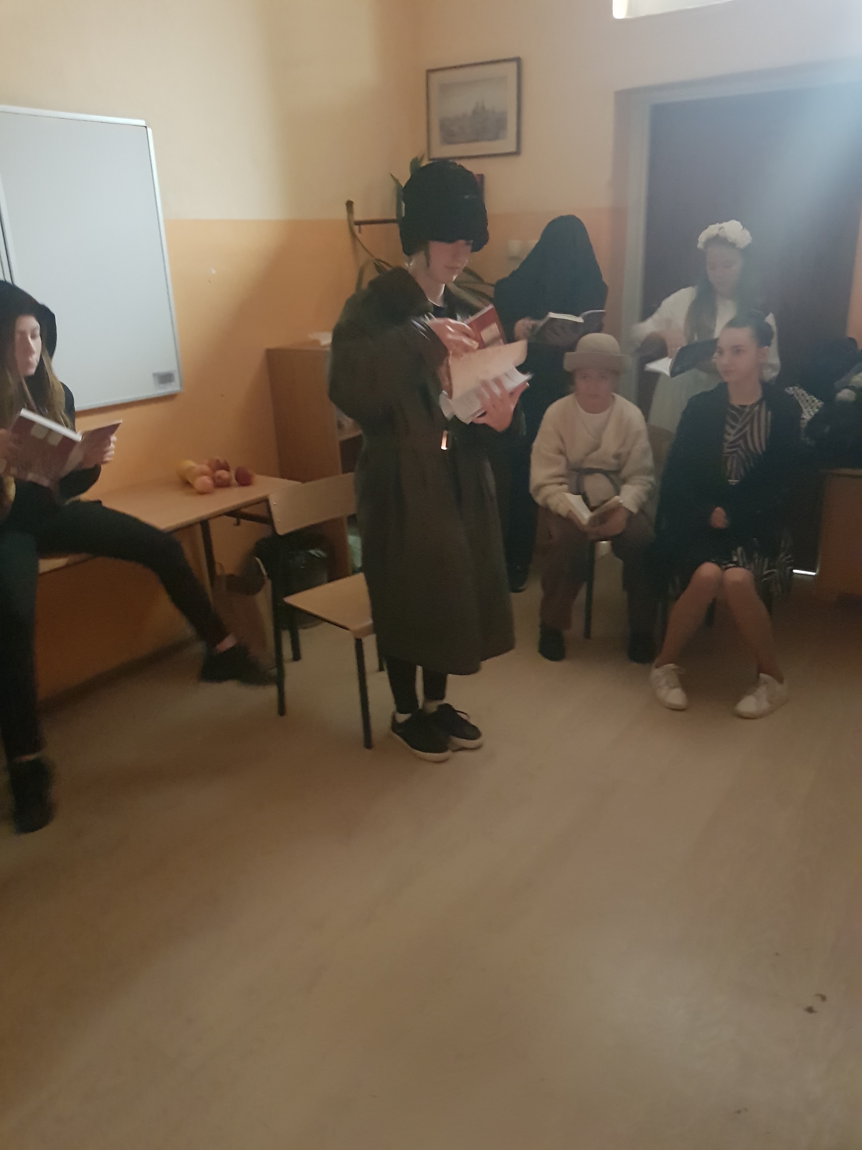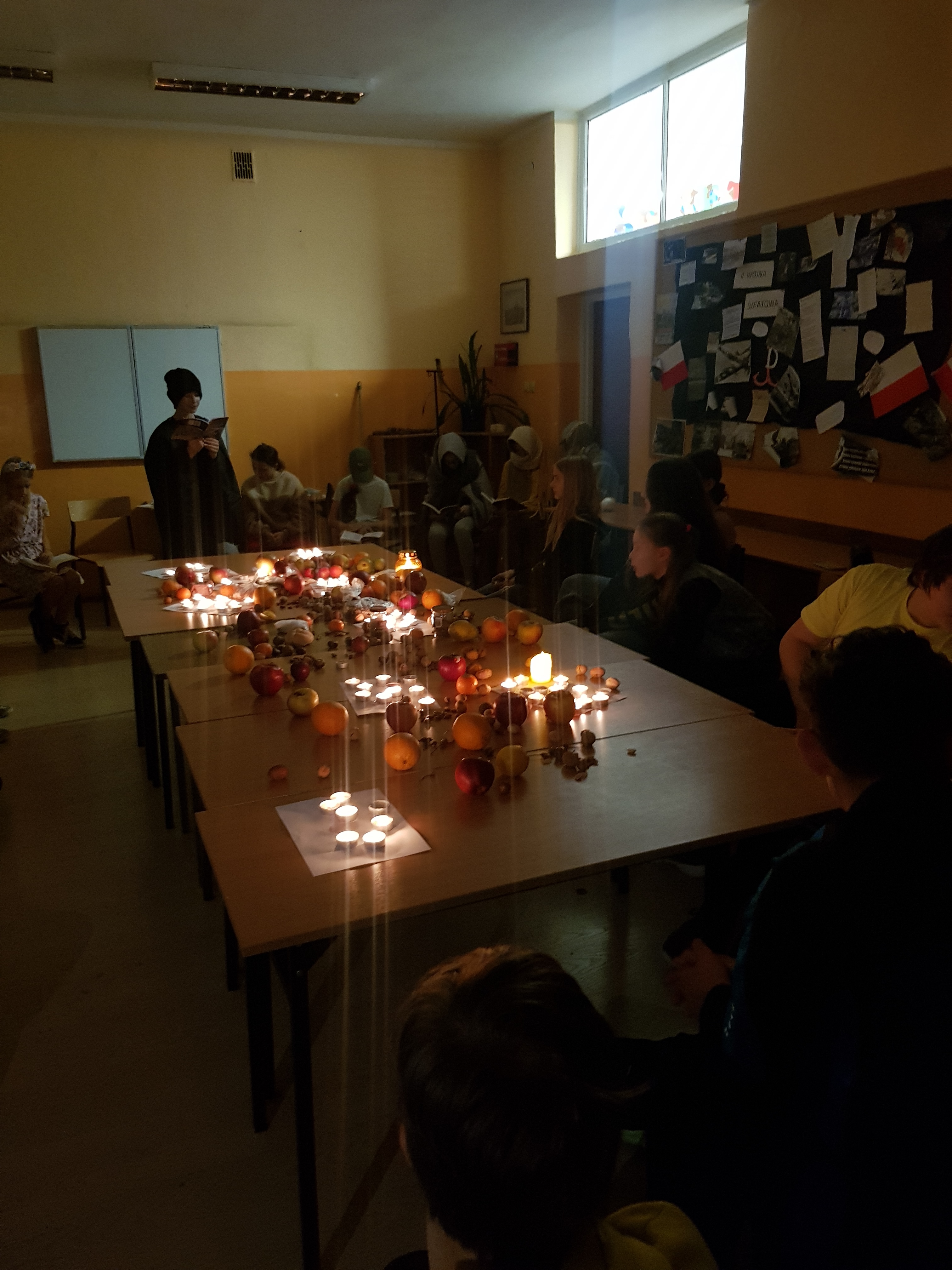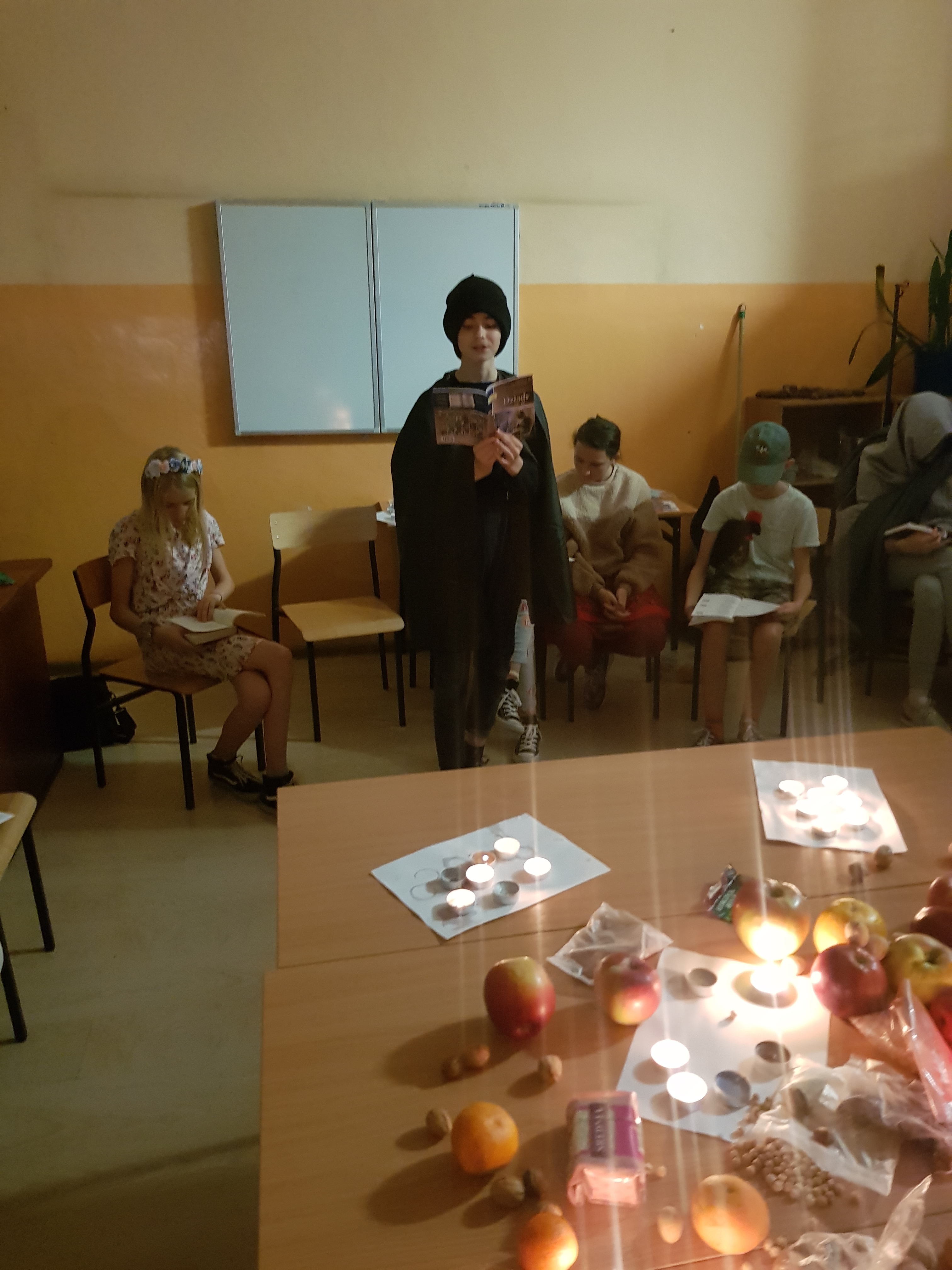 To były niezwykle klimatyczne lekcje języka polskiego. W atmosferze Zaduszek klasy: 7a, 7b, 7e, 7f z rozmachem i wielkim zaangażowaniem wystawiły ” Dziady” Adama Mickiewicza. Przedstawienie obfitowało w piękną recytację dramatu naszego wieszcza, a stroje i bogaty stół dopełniły całości tego magicznego spotkania. Kochani Uczniowie, naprawdę jestem z Was dumna. Pokazaliście, że jesteście: twórczy, pomysłowi, wrażliwi. Brawo!!!