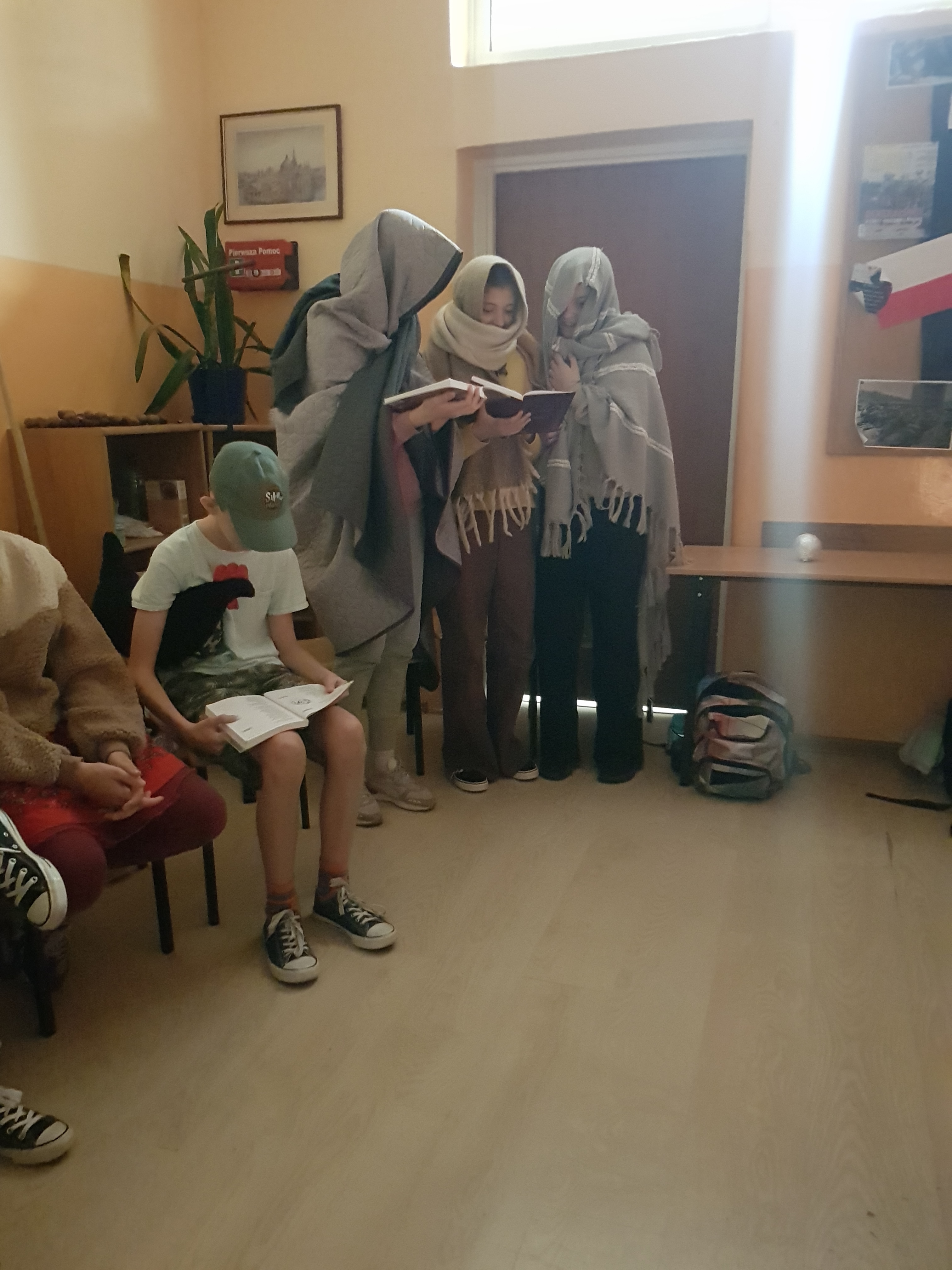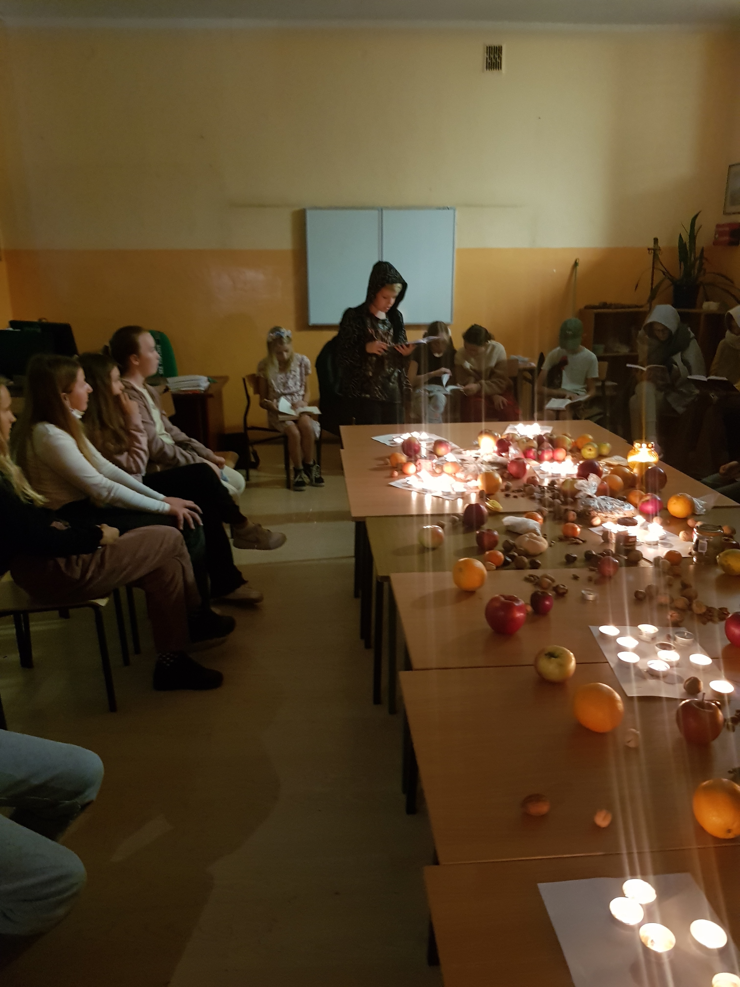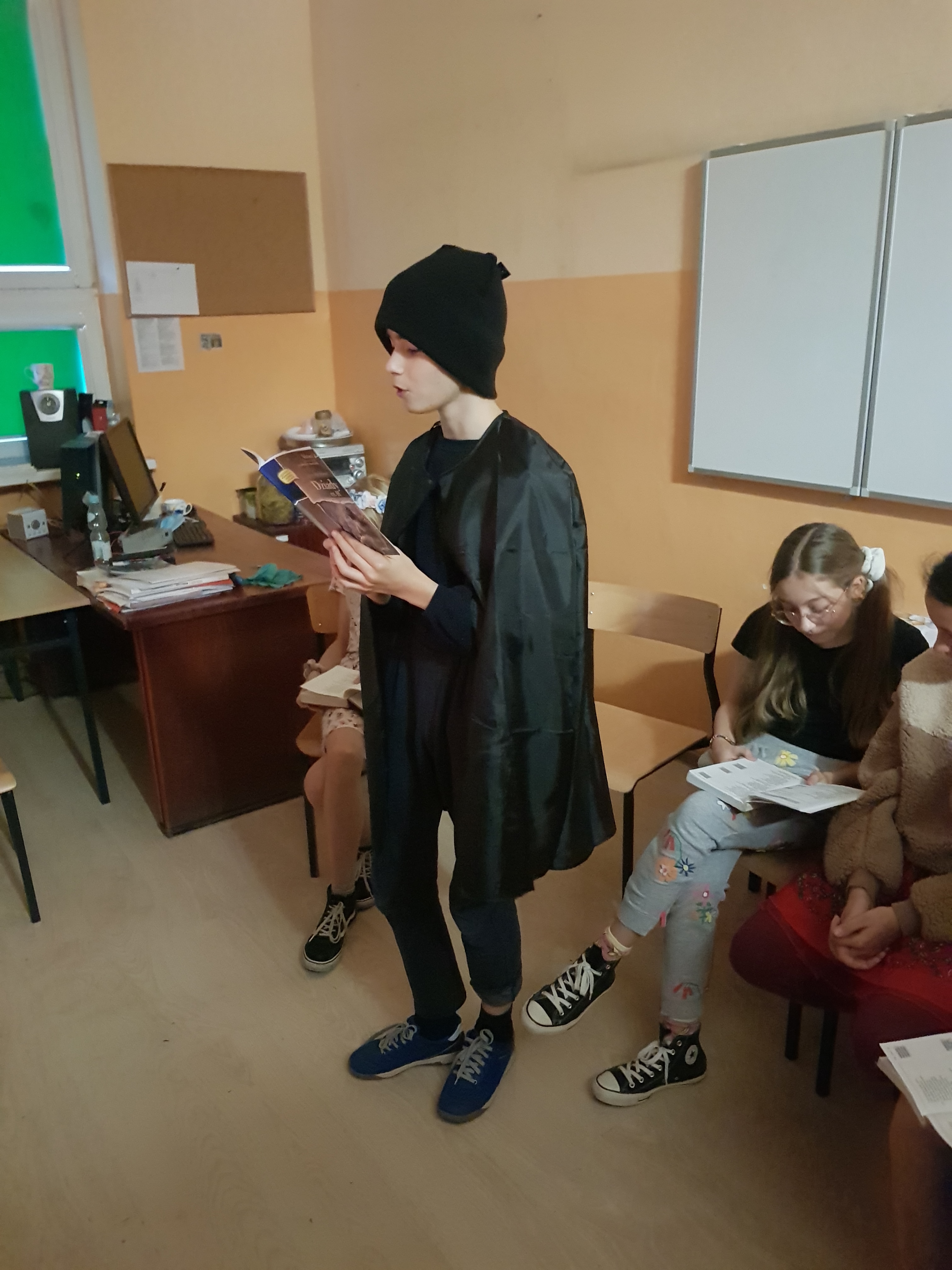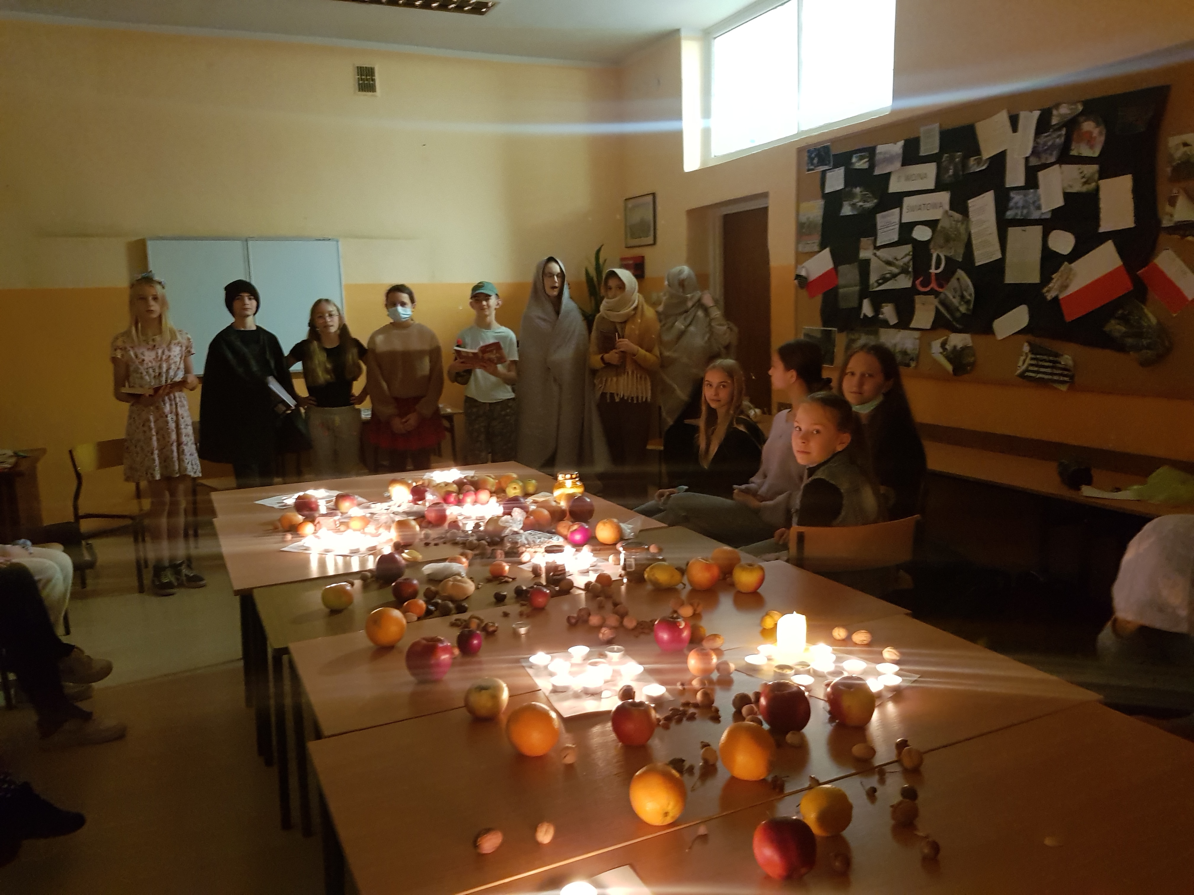 To były niezwykle klimatyczne lekcje języka polskiego. W atmosferze Zaduszek klasy: 7a, 7b, 7e, 7f z rozmachem i wielkim zaangażowaniem wystawiły ” Dziady” Adama Mickiewicza. Przedstawienie obfitowało w piękną recytację dramatu naszego wieszcza, a stroje i bogaty stół dopełniły całości tego magicznego spotkania. Kochani Uczniowie, naprawdę jestem z Was dumna. Pokazaliście, że jesteście: twórczy, pomysłowi, wrażliwi. Brawo!!!