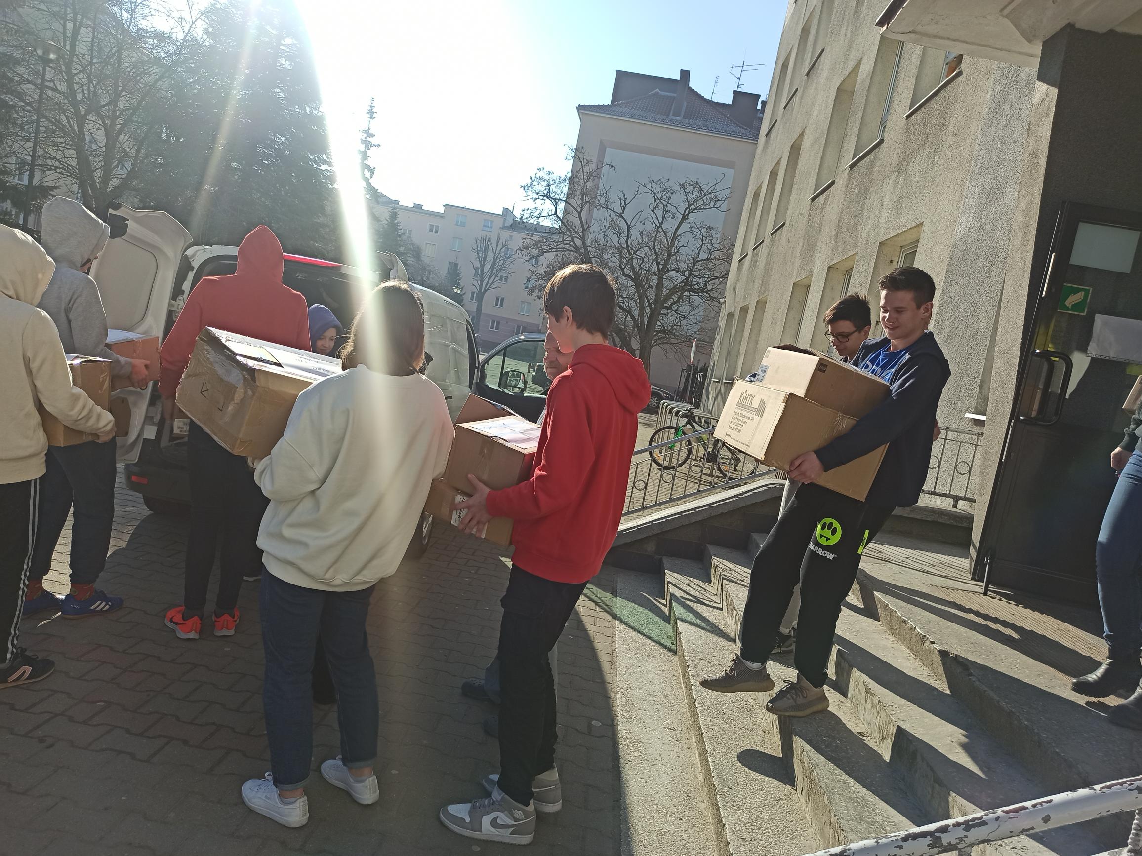Bardzo cieszymy się z Waszego zaangażowania w pomoc poszkodowanym w wyniku wojny na Ukrainie. Dzisiaj z naszej szkoły odjechał pierwszy transport rzeczy. Było tego naprawdę dużo! Niech dobrze służą tym, do których trafią. Na tym jednak nie poprzestajemy. Nasza zbiórka trwa nadal. Poza rzeczami wymienionymi wcześniej potrzebne są również torby podróżne i walizki, gdyż część uchodźców trafiających do naszego miasta jest zaopatrzana w potrzebne rzeczy i przetransportowywana do innych miejscowości. Potrzebują zatem mieć w co się się spakować. Działamy ![]()