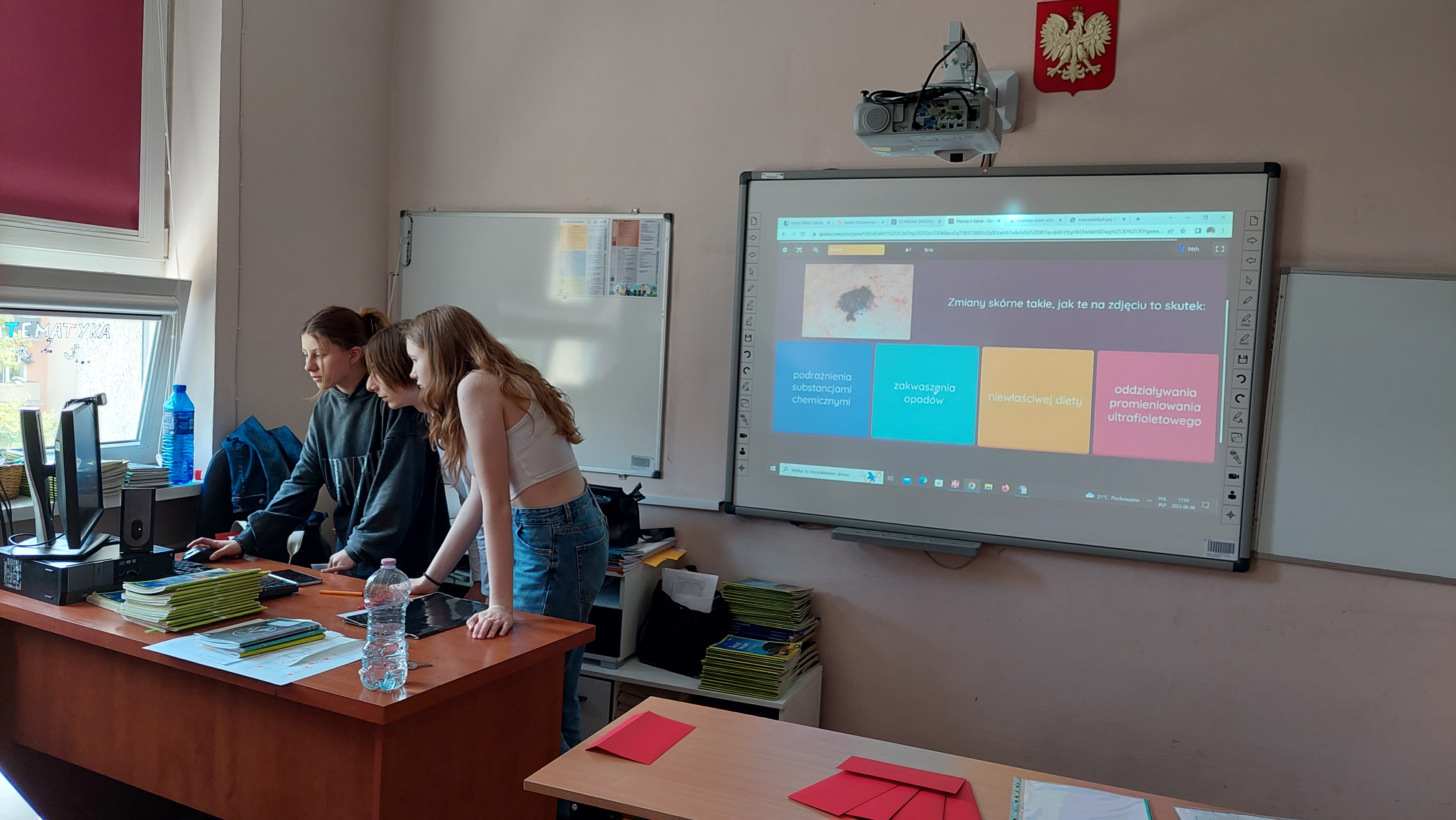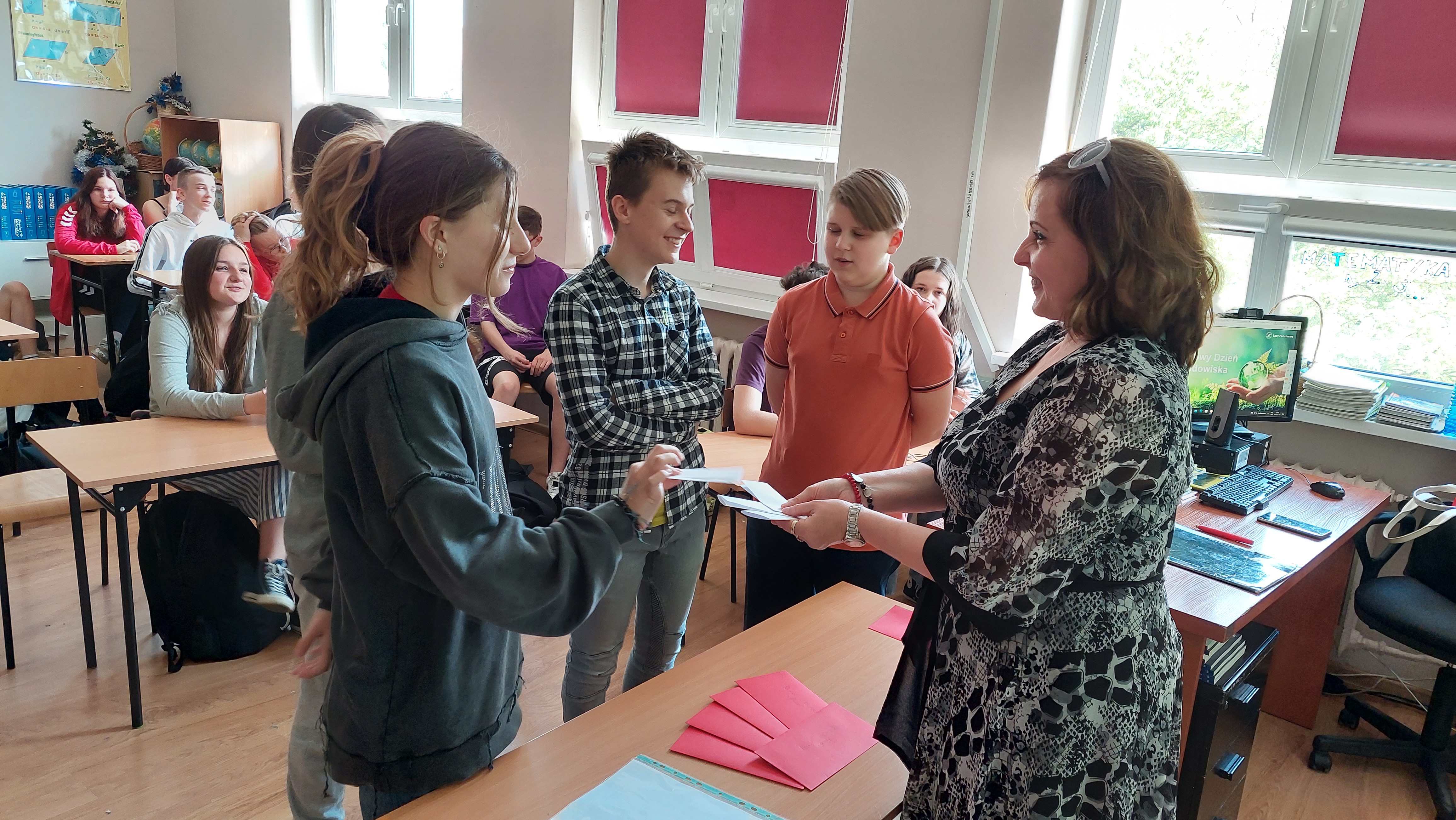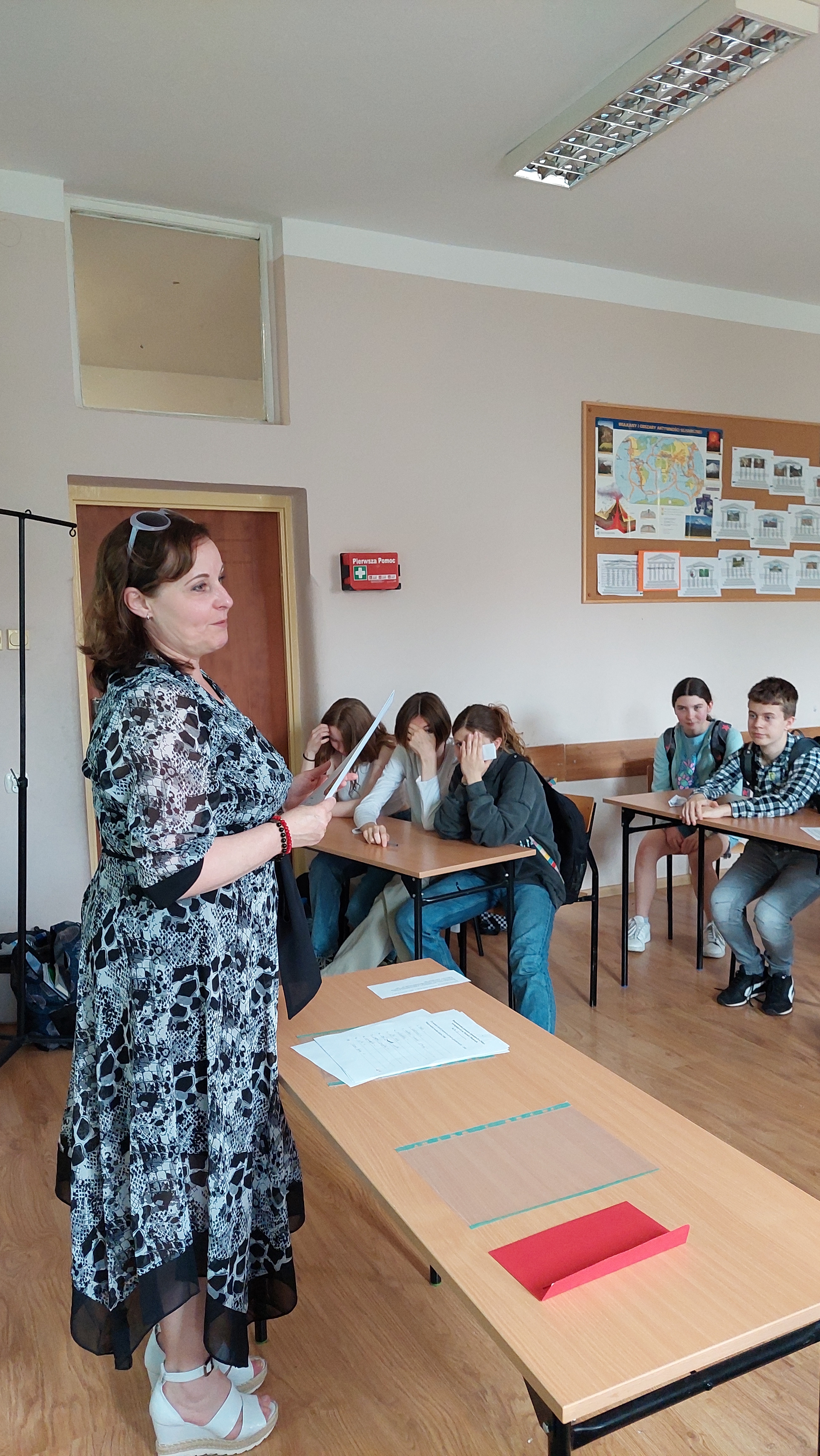 5 czerwca przypada Światowy Dzień Ochrony Środowiska. Z tej okazji 6 czerwca w naszej szkole odbył się konkurs wiedzy dla klas ósmych przygotowany  przez p. Izabelę Romanowska i p. Agnieszkę Kuzko. W konkursie wzięły udział klasy 8a, 8b, 8d i 8e reprezentowane przez trzyosobowe zespoły. Konkurs składał się z pięciu konkurencji. Rozpoczął się   od  quizu z ogólnej wiedzy o ochronie środowiska i światowych parkach narodowych. Następnie uczniowie wykazywali się wiedzą na temat polskich parków narodowych oraz parków krajobrazowych występujących na terenie województwa warmińsko- mazurskiego. Ponadto rozpoznawali rośliny i zwierzęta chronione w Polsce występujące na Warmii i Mazurach. ( Niemałym zaskoczeniem okazał się ryś euroazjatycki !)  J Ostatnie zadanie polegało na ułożeniu ciągów przyczynowo – skutkowych dotyczących zjawisk związanych z globalnym ociepleniem, smogiem, zjawiskiem eutrofizacji i powstawaniem kwaśnych mgieł i opadów.  Uczniowie wykazali się rozległą  wiedzą, Z większością zadań świetnie sobie poradzili. W powietrzu cały czas można było wyczuć unoszącego się ducha walki : )  Po tych potyczkach ostatecznie zwyciężył zespół kl. 8d, drugie miejsce zajął zespół kl. 8a, trzecie – 8e i czwarte – 8b. Uczniowie otrzymali piękne dyplomy  upamiętniające konkurs oraz dodatkowo zostaną nagrodzeni.