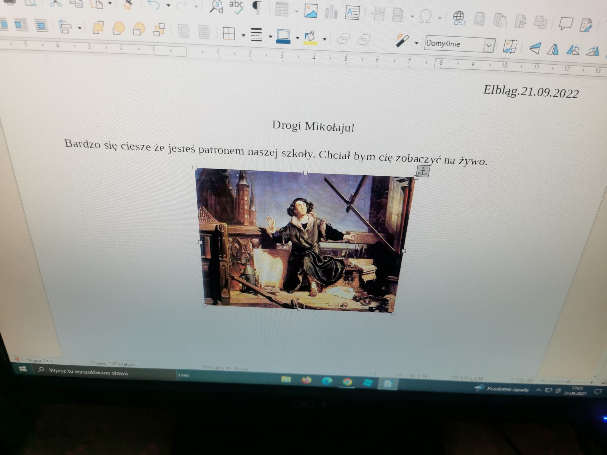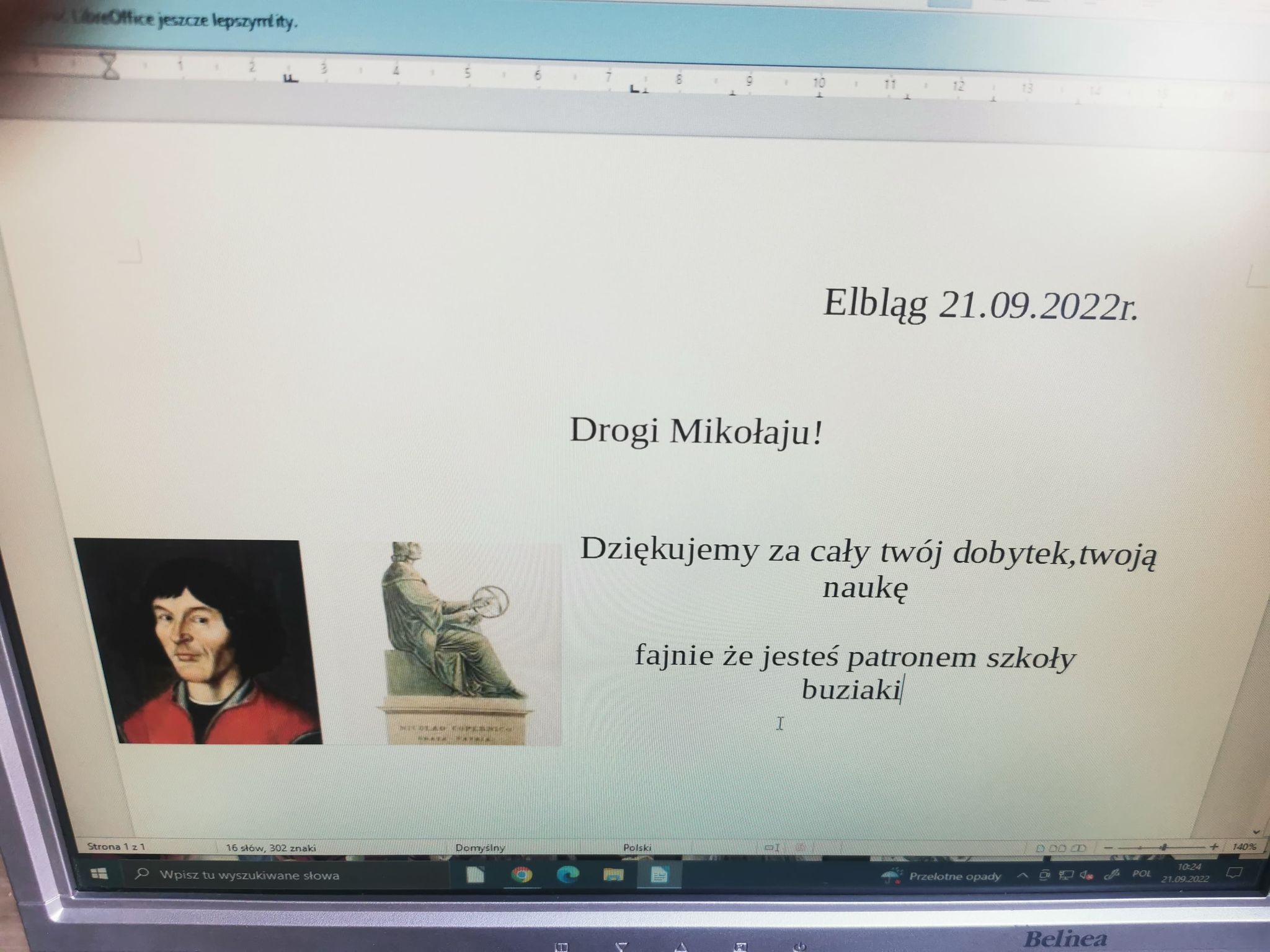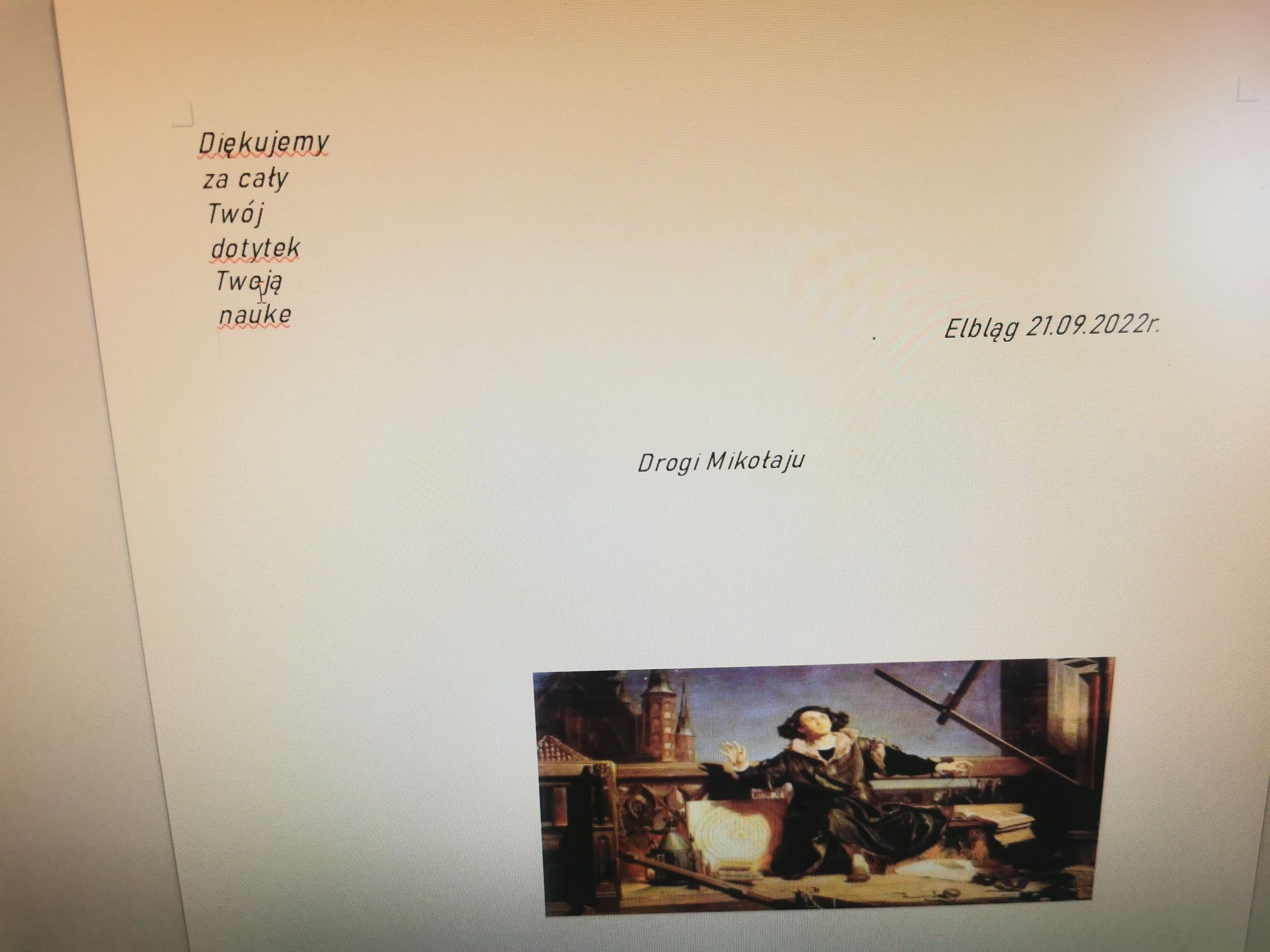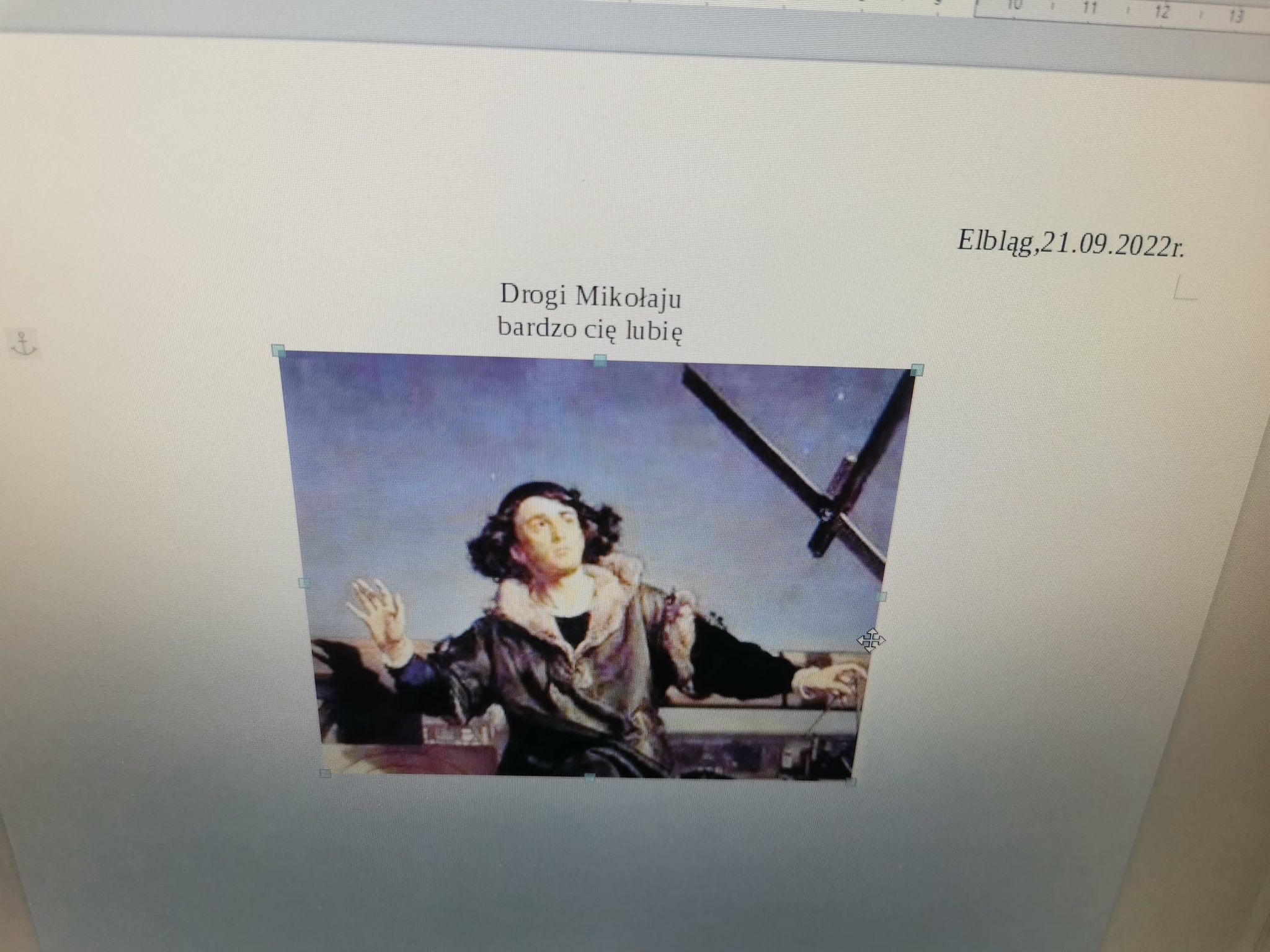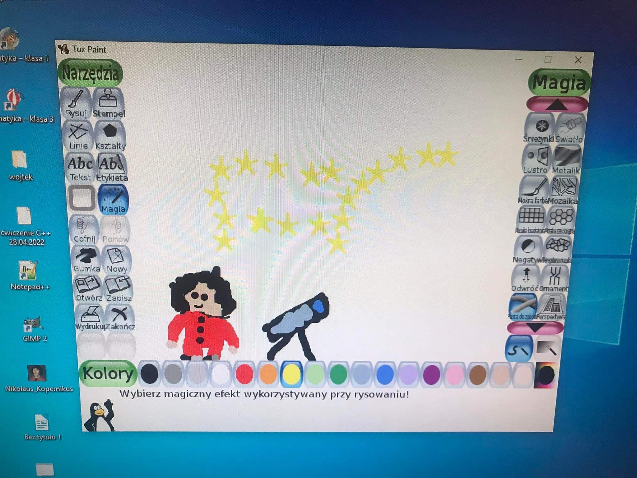 W celu poszerzenia wiedzy o patronie naszej szkoły- Mikołaju Koperniku, uczniowie klasy 2c i 2b zaznajomili się z owocami pracy astronoma, jego pasją i zamiłowaniem. Na zajęciach komputerowych, w związku ze zbliżającymi się urodzinami Mikołaja Kopernika, tworzyli jego portret i pisali listy z podziękowaniami.