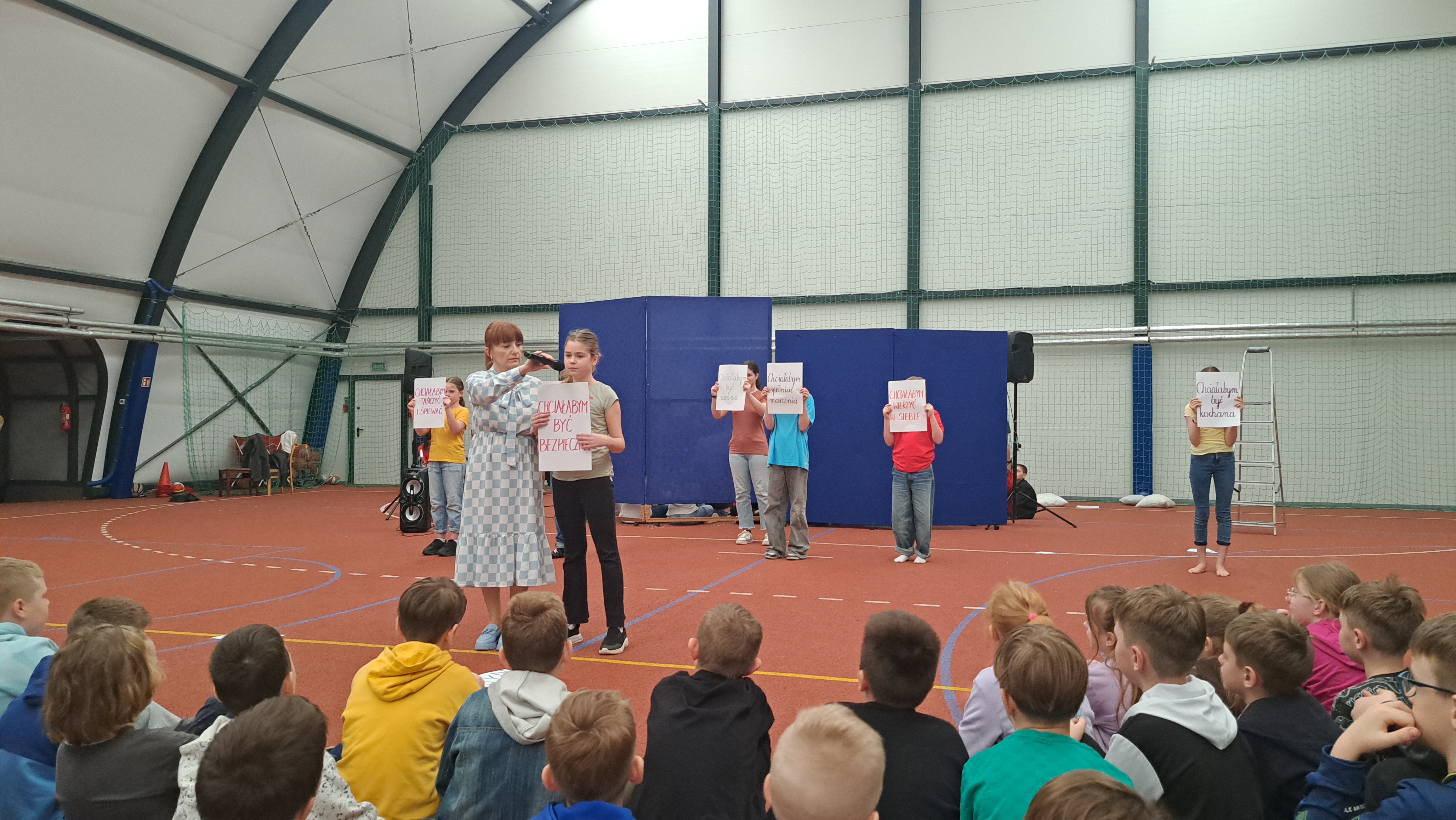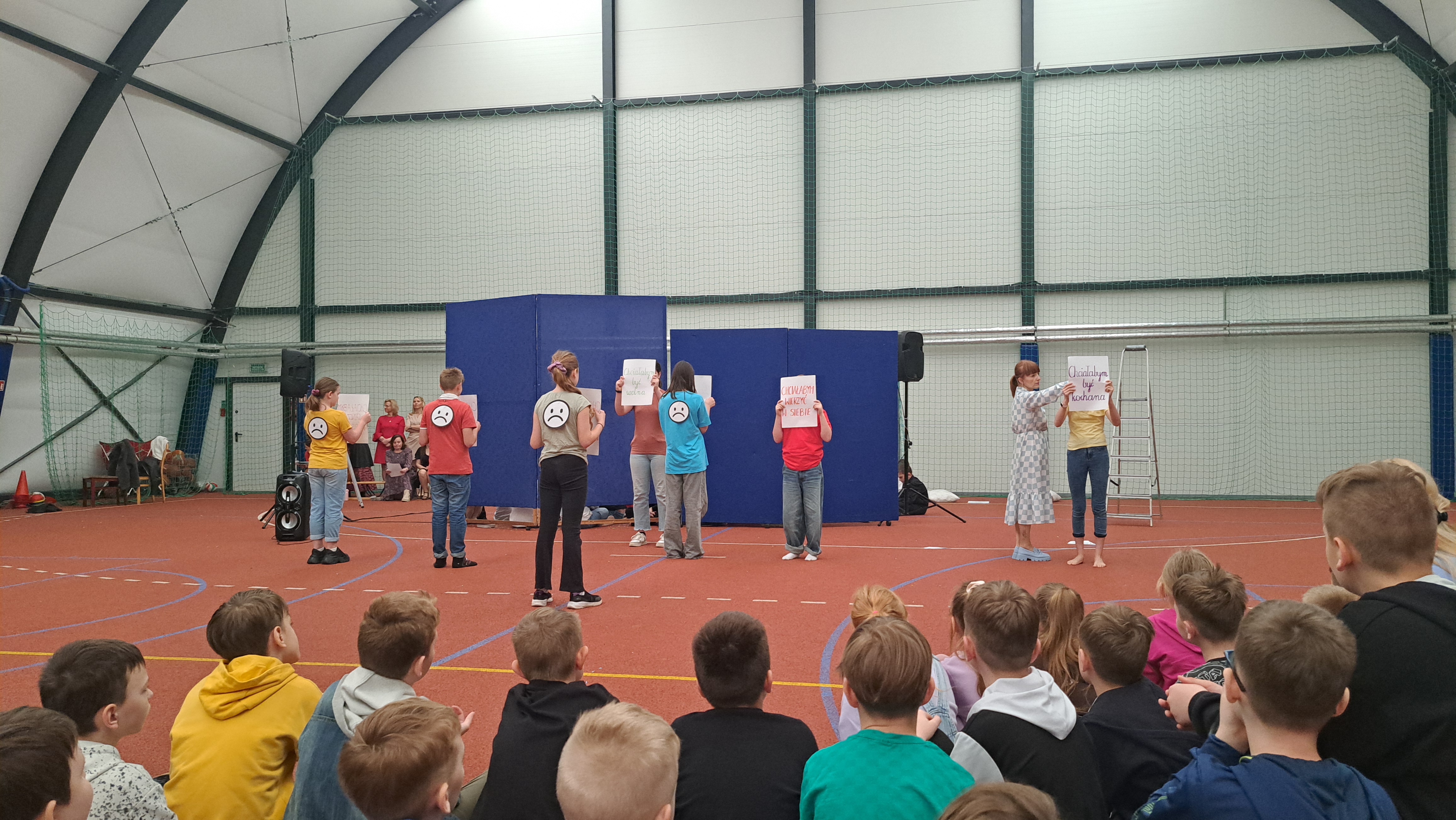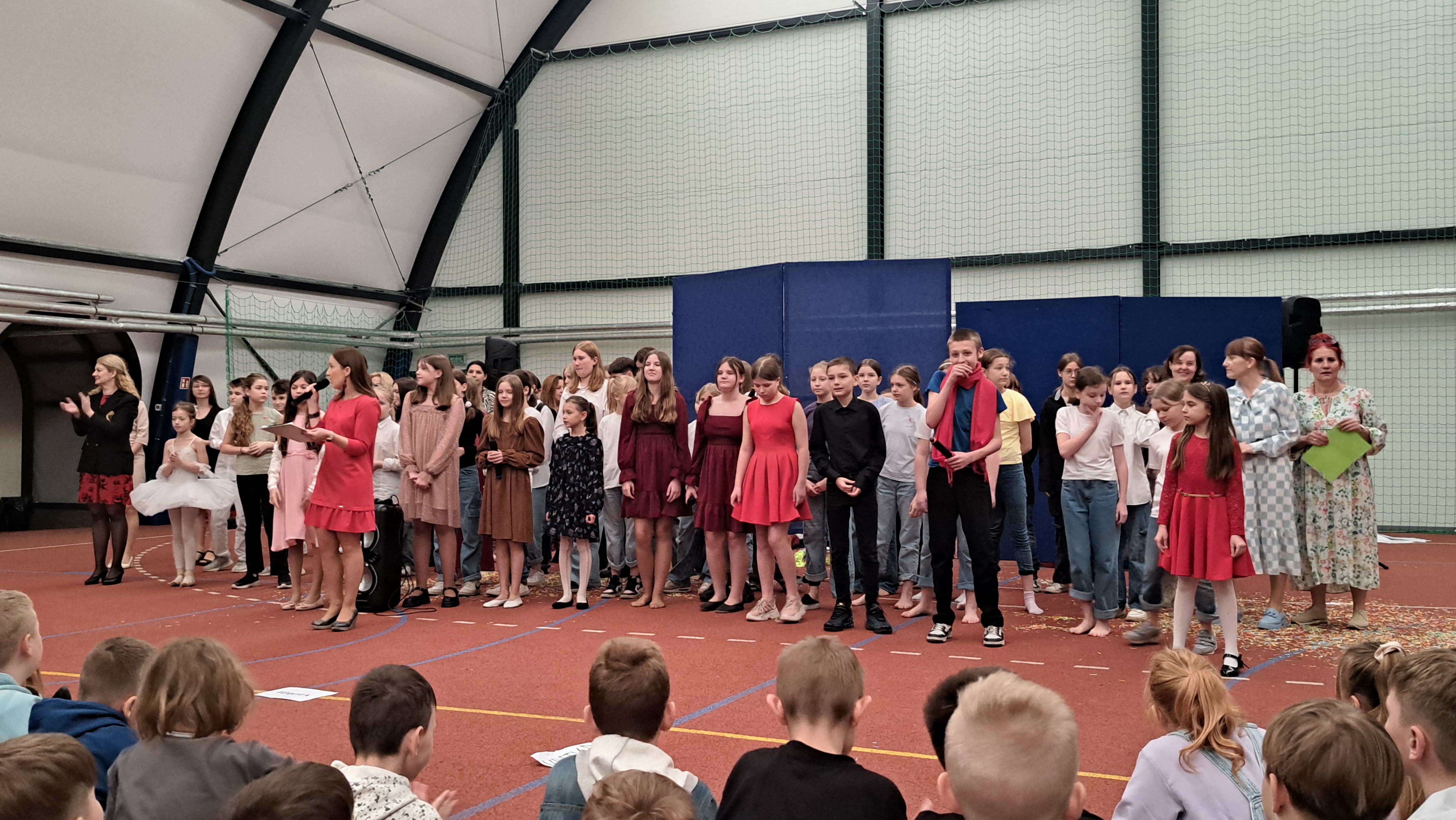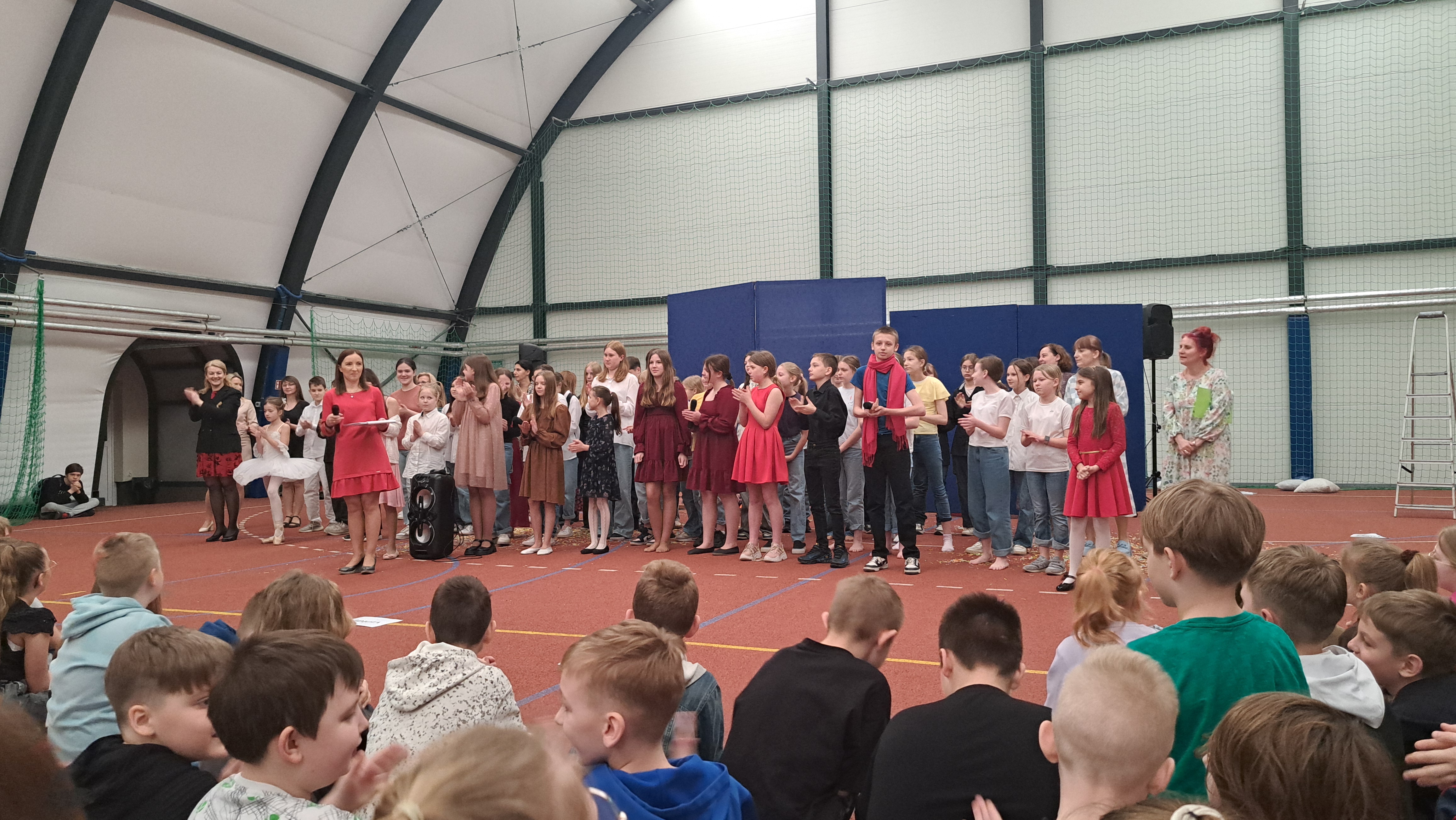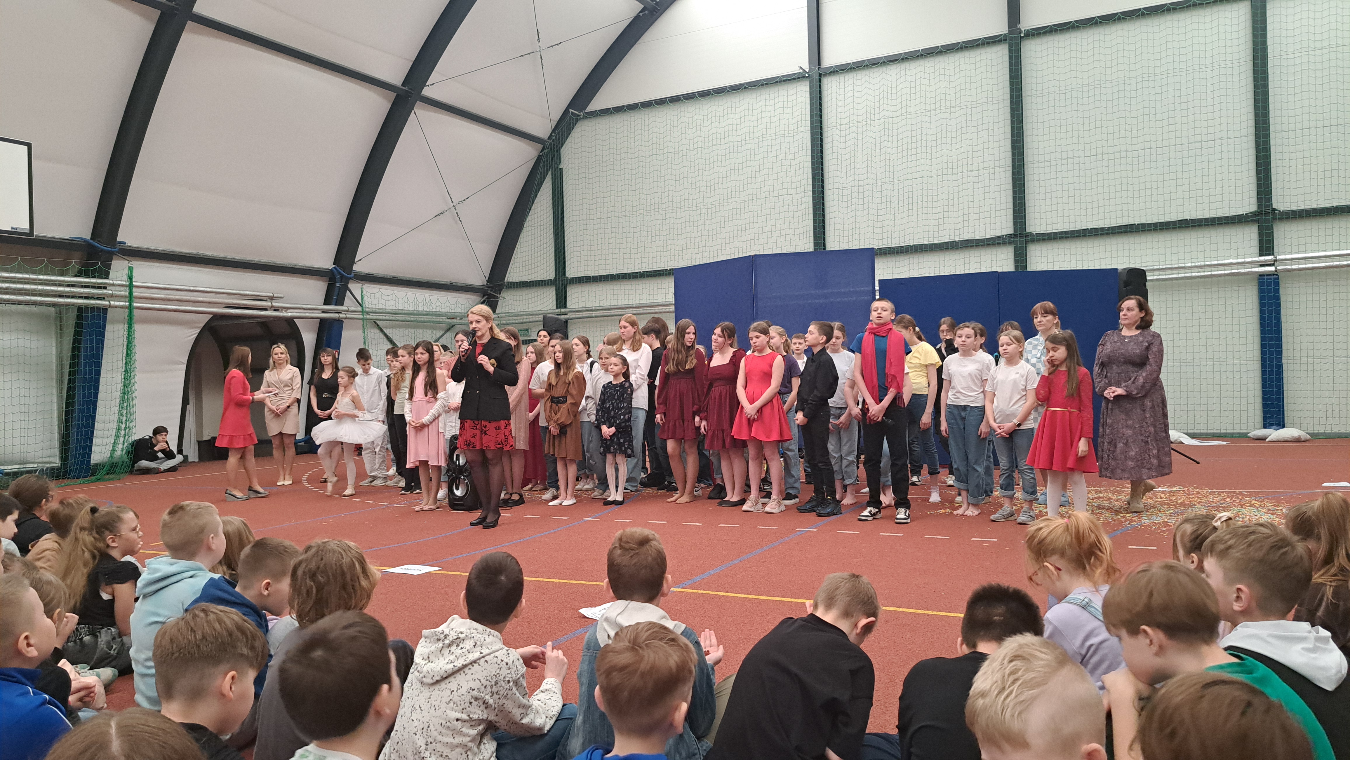 Dziś w naszej szkole odbyła się uroczystość pn. „Dobrem pokonajmy zło” w celu poruszenia ważnego tematu przeciwdziałania agresji i przemocy. Uczniowie klas 4-8 SP21 mogli obejrzeć spektakl w wykonaniu uczniów i nauczycieli naszej szkoły, który 26 marca 2024r. wzruszył i skłonił do refleksji honorowych gości, rodziców, dyrektorów elbląskich szkół podstawowych oraz delegacje nauczycieli i uczniów tych szkół zgromadzonych licznie na sali CSE „Światowid”.Starając się o uzyskanie certyfikatu „Szkoły Promującej Bezpieczeństwo”, chcemy szkoły, w której liczy się KAŻDY, w której KAŻDY jest potrzebny, wspierany, rozumiany. Pragniemy miejsca, które jest oknem nie tylko na świat, ale i zwierciadłem duszy, wrażliwym na ludzką krzywdę i cierpienie.Niewątpliwie problematyka przeciwdziałania agresji i przemocy nie jest nam obca. Robimy wszystko, aby szkoła była bezpieczna, czuła na ludzką krzywdę, by była miejscem, w którym każdy jest ważny. W Szkole Podstawowej nr 21 podejmujemy się wielu działań i inicjatyw, aby nie tylko uczniowie, ale również nauczyciele i pozostali pracownicy szkoły, czuli się tu dobrze, bezpiecznie… jak w domu, aby wszystkie dzieci z uśmiechem zaczynały i kończyły lekcje, aby właśnie TU znalazły spokój, możliwość zaspokajania swoich potrzeb, aby TU realizowały marzenia, spotykały dobrych, wrażliwych ludzi. Razem możemy naprawdę wiele. Wierzymy w to całym sercem, bo przecież dobrem pokonamy zło.Spektakl wyreżyserowały nasze dwie wyjątkowe polonistki: Pani Marta Mierzwa- Gałkowska i Pani Anna Jabłońska. „Dobrem pokonajmy zło” to hasło przewodnie przedstawienia i zarazem przejmujący krzyk, aby nigdy więcej żadne dziecko nie cierpiało, aby mogło cieszyć się dzieciństwem, nauką, zabawą.W spektaklu udział wzięli uczniowie z klas: 3a, 3c, 4a, 4c, 5a, 5b, 5c, 6a, 7b, 8a, a także zeszłoroczny absolwent naszej szkoły oraz nauczyciele:- śpiew: p.Joanna Fedyna, p.Magdalena Jakubowska, p.Anna Mulańska, p.Alicja Kaszuba, p.Karolina Woźniakowska;- recytacje: p.Joanna Kanikuła, p.Izabela Romanowska, p.Agnieszka Leśniewska, p.Lena Babecka, p.Anna Krakowska, p.Marta Mierzwa-Gałkowska, p.Anna Jabłońska.Po spektaklu Dyrektor Szkoły Podstawowej Nr 21 w Elblągu – Pani Joanna Celińska osobiście podziękowała naszemu wspaniałemu szkolnemu zespołowi teatralno-muzycznemu, wręczając uczniom słodkie upominki.Podczas uroczystości wyróżnione zostały również klasy, które wzięły udział w przygotowaniu plakatów na temat przeciwdziałania agresji i przemocy. Posłużyły one jako dekoracja sali podczas międzyszkolnego konkursu recytatorsko-oratorskiego pt. „Dobrem pokonajmy zło”, który został zorganizowany przez naszą szkołę w dniu 20 marca 2024r.Życzymy wszystkim wszechogarniającego DOBRA i pamiętajcie, że tylko DAWANE dobro wraca. Warto zapamiętać i wprowadzić w życie motto dzisiejszej uroczystości, sentencję Jana Pawła II: „Nie daj się zwyciężyć złu, ale zło DOBREM zwyciężaj.”