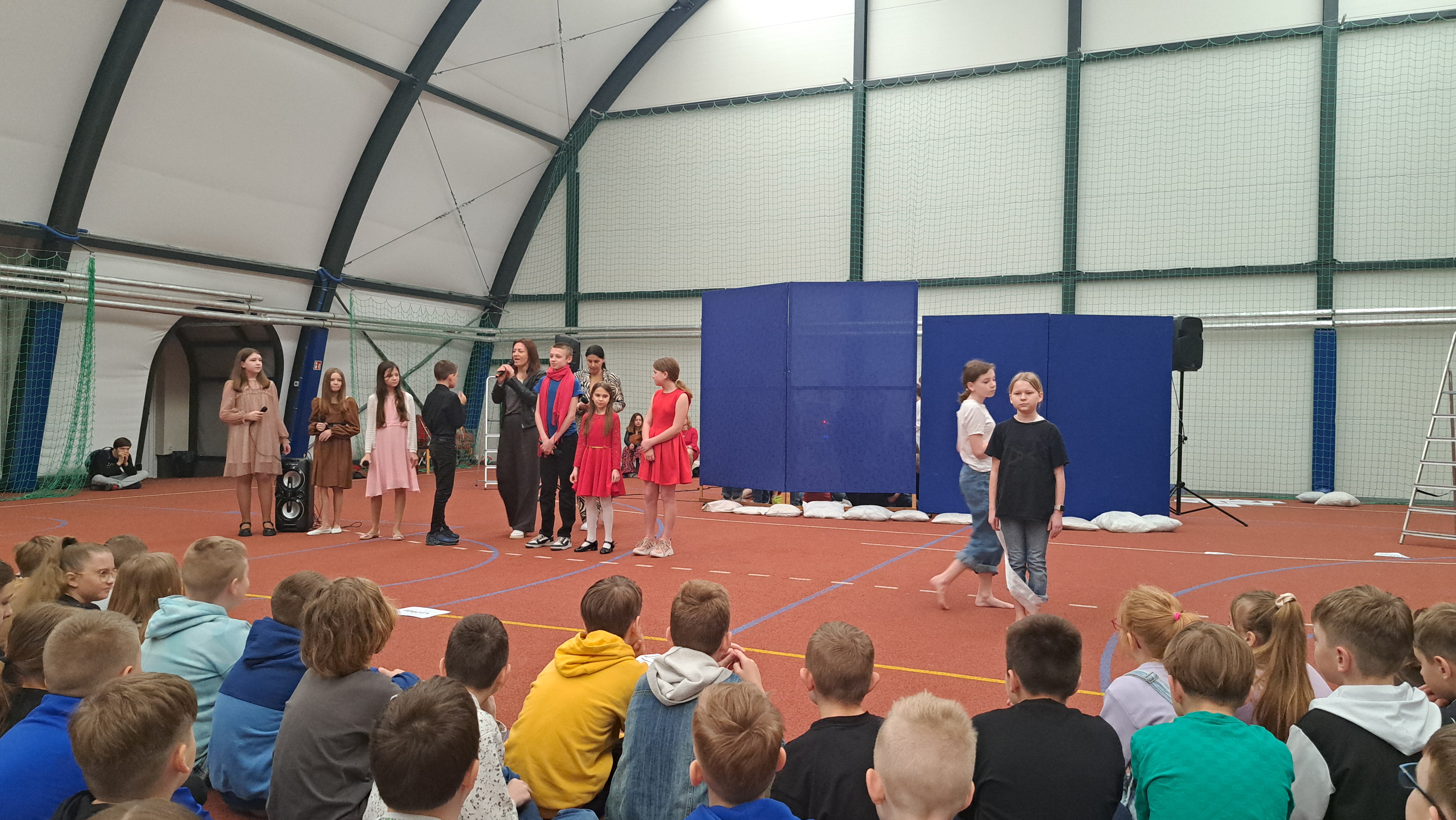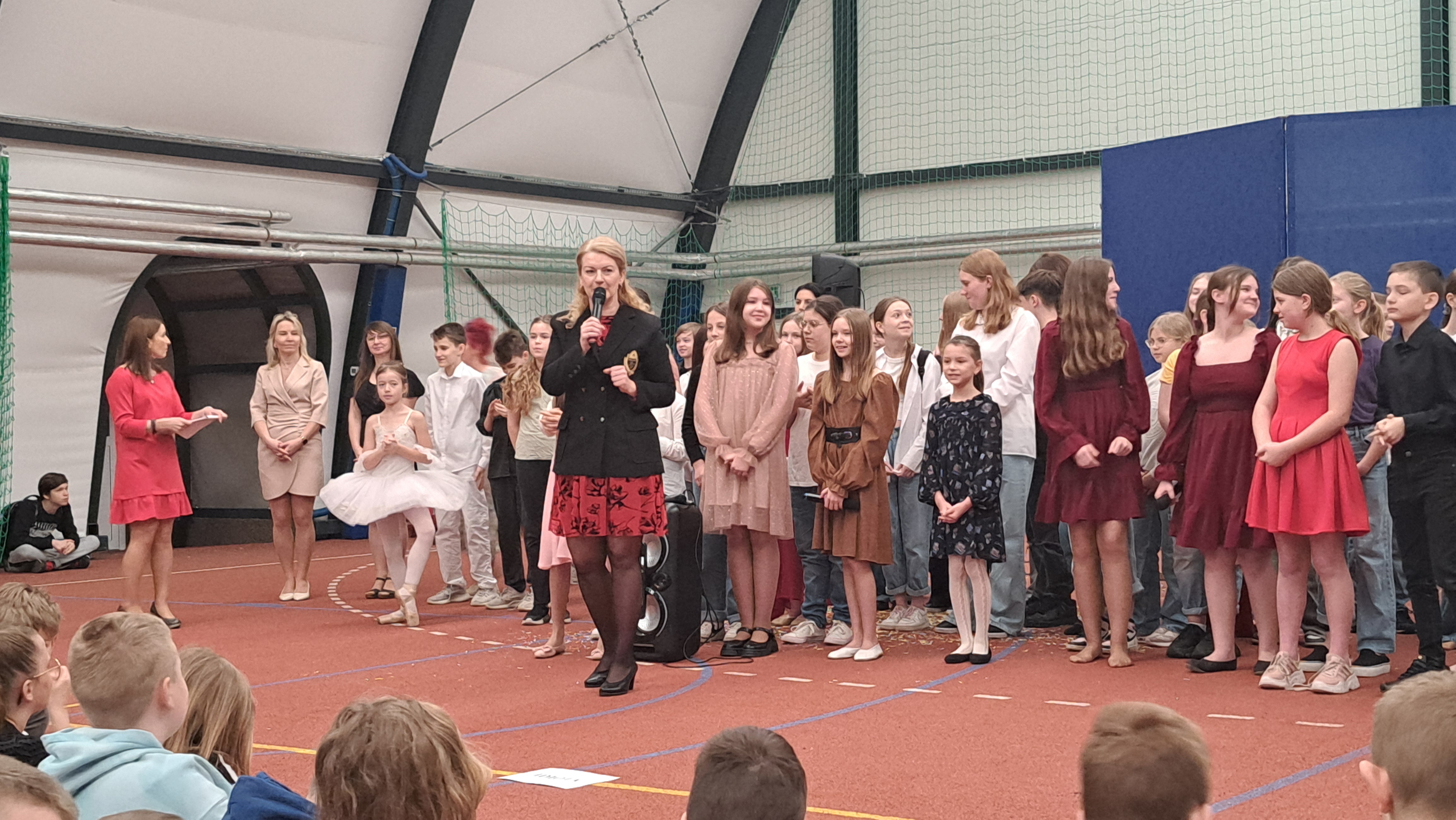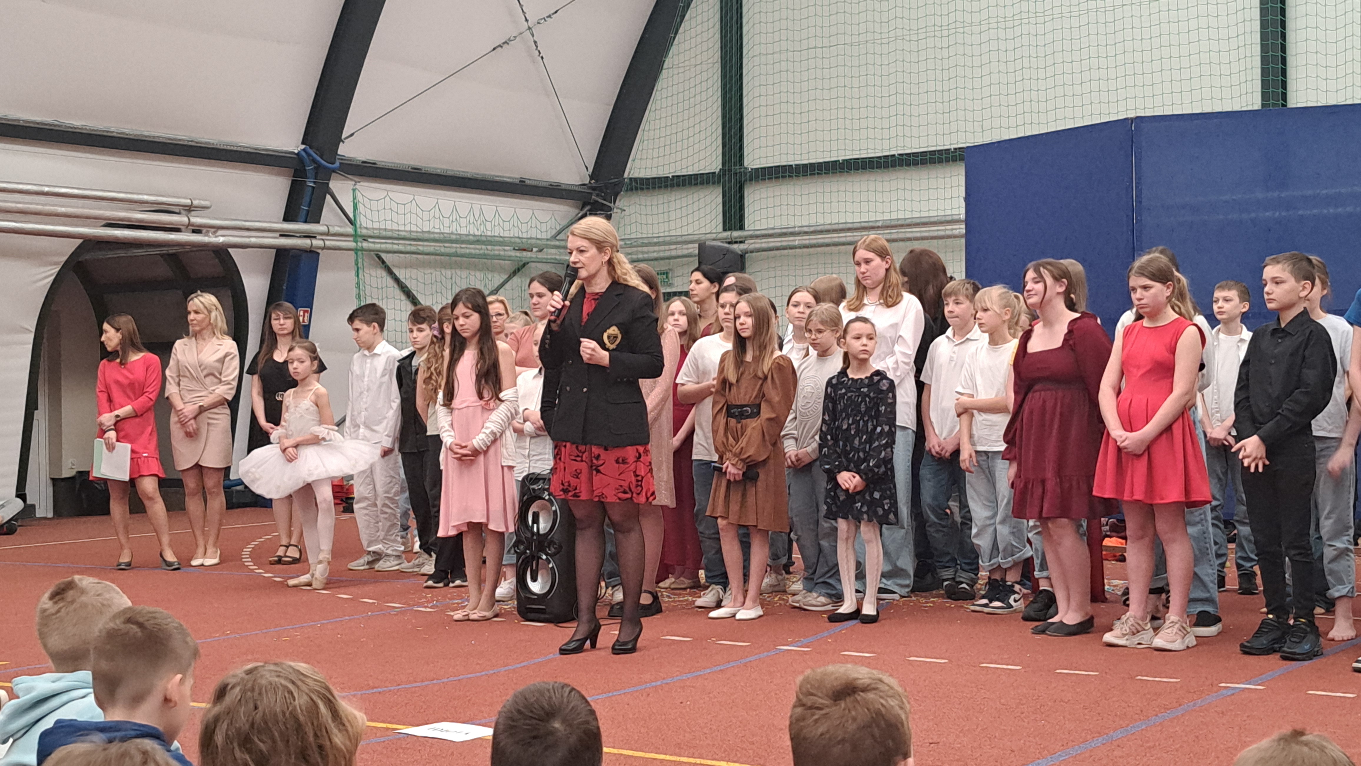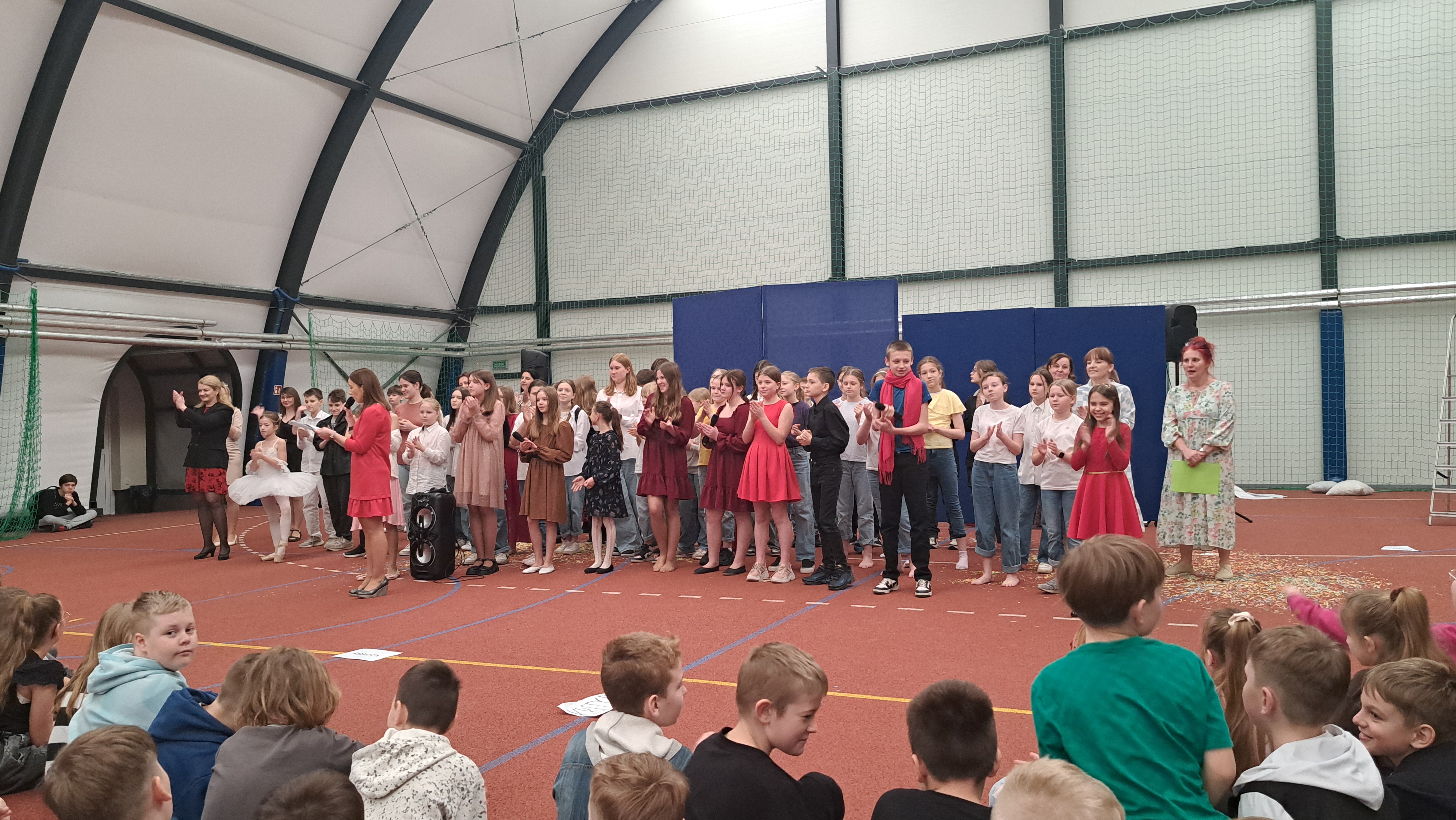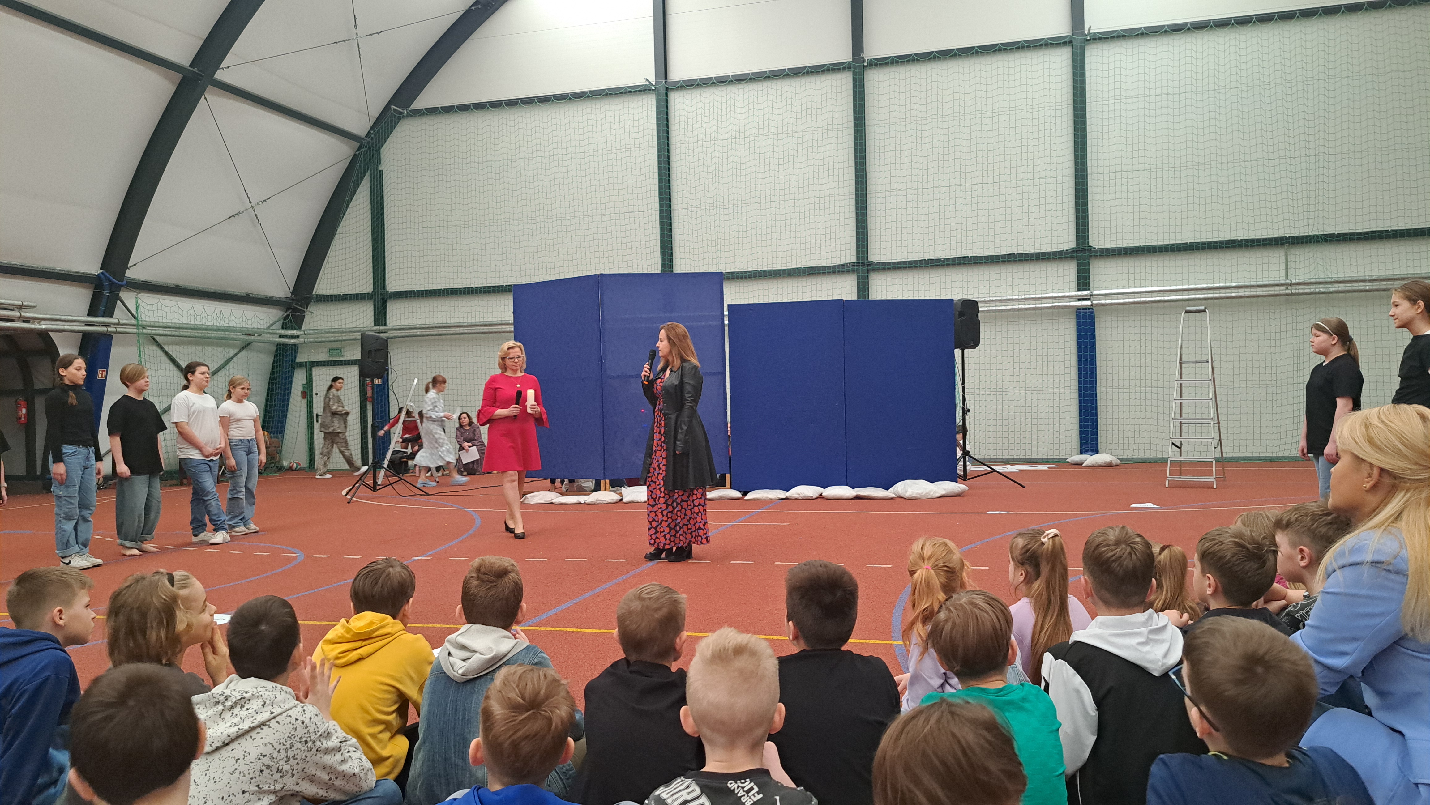 Dziś w naszej szkole odbyła się uroczystość pn. „Dobrem pokonajmy zło” w celu poruszenia ważnego tematu przeciwdziałania agresji i przemocy. Uczniowie klas 4-8 SP21 mogli obejrzeć spektakl w wykonaniu uczniów i nauczycieli naszej szkoły, który 26 marca 2024r. wzruszył i skłonił do refleksji honorowych gości, rodziców, dyrektorów elbląskich szkół podstawowych oraz delegacje nauczycieli i uczniów tych szkół zgromadzonych licznie na sali CSE „Światowid”.Starając się o uzyskanie certyfikatu „Szkoły Promującej Bezpieczeństwo”, chcemy szkoły, w której liczy się KAŻDY, w której KAŻDY jest potrzebny, wspierany, rozumiany. Pragniemy miejsca, które jest oknem nie tylko na świat, ale i zwierciadłem duszy, wrażliwym na ludzką krzywdę i cierpienie.Niewątpliwie problematyka przeciwdziałania agresji i przemocy nie jest nam obca. Robimy wszystko, aby szkoła była bezpieczna, czuła na ludzką krzywdę, by była miejscem, w którym każdy jest ważny. W Szkole Podstawowej nr 21 podejmujemy się wielu działań i inicjatyw, aby nie tylko uczniowie, ale również nauczyciele i pozostali pracownicy szkoły, czuli się tu dobrze, bezpiecznie… jak w domu, aby wszystkie dzieci z uśmiechem zaczynały i kończyły lekcje, aby właśnie TU znalazły spokój, możliwość zaspokajania swoich potrzeb, aby TU realizowały marzenia, spotykały dobrych, wrażliwych ludzi. Razem możemy naprawdę wiele. Wierzymy w to całym sercem, bo przecież dobrem pokonamy zło.Spektakl wyreżyserowały nasze dwie wyjątkowe polonistki: Pani Marta Mierzwa- Gałkowska i Pani Anna Jabłońska. „Dobrem pokonajmy zło” to hasło przewodnie przedstawienia i zarazem przejmujący krzyk, aby nigdy więcej żadne dziecko nie cierpiało, aby mogło cieszyć się dzieciństwem, nauką, zabawą.W spektaklu udział wzięli uczniowie z klas: 3a, 3c, 4a, 4c, 5a, 5b, 5c, 6a, 7b, 8a, a także zeszłoroczny absolwent naszej szkoły oraz nauczyciele:- śpiew: p.Joanna Fedyna, p.Magdalena Jakubowska, p.Anna Mulańska, p.Alicja Kaszuba, p.Karolina Woźniakowska;- recytacje: p.Joanna Kanikuła, p.Izabela Romanowska, p.Agnieszka Leśniewska, p.Lena Babecka, p.Anna Krakowska, p.Marta Mierzwa-Gałkowska, p.Anna Jabłońska.Po spektaklu Dyrektor Szkoły Podstawowej Nr 21 w Elblągu – Pani Joanna Celińska osobiście podziękowała naszemu wspaniałemu szkolnemu zespołowi teatralno-muzycznemu, wręczając uczniom słodkie upominki.Podczas uroczystości wyróżnione zostały również klasy, które wzięły udział w przygotowaniu plakatów na temat przeciwdziałania agresji i przemocy. Posłużyły one jako dekoracja sali podczas międzyszkolnego konkursu recytatorsko-oratorskiego pt. „Dobrem pokonajmy zło”, który został zorganizowany przez naszą szkołę w dniu 20 marca 2024r.Życzymy wszystkim wszechogarniającego DOBRA i pamiętajcie, że tylko DAWANE dobro wraca. Warto zapamiętać i wprowadzić w życie motto dzisiejszej uroczystości, sentencję Jana Pawła II: „Nie daj się zwyciężyć złu, ale zło DOBREM zwyciężaj.”