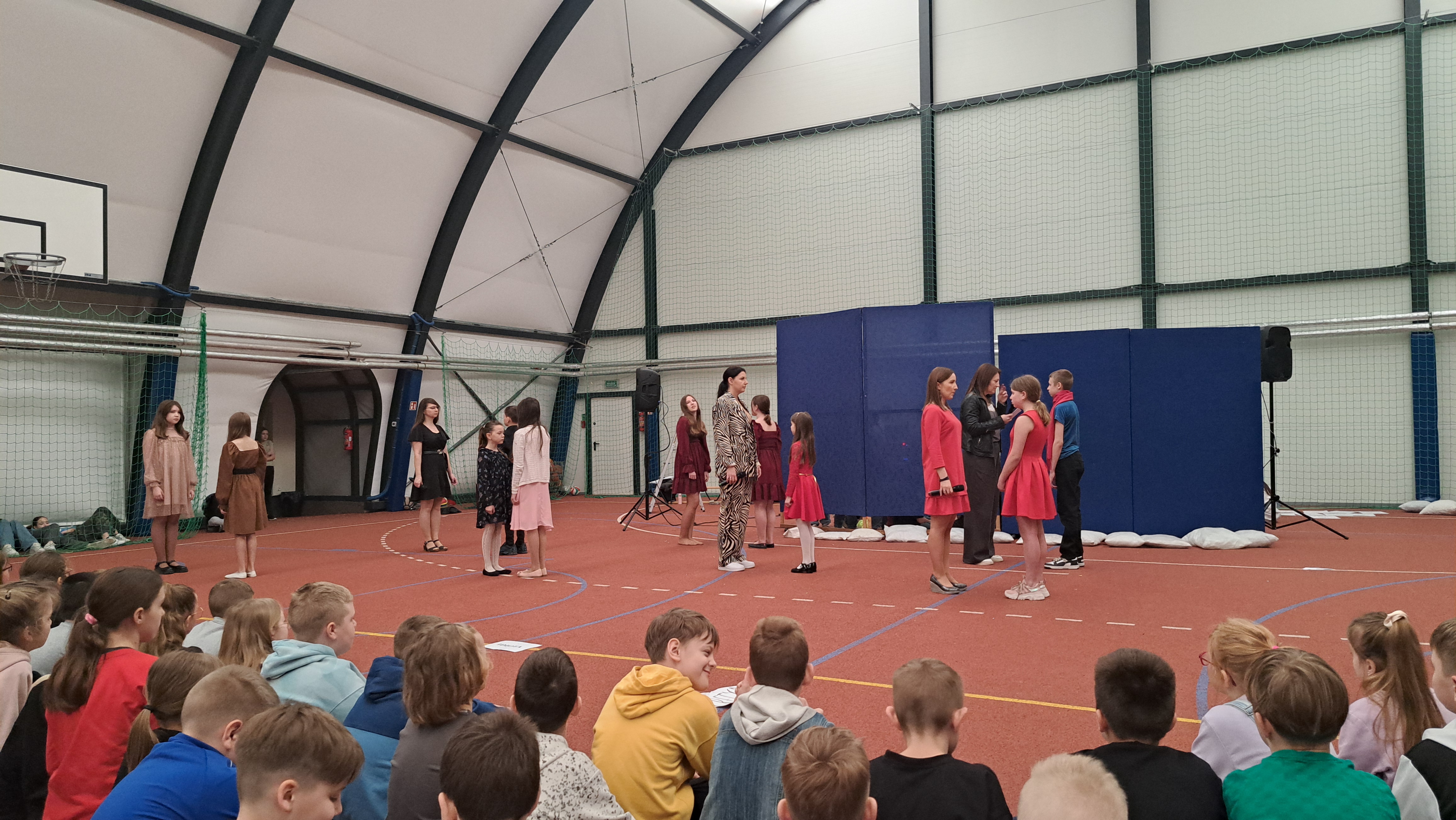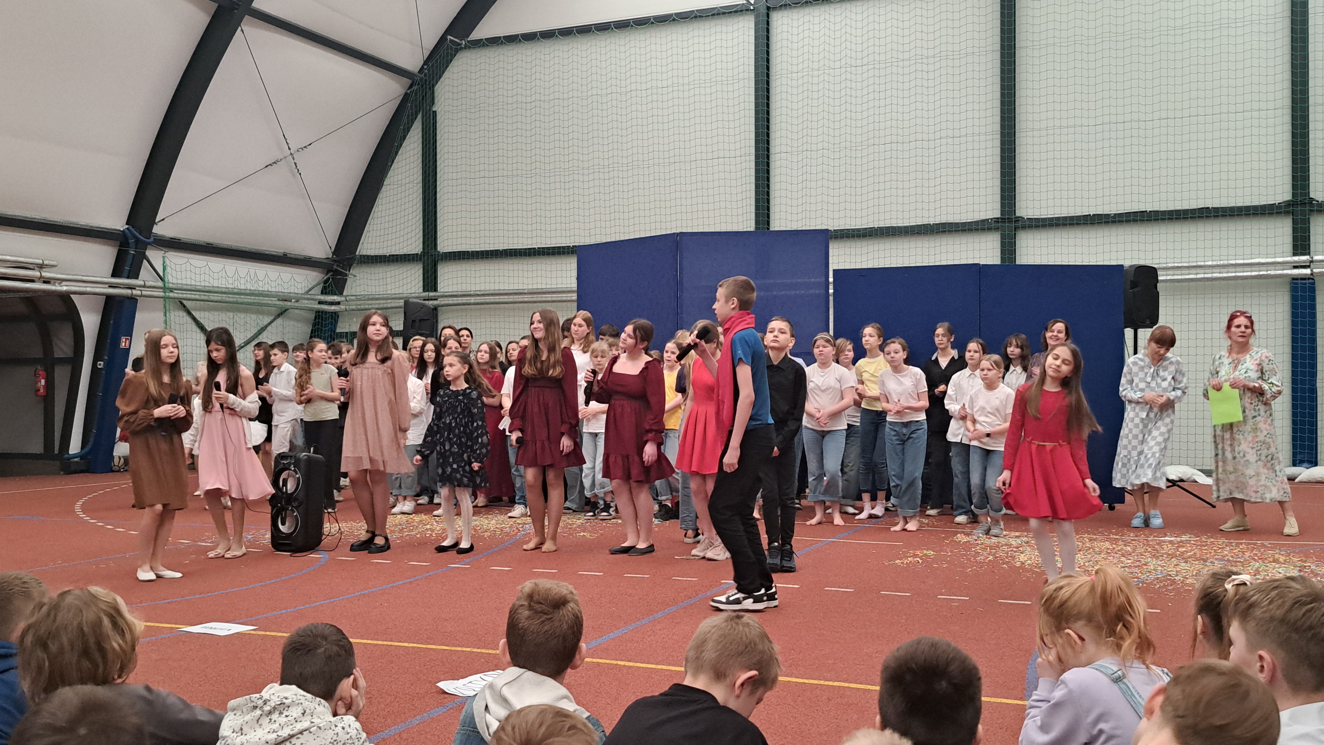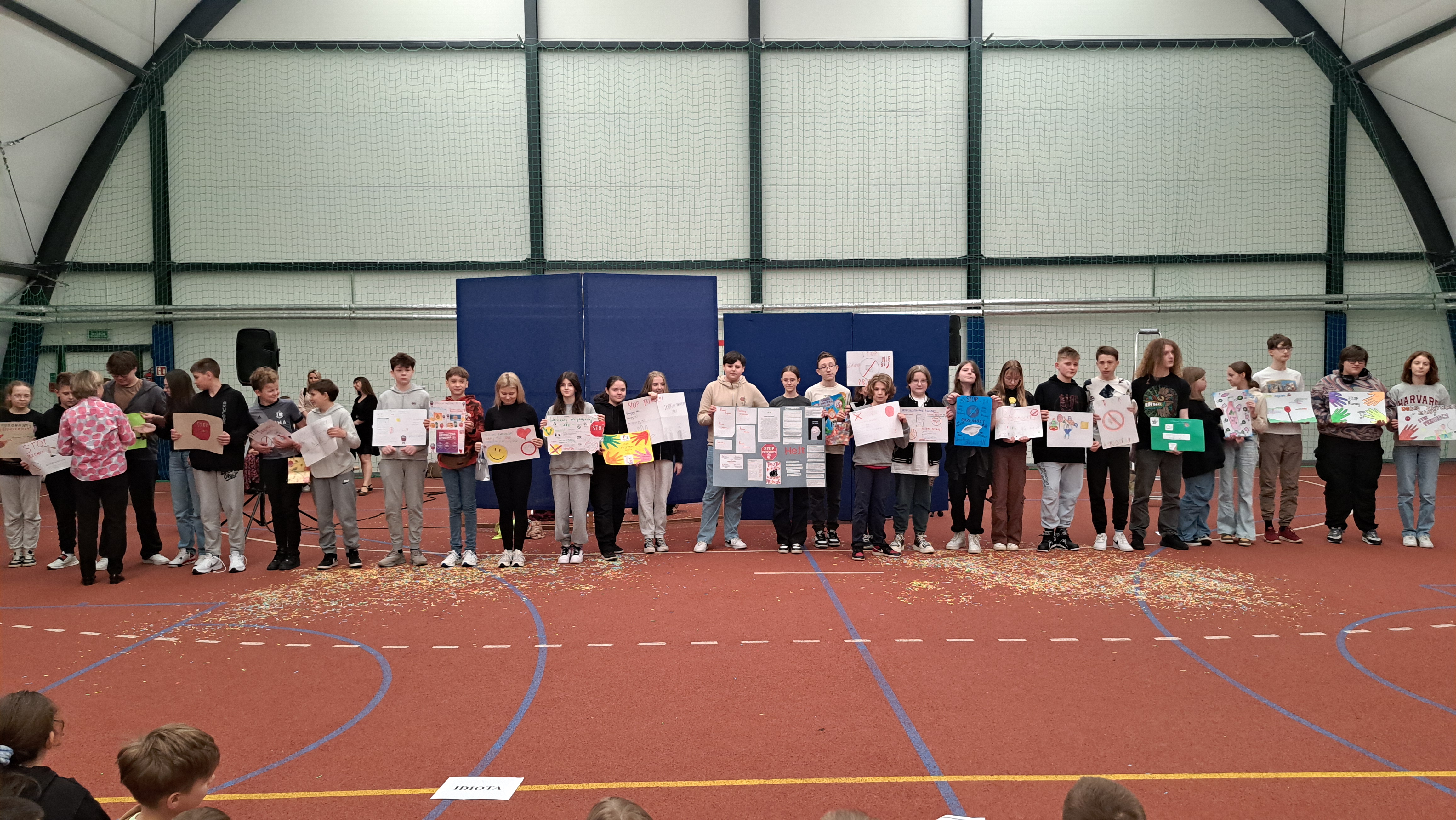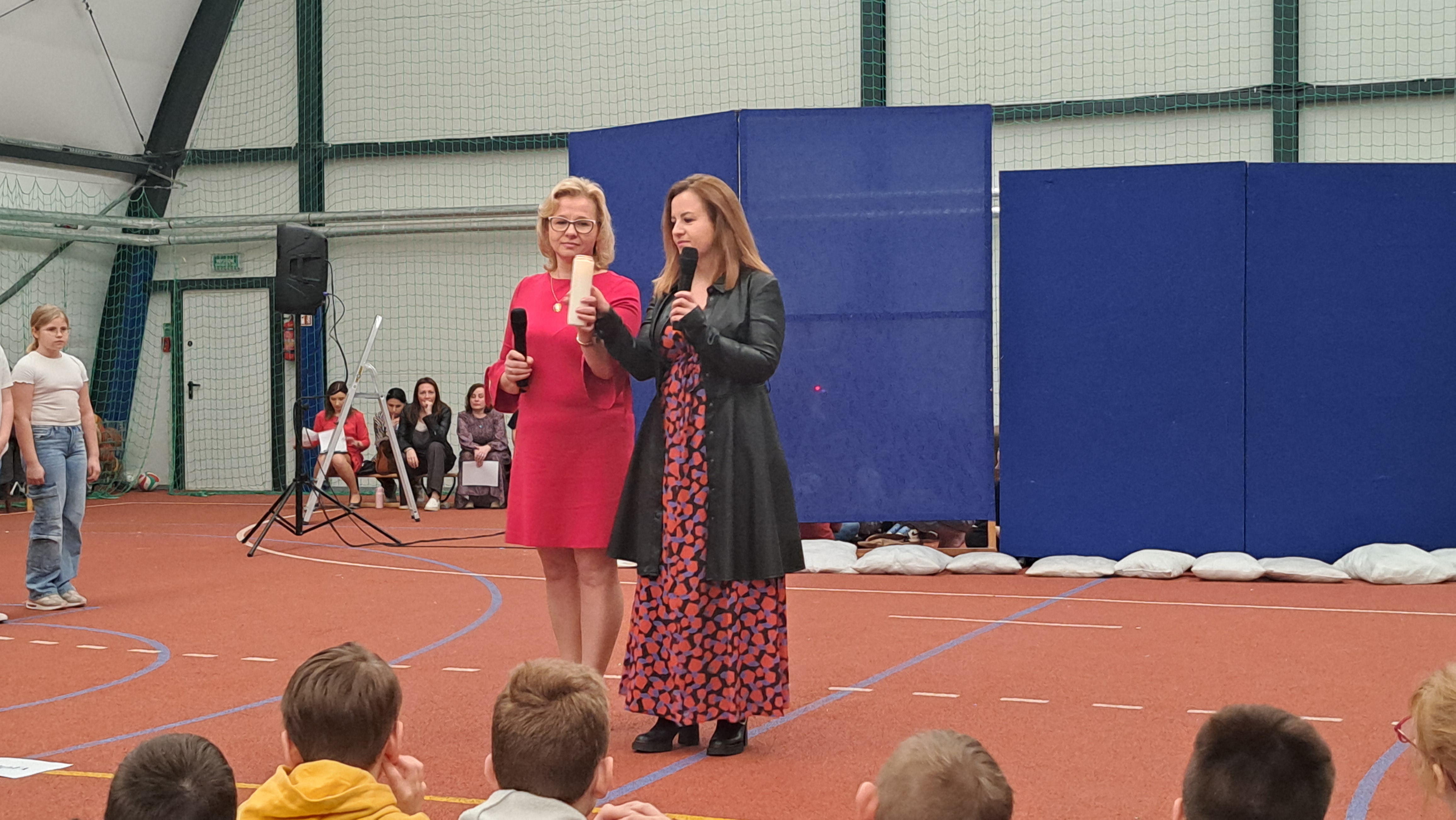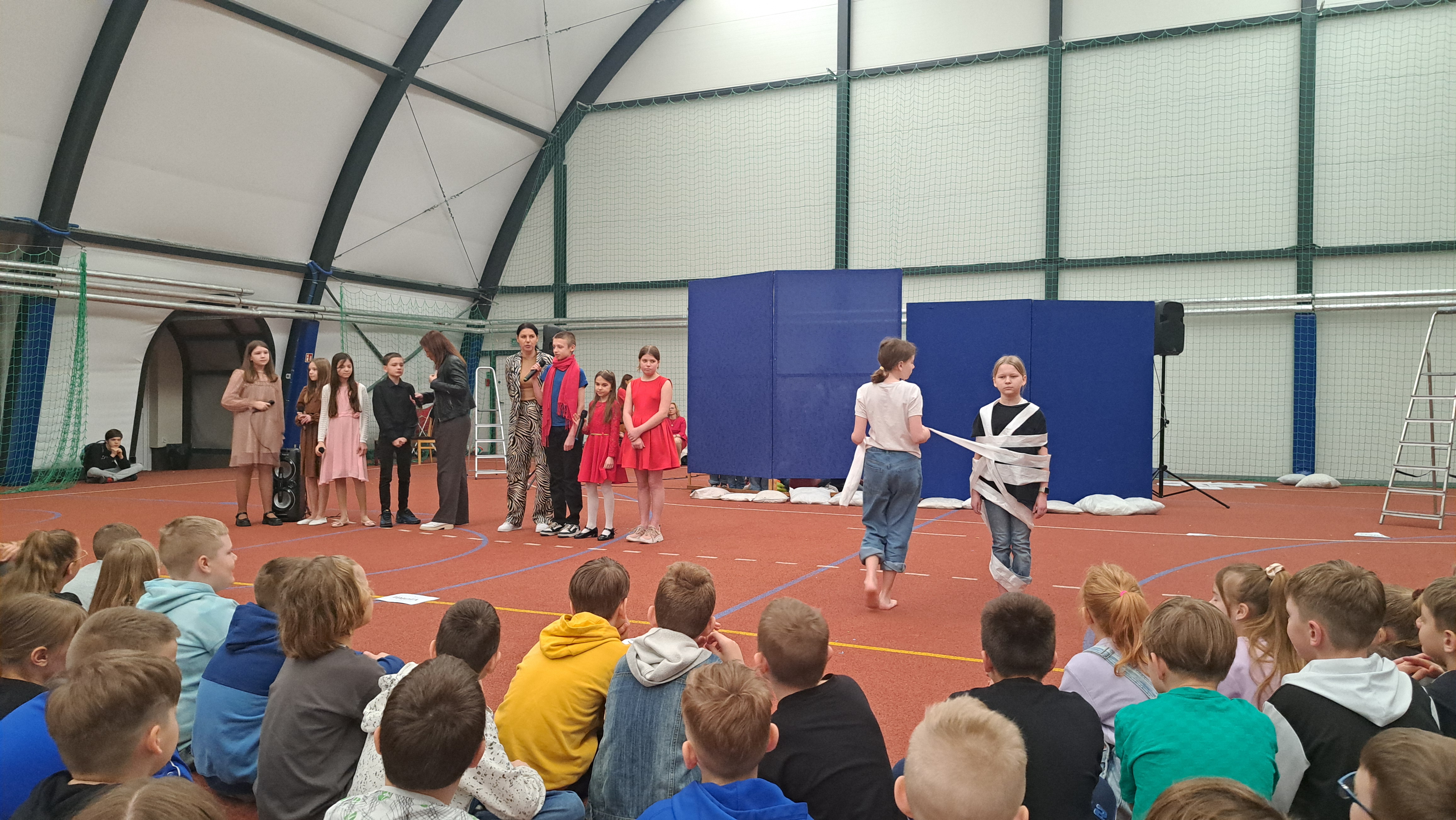 Dziś w naszej szkole odbyła się uroczystość pn. „Dobrem pokonajmy zło” w celu poruszenia ważnego tematu przeciwdziałania agresji i przemocy. Uczniowie klas 4-8 SP21 mogli obejrzeć spektakl w wykonaniu uczniów i nauczycieli naszej szkoły, który 26 marca 2024r. wzruszył i skłonił do refleksji honorowych gości, rodziców, dyrektorów elbląskich szkół podstawowych oraz delegacje nauczycieli i uczniów tych szkół zgromadzonych licznie na sali CSE „Światowid”.Starając się o uzyskanie certyfikatu „Szkoły Promującej Bezpieczeństwo”, chcemy szkoły, w której liczy się KAŻDY, w której KAŻDY jest potrzebny, wspierany, rozumiany. Pragniemy miejsca, które jest oknem nie tylko na świat, ale i zwierciadłem duszy, wrażliwym na ludzką krzywdę i cierpienie.Niewątpliwie problematyka przeciwdziałania agresji i przemocy nie jest nam obca. Robimy wszystko, aby szkoła była bezpieczna, czuła na ludzką krzywdę, by była miejscem, w którym każdy jest ważny. W Szkole Podstawowej nr 21 podejmujemy się wielu działań i inicjatyw, aby nie tylko uczniowie, ale również nauczyciele i pozostali pracownicy szkoły, czuli się tu dobrze, bezpiecznie… jak w domu, aby wszystkie dzieci z uśmiechem zaczynały i kończyły lekcje, aby właśnie TU znalazły spokój, możliwość zaspokajania swoich potrzeb, aby TU realizowały marzenia, spotykały dobrych, wrażliwych ludzi. Razem możemy naprawdę wiele. Wierzymy w to całym sercem, bo przecież dobrem pokonamy zło.Spektakl wyreżyserowały nasze dwie wyjątkowe polonistki: Pani Marta Mierzwa- Gałkowska i Pani Anna Jabłońska. „Dobrem pokonajmy zło” to hasło przewodnie przedstawienia i zarazem przejmujący krzyk, aby nigdy więcej żadne dziecko nie cierpiało, aby mogło cieszyć się dzieciństwem, nauką, zabawą.W spektaklu udział wzięli uczniowie z klas: 3a, 3c, 4a, 4c, 5a, 5b, 5c, 6a, 7b, 8a, a także zeszłoroczny absolwent naszej szkoły oraz nauczyciele:- śpiew: p.Joanna Fedyna, p.Magdalena Jakubowska, p.Anna Mulańska, p.Alicja Kaszuba, p.Karolina Woźniakowska;- recytacje: p.Joanna Kanikuła, p.Izabela Romanowska, p.Agnieszka Leśniewska, p.Lena Babecka, p.Anna Krakowska, p.Marta Mierzwa-Gałkowska, p.Anna Jabłońska.Po spektaklu Dyrektor Szkoły Podstawowej Nr 21 w Elblągu – Pani Joanna Celińska osobiście podziękowała naszemu wspaniałemu szkolnemu zespołowi teatralno-muzycznemu, wręczając uczniom słodkie upominki.Podczas uroczystości wyróżnione zostały również klasy, które wzięły udział w przygotowaniu plakatów na temat przeciwdziałania agresji i przemocy. Posłużyły one jako dekoracja sali podczas międzyszkolnego konkursu recytatorsko-oratorskiego pt. „Dobrem pokonajmy zło”, który został zorganizowany przez naszą szkołę w dniu 20 marca 2024r.Życzymy wszystkim wszechogarniającego DOBRA i pamiętajcie, że tylko DAWANE dobro wraca. Warto zapamiętać i wprowadzić w życie motto dzisiejszej uroczystości, sentencję Jana Pawła II: „Nie daj się zwyciężyć złu, ale zło DOBREM zwyciężaj.”