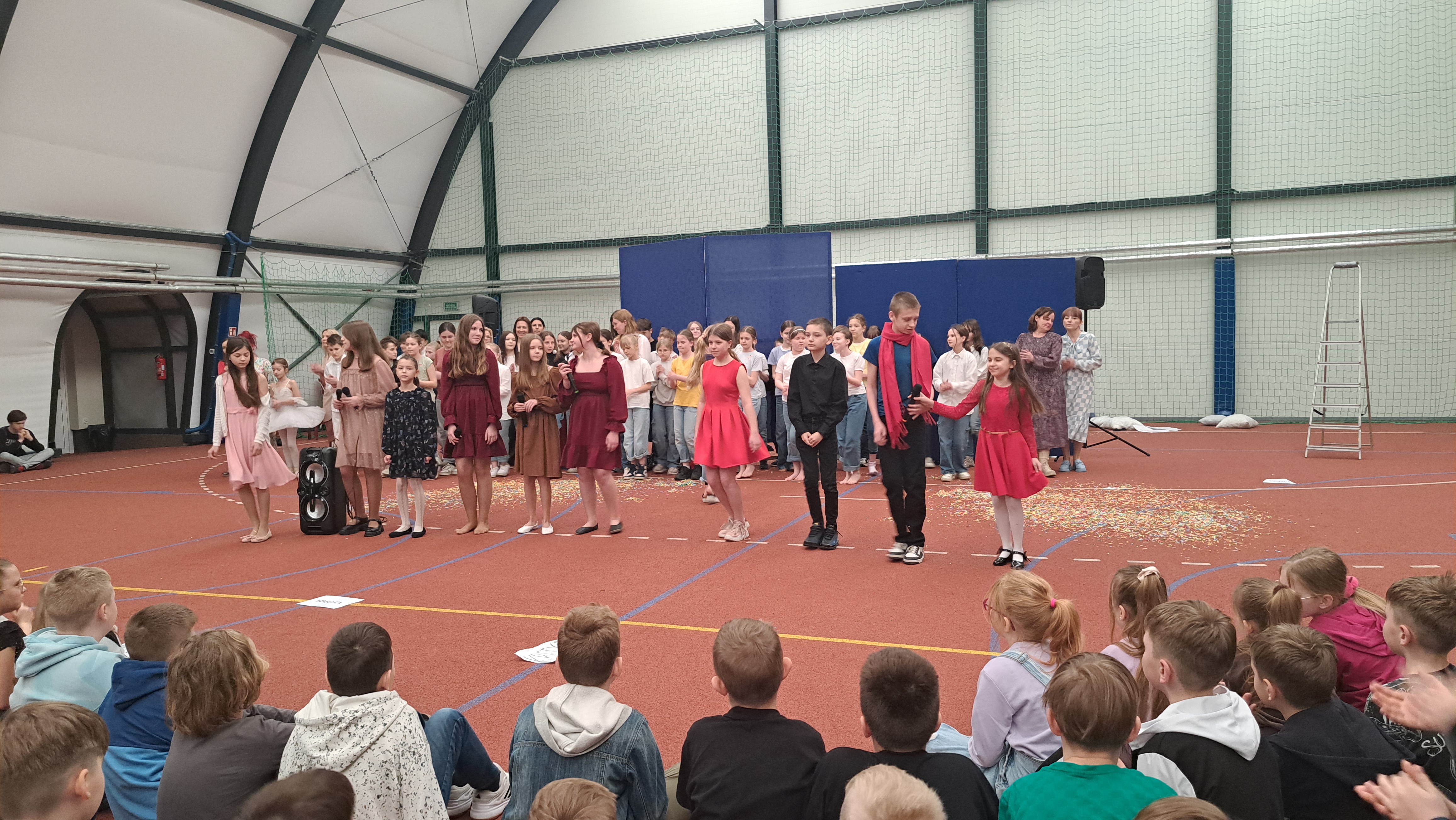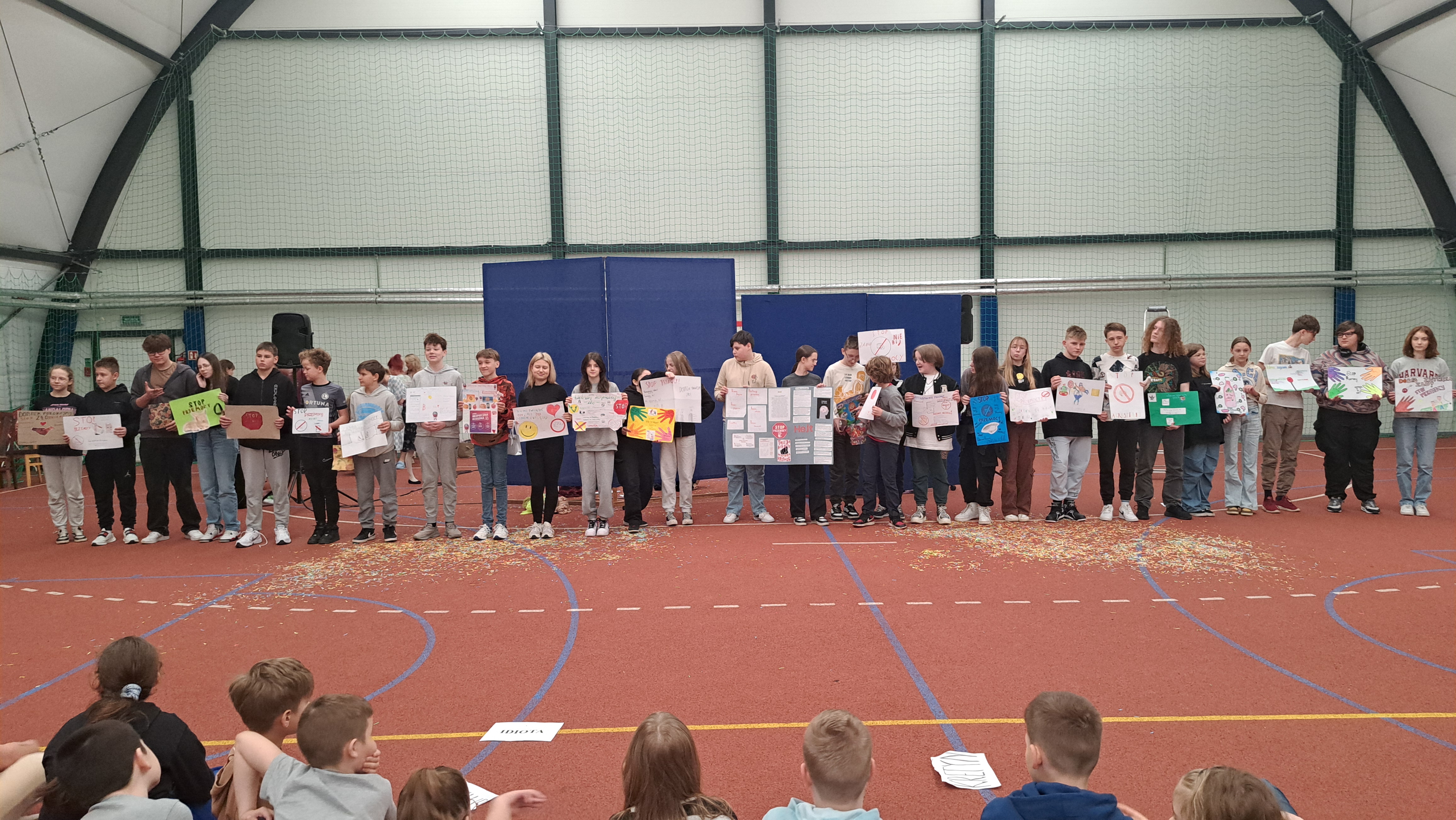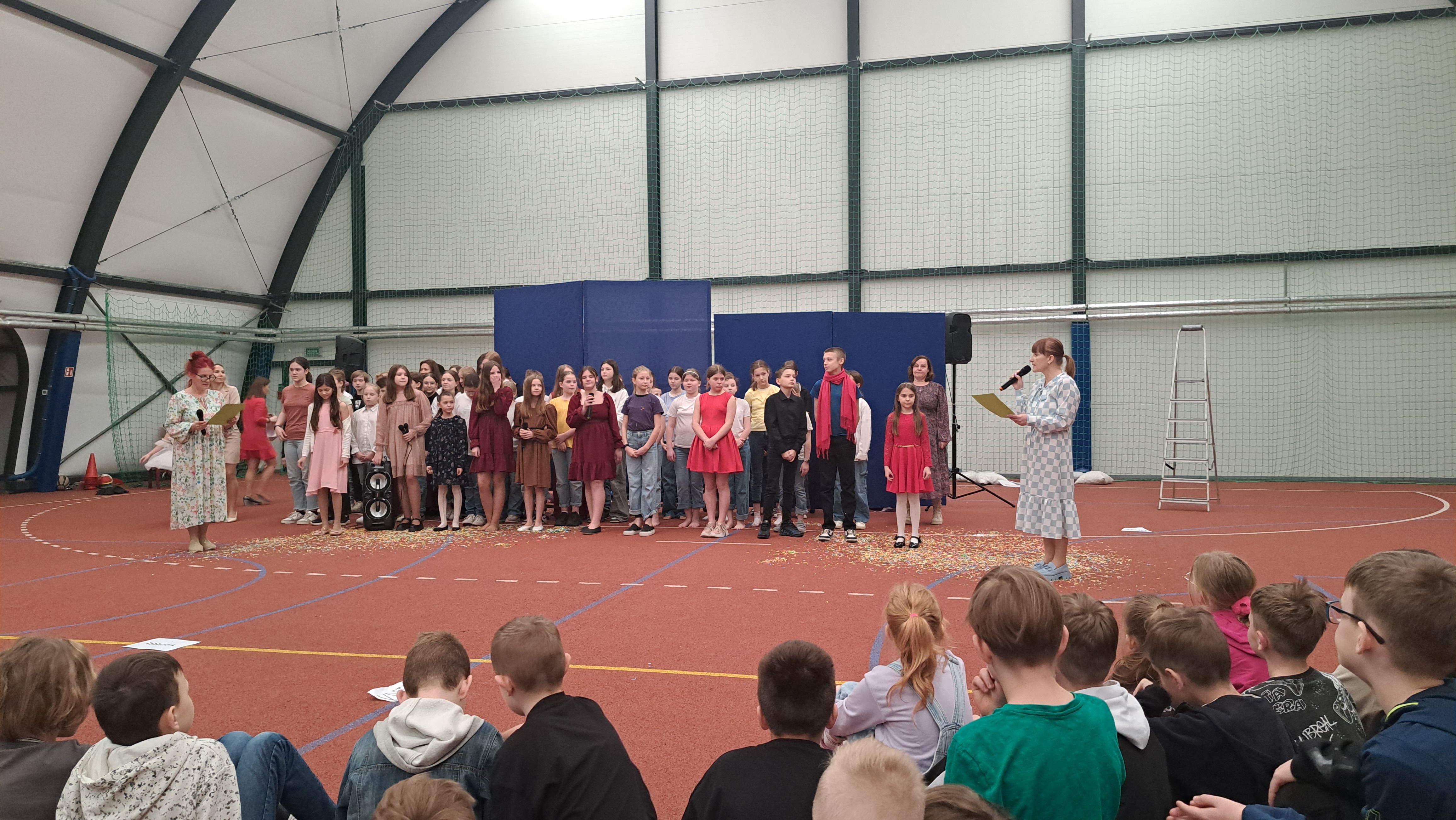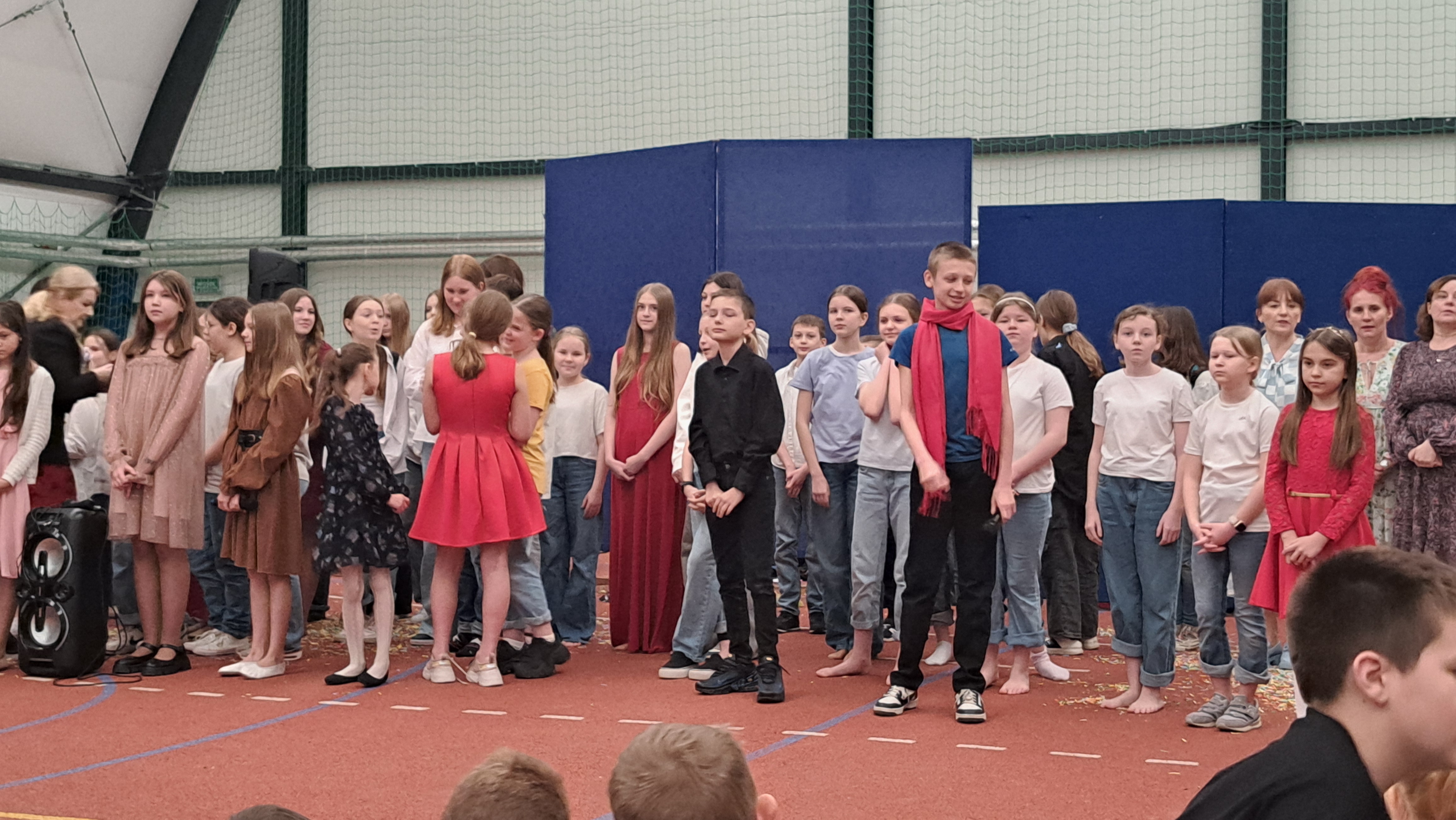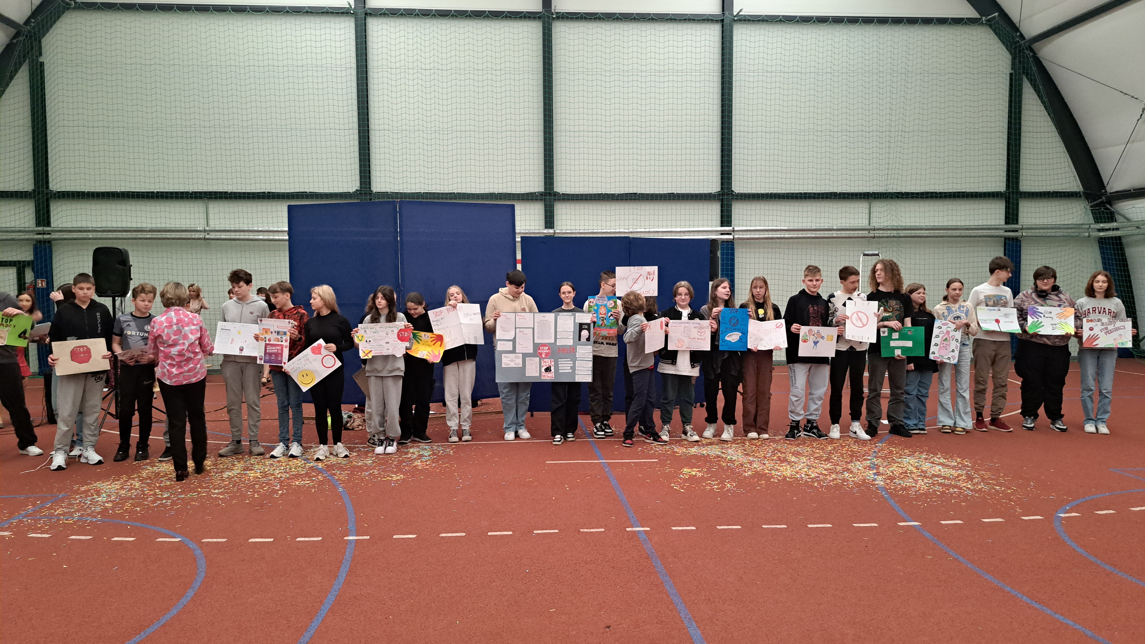 Dziś w naszej szkole odbyła się uroczystość pn. „Dobrem pokonajmy zło” w celu poruszenia ważnego tematu przeciwdziałania agresji i przemocy. Uczniowie klas 4-8 SP21 mogli obejrzeć spektakl w wykonaniu uczniów i nauczycieli naszej szkoły, który 26 marca 2024r. wzruszył i skłonił do refleksji honorowych gości, rodziców, dyrektorów elbląskich szkół podstawowych oraz delegacje nauczycieli i uczniów tych szkół zgromadzonych licznie na sali CSE „Światowid”.Starając się o uzyskanie certyfikatu „Szkoły Promującej Bezpieczeństwo”, chcemy szkoły, w której liczy się KAŻDY, w której KAŻDY jest potrzebny, wspierany, rozumiany. Pragniemy miejsca, które jest oknem nie tylko na świat, ale i zwierciadłem duszy, wrażliwym na ludzką krzywdę i cierpienie.Niewątpliwie problematyka przeciwdziałania agresji i przemocy nie jest nam obca. Robimy wszystko, aby szkoła była bezpieczna, czuła na ludzką krzywdę, by była miejscem, w którym każdy jest ważny. W Szkole Podstawowej nr 21 podejmujemy się wielu działań i inicjatyw, aby nie tylko uczniowie, ale również nauczyciele i pozostali pracownicy szkoły, czuli się tu dobrze, bezpiecznie… jak w domu, aby wszystkie dzieci z uśmiechem zaczynały i kończyły lekcje, aby właśnie TU znalazły spokój, możliwość zaspokajania swoich potrzeb, aby TU realizowały marzenia, spotykały dobrych, wrażliwych ludzi. Razem możemy naprawdę wiele. Wierzymy w to całym sercem, bo przecież dobrem pokonamy zło.Spektakl wyreżyserowały nasze dwie wyjątkowe polonistki: Pani Marta Mierzwa- Gałkowska i Pani Anna Jabłońska. „Dobrem pokonajmy zło” to hasło przewodnie przedstawienia i zarazem przejmujący krzyk, aby nigdy więcej żadne dziecko nie cierpiało, aby mogło cieszyć się dzieciństwem, nauką, zabawą.W spektaklu udział wzięli uczniowie z klas: 3a, 3c, 4a, 4c, 5a, 5b, 5c, 6a, 7b, 8a, a także zeszłoroczny absolwent naszej szkoły oraz nauczyciele:- śpiew: p.Joanna Fedyna, p.Magdalena Jakubowska, p.Anna Mulańska, p.Alicja Kaszuba, p.Karolina Woźniakowska;- recytacje: p.Joanna Kanikuła, p.Izabela Romanowska, p.Agnieszka Leśniewska, p.Lena Babecka, p.Anna Krakowska, p.Marta Mierzwa-Gałkowska, p.Anna Jabłońska.Po spektaklu Dyrektor Szkoły Podstawowej Nr 21 w Elblągu – Pani Joanna Celińska osobiście podziękowała naszemu wspaniałemu szkolnemu zespołowi teatralno-muzycznemu, wręczając uczniom słodkie upominki.Podczas uroczystości wyróżnione zostały również klasy, które wzięły udział w przygotowaniu plakatów na temat przeciwdziałania agresji i przemocy. Posłużyły one jako dekoracja sali podczas międzyszkolnego konkursu recytatorsko-oratorskiego pt. „Dobrem pokonajmy zło”, który został zorganizowany przez naszą szkołę w dniu 20 marca 2024r.Życzymy wszystkim wszechogarniającego DOBRA i pamiętajcie, że tylko DAWANE dobro wraca. Warto zapamiętać i wprowadzić w życie motto dzisiejszej uroczystości, sentencję Jana Pawła II: „Nie daj się zwyciężyć złu, ale zło DOBREM zwyciężaj.”