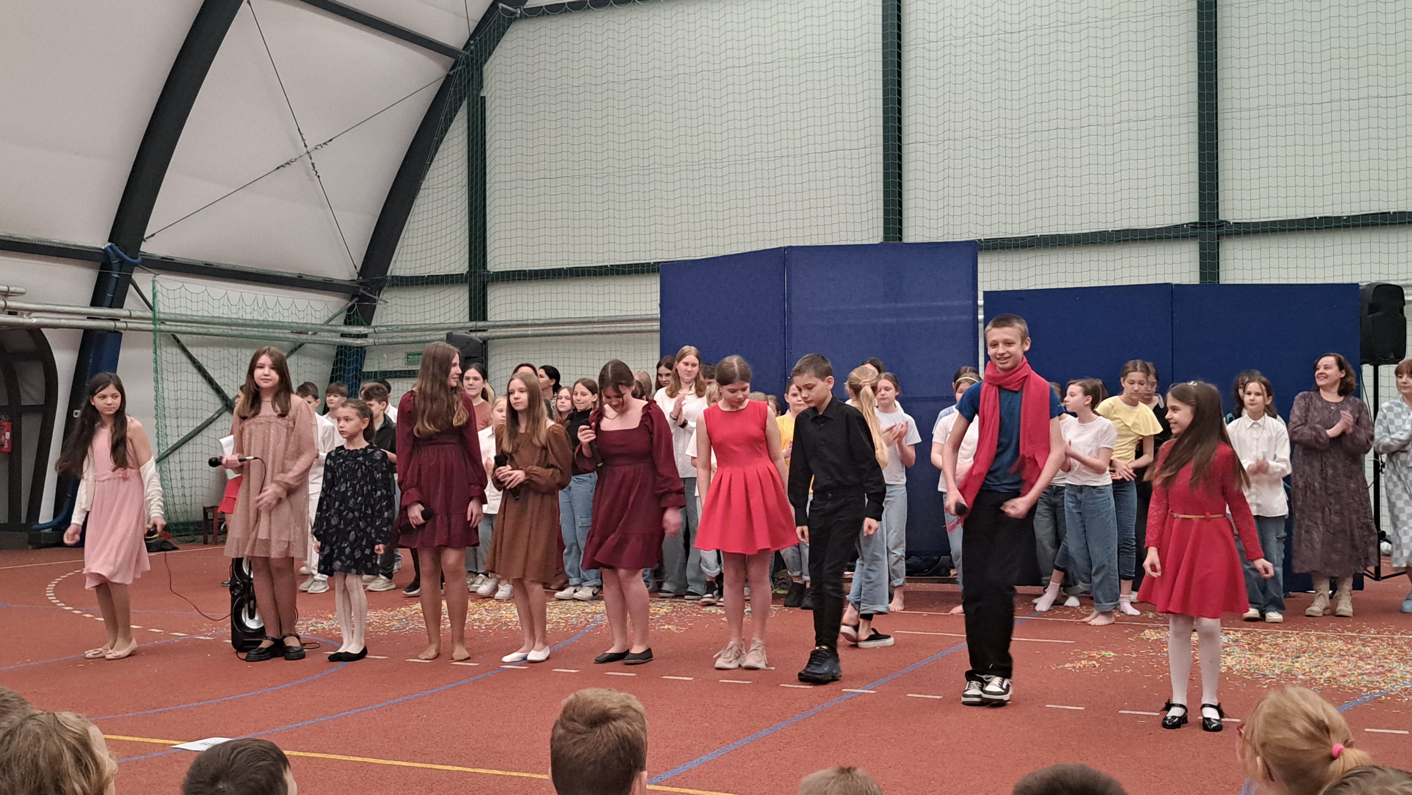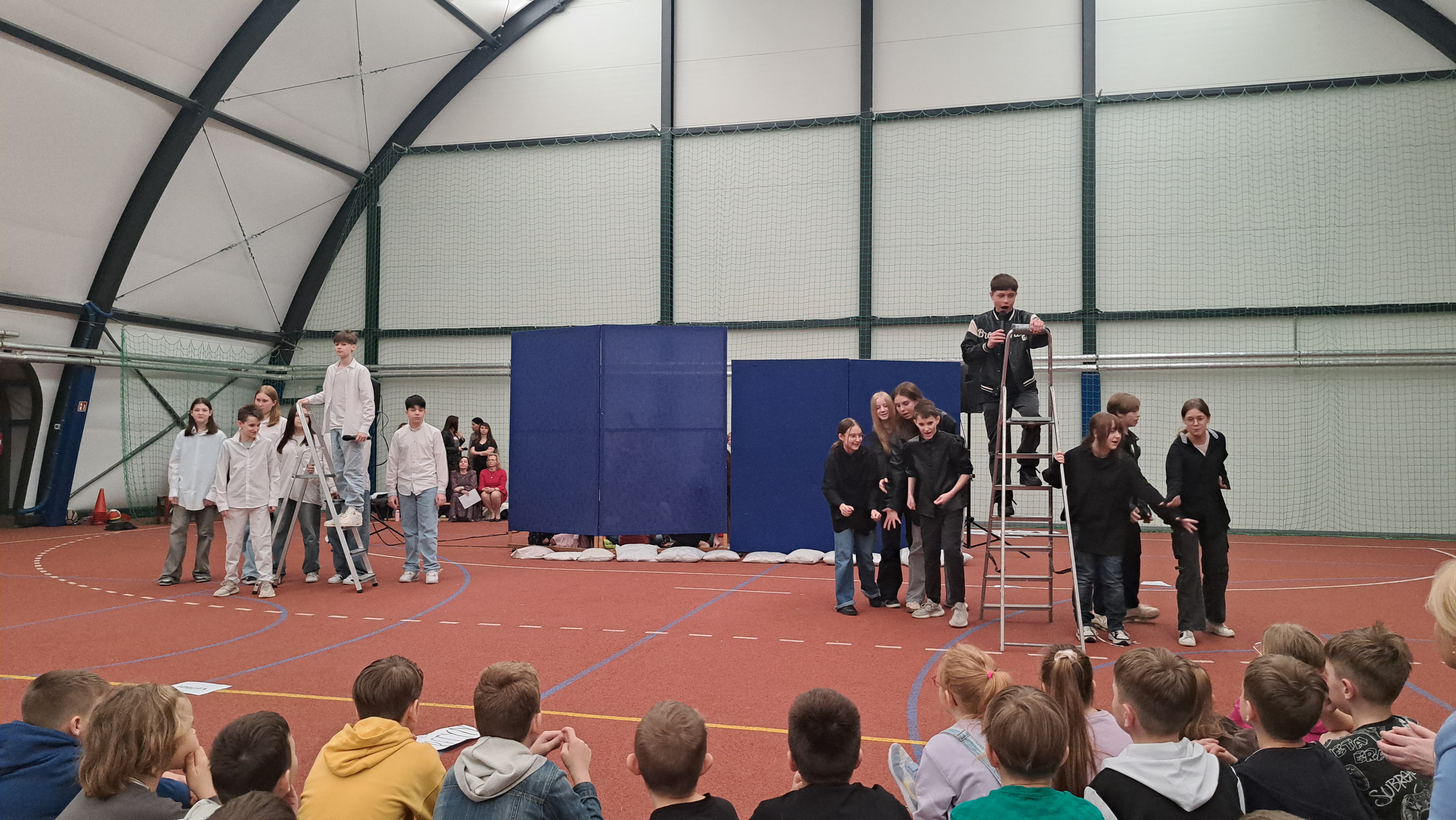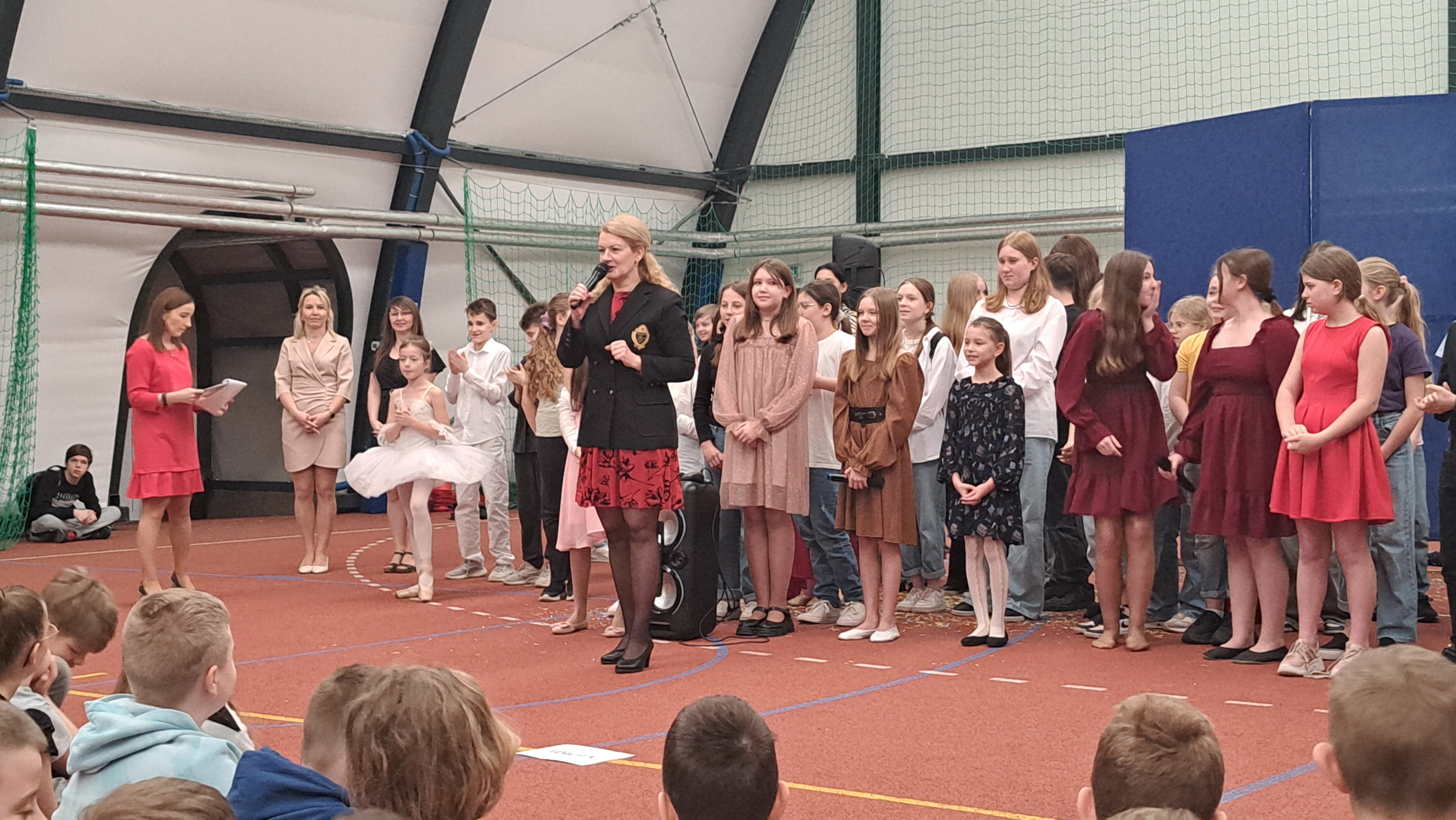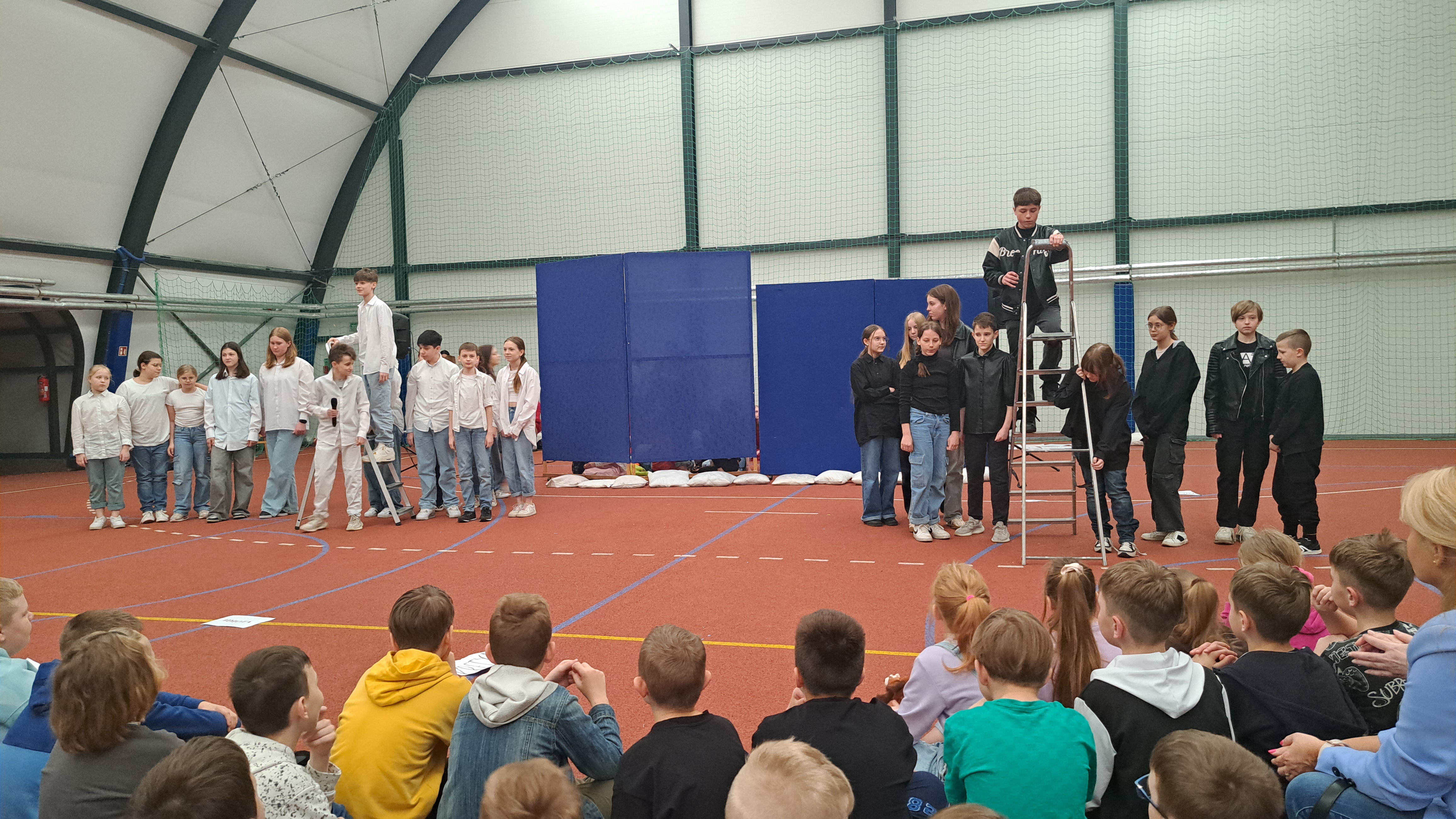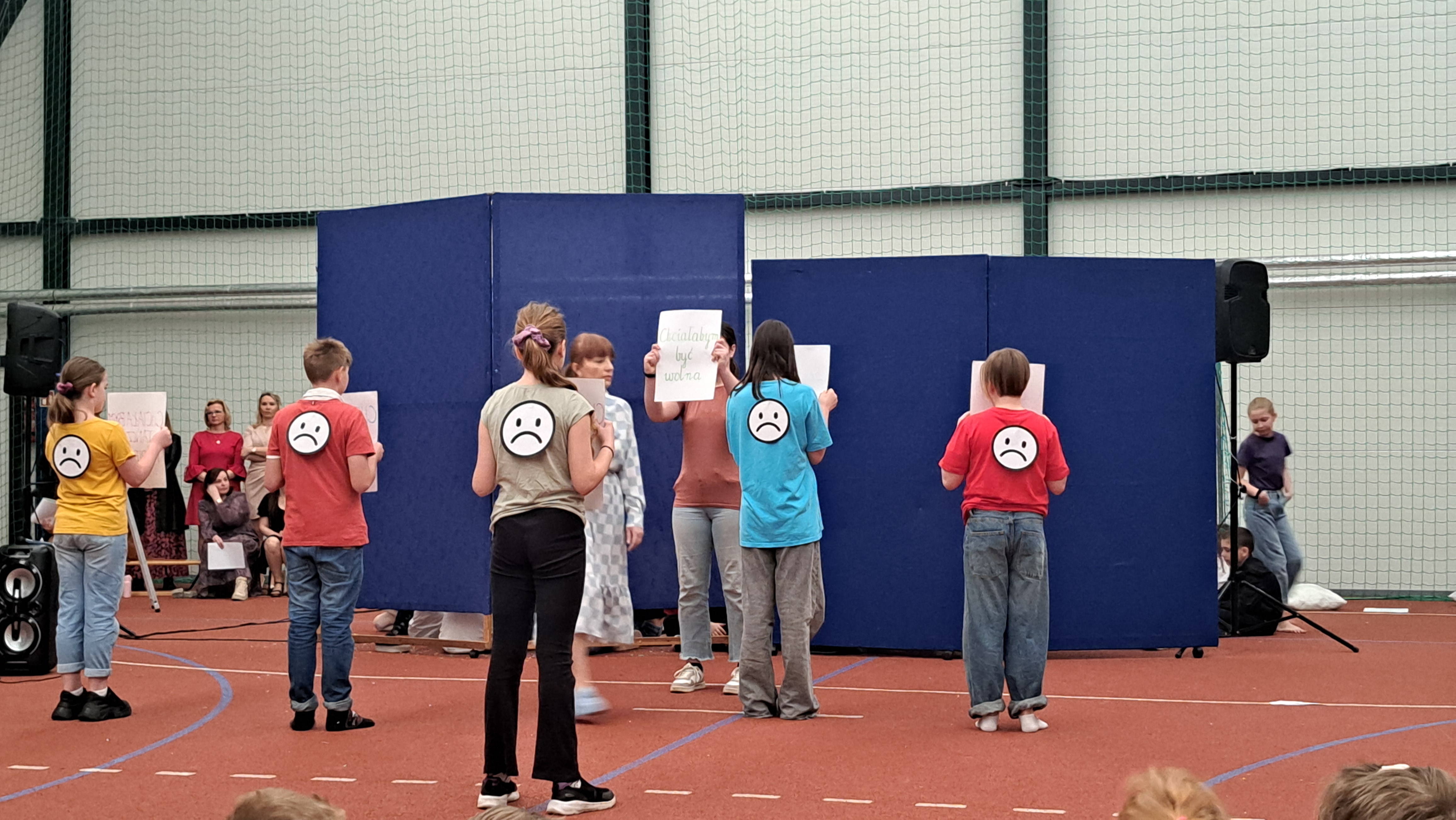 Dziś w naszej szkole odbyła się uroczystość pn. „Dobrem pokonajmy zło” w celu poruszenia ważnego tematu przeciwdziałania agresji i przemocy. Uczniowie klas 4-8 SP21 mogli obejrzeć spektakl w wykonaniu uczniów i nauczycieli naszej szkoły, który 26 marca 2024r. wzruszył i skłonił do refleksji honorowych gości, rodziców, dyrektorów elbląskich szkół podstawowych oraz delegacje nauczycieli i uczniów tych szkół zgromadzonych licznie na sali CSE „Światowid”.Starając się o uzyskanie certyfikatu „Szkoły Promującej Bezpieczeństwo”, chcemy szkoły, w której liczy się KAŻDY, w której KAŻDY jest potrzebny, wspierany, rozumiany. Pragniemy miejsca, które jest oknem nie tylko na świat, ale i zwierciadłem duszy, wrażliwym na ludzką krzywdę i cierpienie.Niewątpliwie problematyka przeciwdziałania agresji i przemocy nie jest nam obca. Robimy wszystko, aby szkoła była bezpieczna, czuła na ludzką krzywdę, by była miejscem, w którym każdy jest ważny. W Szkole Podstawowej nr 21 podejmujemy się wielu działań i inicjatyw, aby nie tylko uczniowie, ale również nauczyciele i pozostali pracownicy szkoły, czuli się tu dobrze, bezpiecznie… jak w domu, aby wszystkie dzieci z uśmiechem zaczynały i kończyły lekcje, aby właśnie TU znalazły spokój, możliwość zaspokajania swoich potrzeb, aby TU realizowały marzenia, spotykały dobrych, wrażliwych ludzi. Razem możemy naprawdę wiele. Wierzymy w to całym sercem, bo przecież dobrem pokonamy zło.Spektakl wyreżyserowały nasze dwie wyjątkowe polonistki: Pani Marta Mierzwa- Gałkowska i Pani Anna Jabłońska. „Dobrem pokonajmy zło” to hasło przewodnie przedstawienia i zarazem przejmujący krzyk, aby nigdy więcej żadne dziecko nie cierpiało, aby mogło cieszyć się dzieciństwem, nauką, zabawą.W spektaklu udział wzięli uczniowie z klas: 3a, 3c, 4a, 4c, 5a, 5b, 5c, 6a, 7b, 8a, a także zeszłoroczny absolwent naszej szkoły oraz nauczyciele:- śpiew: p.Joanna Fedyna, p.Magdalena Jakubowska, p.Anna Mulańska, p.Alicja Kaszuba, p.Karolina Woźniakowska;- recytacje: p.Joanna Kanikuła, p.Izabela Romanowska, p.Agnieszka Leśniewska, p.Lena Babecka, p.Anna Krakowska, p.Marta Mierzwa-Gałkowska, p.Anna Jabłońska.Po spektaklu Dyrektor Szkoły Podstawowej Nr 21 w Elblągu – Pani Joanna Celińska osobiście podziękowała naszemu wspaniałemu szkolnemu zespołowi teatralno-muzycznemu, wręczając uczniom słodkie upominki.Podczas uroczystości wyróżnione zostały również klasy, które wzięły udział w przygotowaniu plakatów na temat przeciwdziałania agresji i przemocy. Posłużyły one jako dekoracja sali podczas międzyszkolnego konkursu recytatorsko-oratorskiego pt. „Dobrem pokonajmy zło”, który został zorganizowany przez naszą szkołę w dniu 20 marca 2024r.Życzymy wszystkim wszechogarniającego DOBRA i pamiętajcie, że tylko DAWANE dobro wraca. Warto zapamiętać i wprowadzić w życie motto dzisiejszej uroczystości, sentencję Jana Pawła II: „Nie daj się zwyciężyć złu, ale zło DOBREM zwyciężaj.”