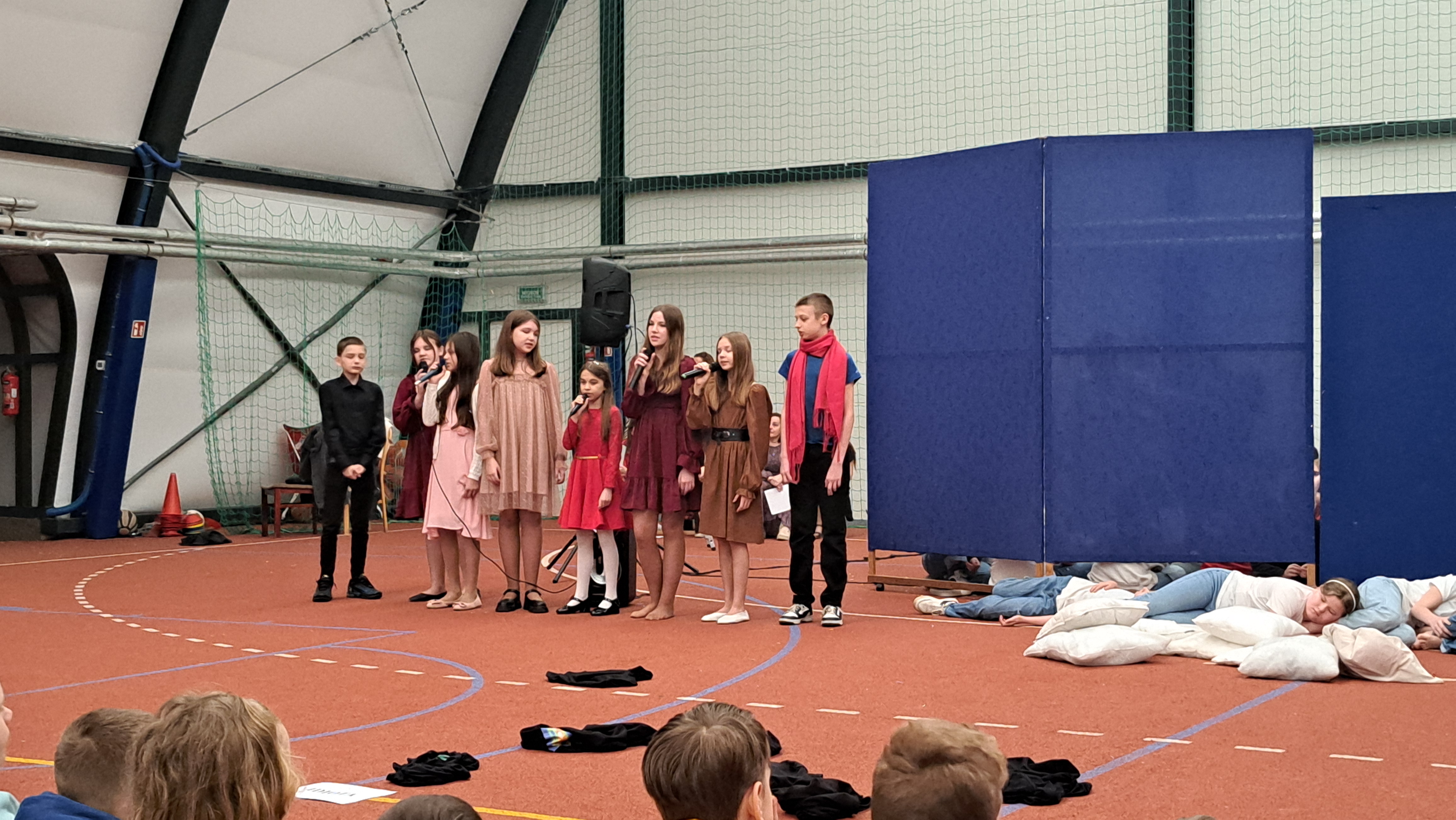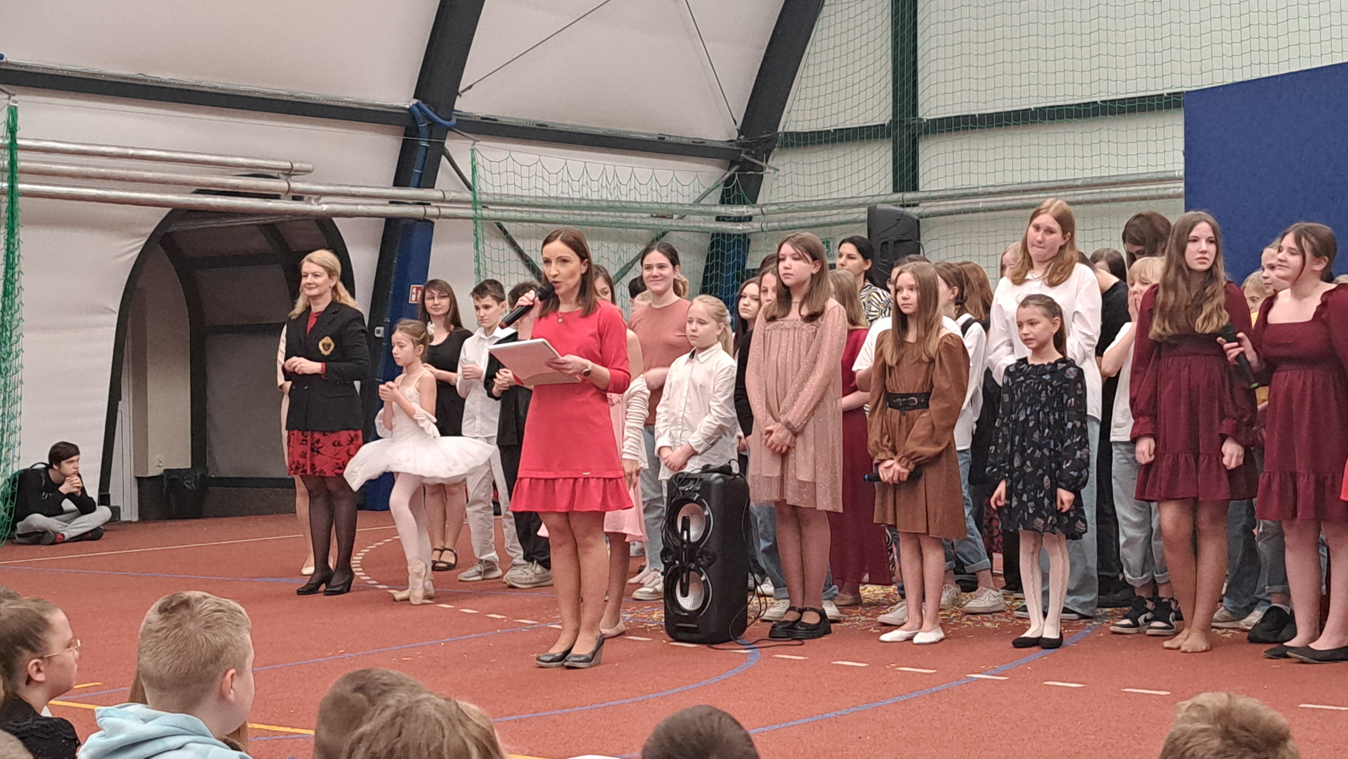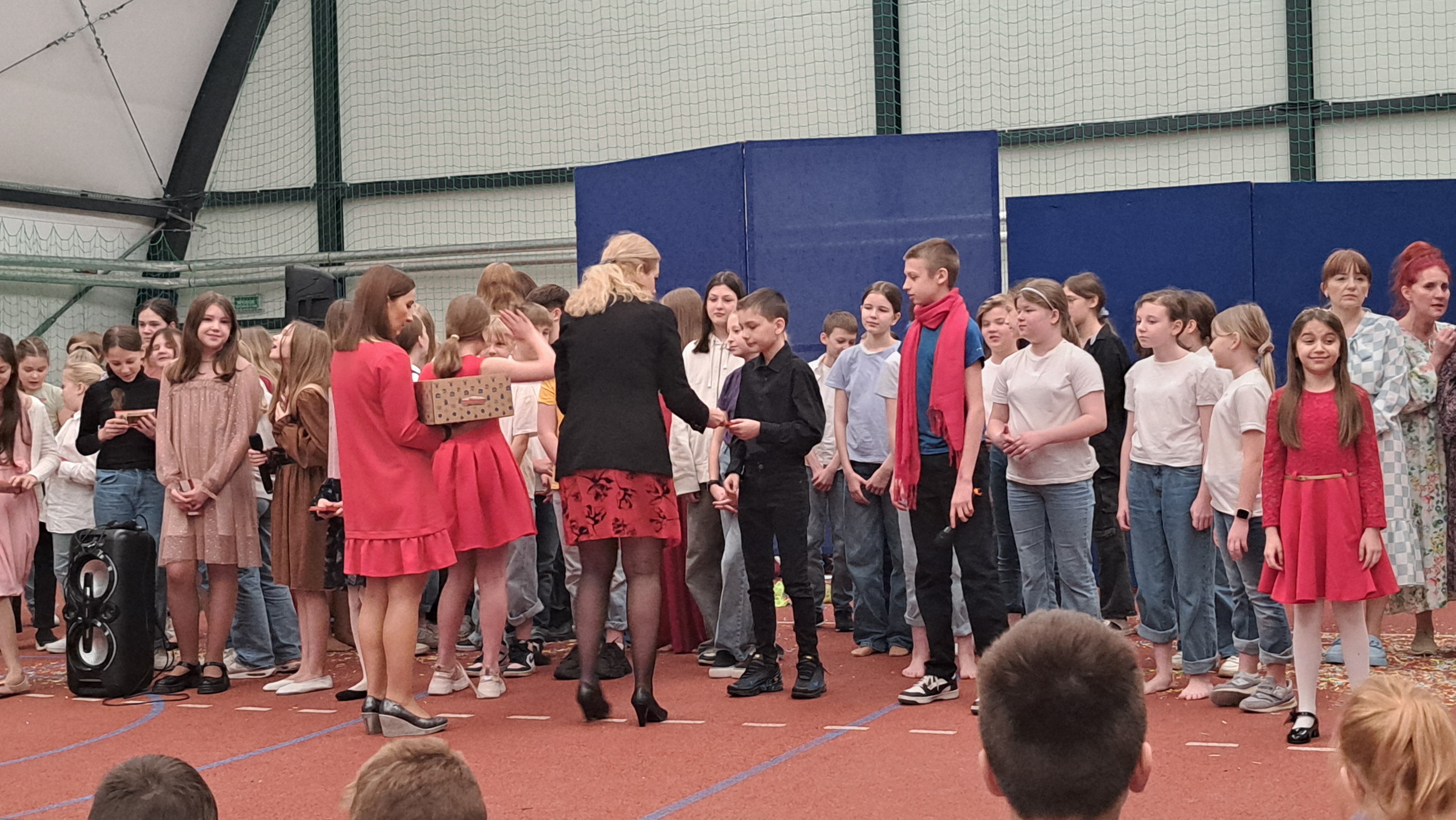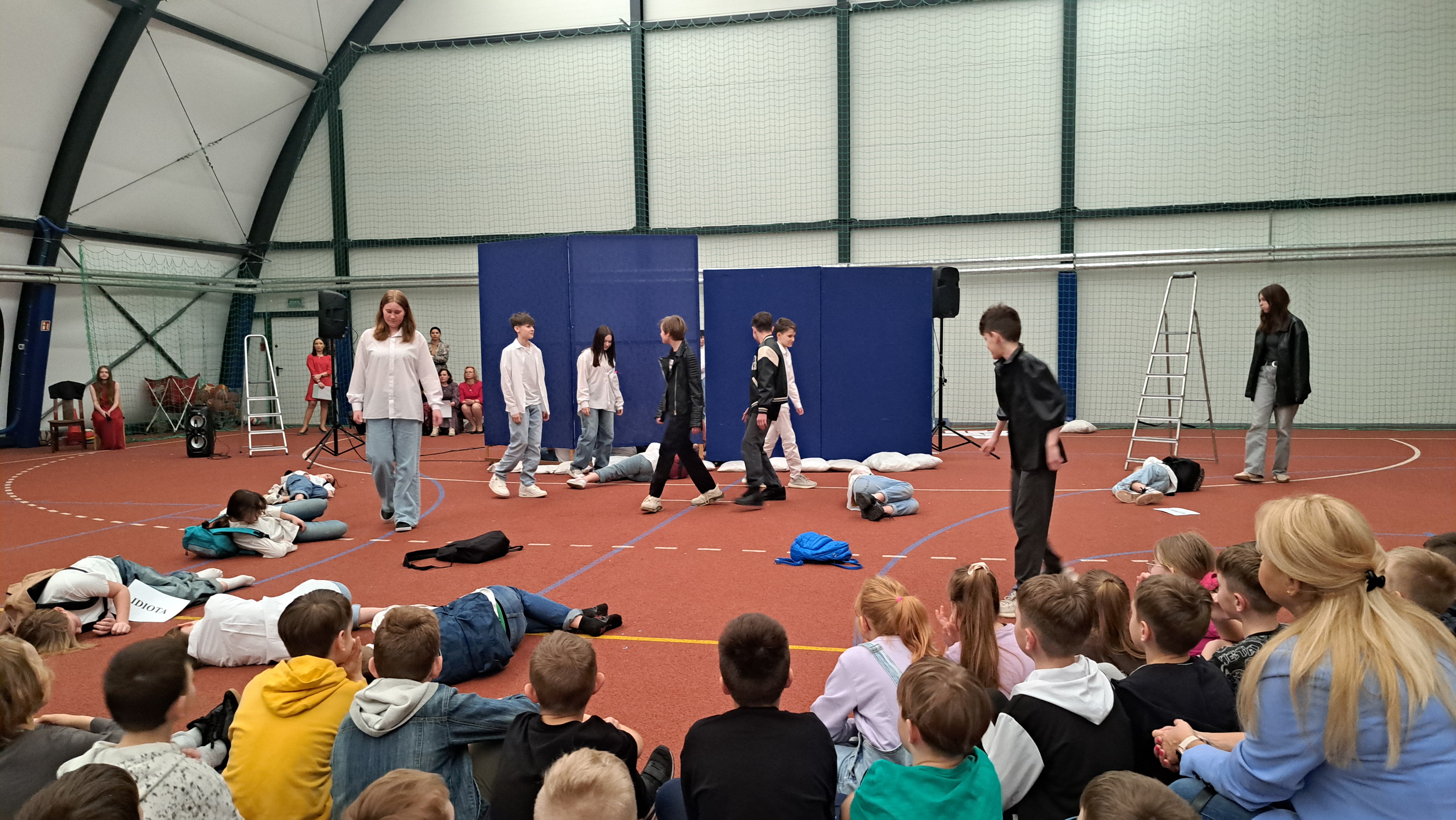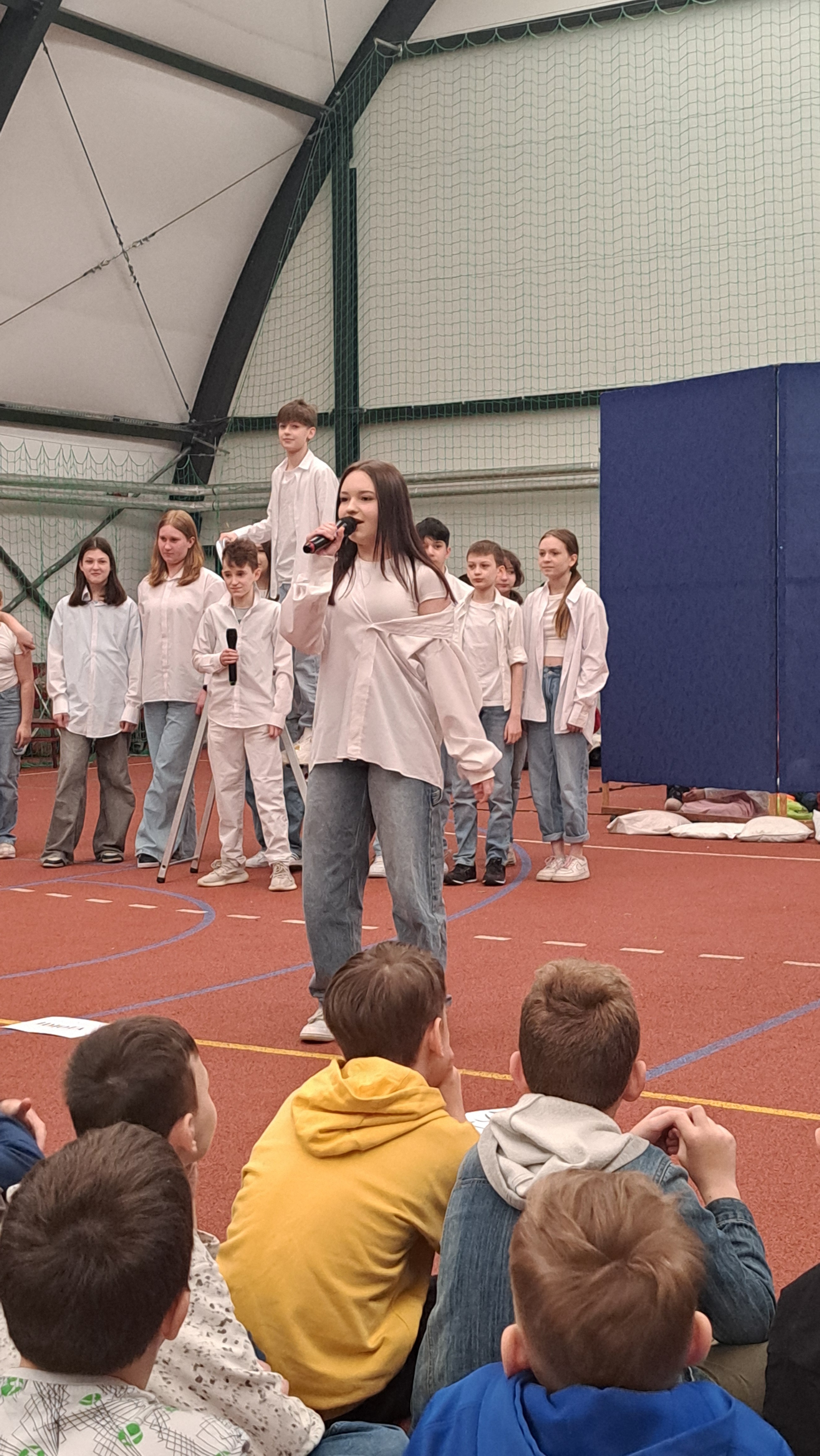 Dziś w naszej szkole odbyła się uroczystość pn. „Dobrem pokonajmy zło” w celu poruszenia ważnego tematu przeciwdziałania agresji i przemocy. Uczniowie klas 4-8 SP21 mogli obejrzeć spektakl w wykonaniu uczniów i nauczycieli naszej szkoły, który 26 marca 2024r. wzruszył i skłonił do refleksji honorowych gości, rodziców, dyrektorów elbląskich szkół podstawowych oraz delegacje nauczycieli i uczniów tych szkół zgromadzonych licznie na sali CSE „Światowid”.Starając się o uzyskanie certyfikatu „Szkoły Promującej Bezpieczeństwo”, chcemy szkoły, w której liczy się KAŻDY, w której KAŻDY jest potrzebny, wspierany, rozumiany. Pragniemy miejsca, które jest oknem nie tylko na świat, ale i zwierciadłem duszy, wrażliwym na ludzką krzywdę i cierpienie.Niewątpliwie problematyka przeciwdziałania agresji i przemocy nie jest nam obca. Robimy wszystko, aby szkoła była bezpieczna, czuła na ludzką krzywdę, by była miejscem, w którym każdy jest ważny. W Szkole Podstawowej nr 21 podejmujemy się wielu działań i inicjatyw, aby nie tylko uczniowie, ale również nauczyciele i pozostali pracownicy szkoły, czuli się tu dobrze, bezpiecznie… jak w domu, aby wszystkie dzieci z uśmiechem zaczynały i kończyły lekcje, aby właśnie TU znalazły spokój, możliwość zaspokajania swoich potrzeb, aby TU realizowały marzenia, spotykały dobrych, wrażliwych ludzi. Razem możemy naprawdę wiele. Wierzymy w to całym sercem, bo przecież dobrem pokonamy zło.Spektakl wyreżyserowały nasze dwie wyjątkowe polonistki: Pani Marta Mierzwa- Gałkowska i Pani Anna Jabłońska. „Dobrem pokonajmy zło” to hasło przewodnie przedstawienia i zarazem przejmujący krzyk, aby nigdy więcej żadne dziecko nie cierpiało, aby mogło cieszyć się dzieciństwem, nauką, zabawą.W spektaklu udział wzięli uczniowie z klas: 3a, 3c, 4a, 4c, 5a, 5b, 5c, 6a, 7b, 8a, a także zeszłoroczny absolwent naszej szkoły oraz nauczyciele:- śpiew: p.Joanna Fedyna, p.Magdalena Jakubowska, p.Anna Mulańska, p.Alicja Kaszuba, p.Karolina Woźniakowska;- recytacje: p.Joanna Kanikuła, p.Izabela Romanowska, p.Agnieszka Leśniewska, p.Lena Babecka, p.Anna Krakowska, p.Marta Mierzwa-Gałkowska, p.Anna Jabłońska.Po spektaklu Dyrektor Szkoły Podstawowej Nr 21 w Elblągu – Pani Joanna Celińska osobiście podziękowała naszemu wspaniałemu szkolnemu zespołowi teatralno-muzycznemu, wręczając uczniom słodkie upominki.Podczas uroczystości wyróżnione zostały również klasy, które wzięły udział w przygotowaniu plakatów na temat przeciwdziałania agresji i przemocy. Posłużyły one jako dekoracja sali podczas międzyszkolnego konkursu recytatorsko-oratorskiego pt. „Dobrem pokonajmy zło”, który został zorganizowany przez naszą szkołę w dniu 20 marca 2024r.Życzymy wszystkim wszechogarniającego DOBRA i pamiętajcie, że tylko DAWANE dobro wraca. Warto zapamiętać i wprowadzić w życie motto dzisiejszej uroczystości, sentencję Jana Pawła II: „Nie daj się zwyciężyć złu, ale zło DOBREM zwyciężaj.”