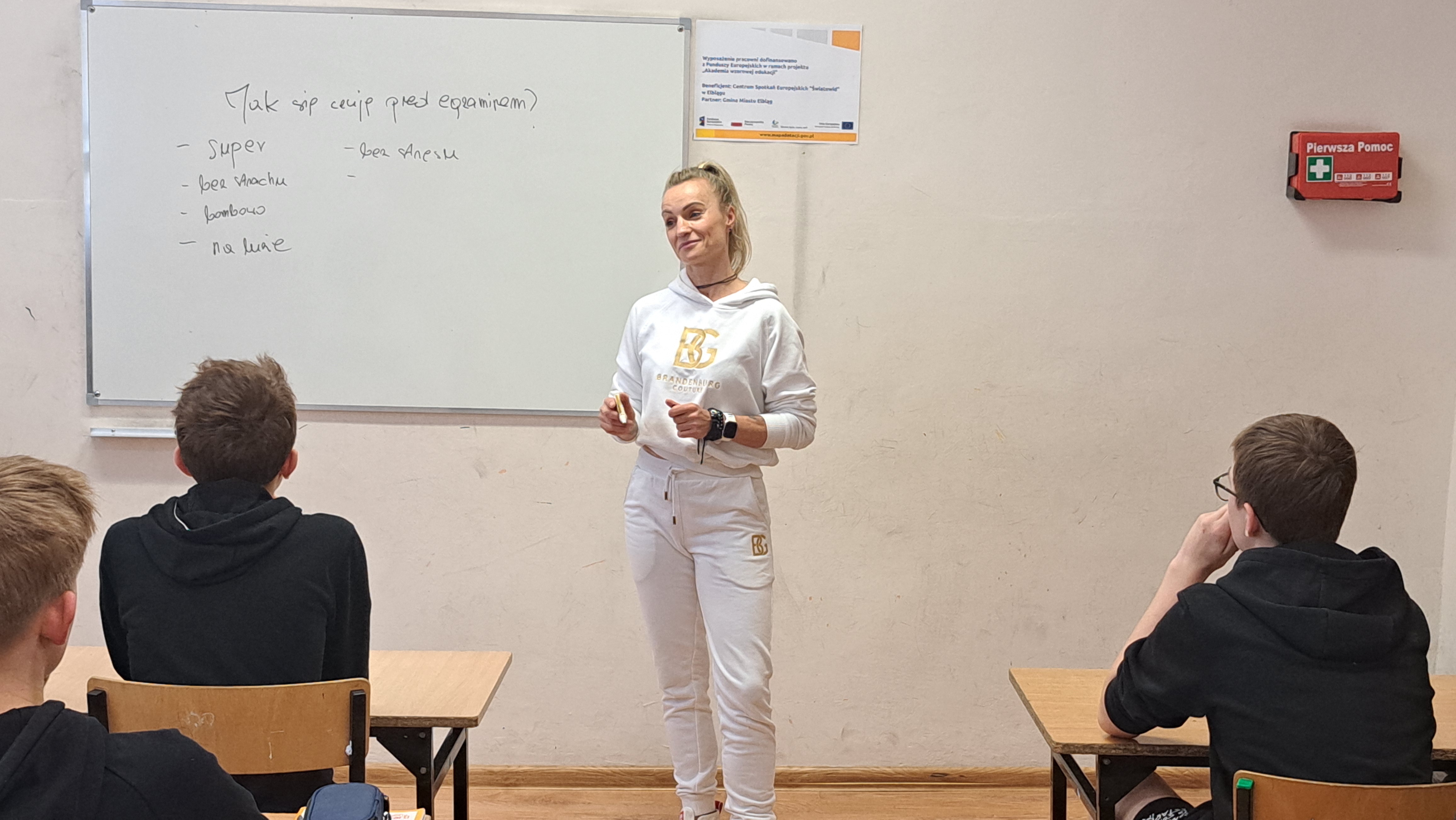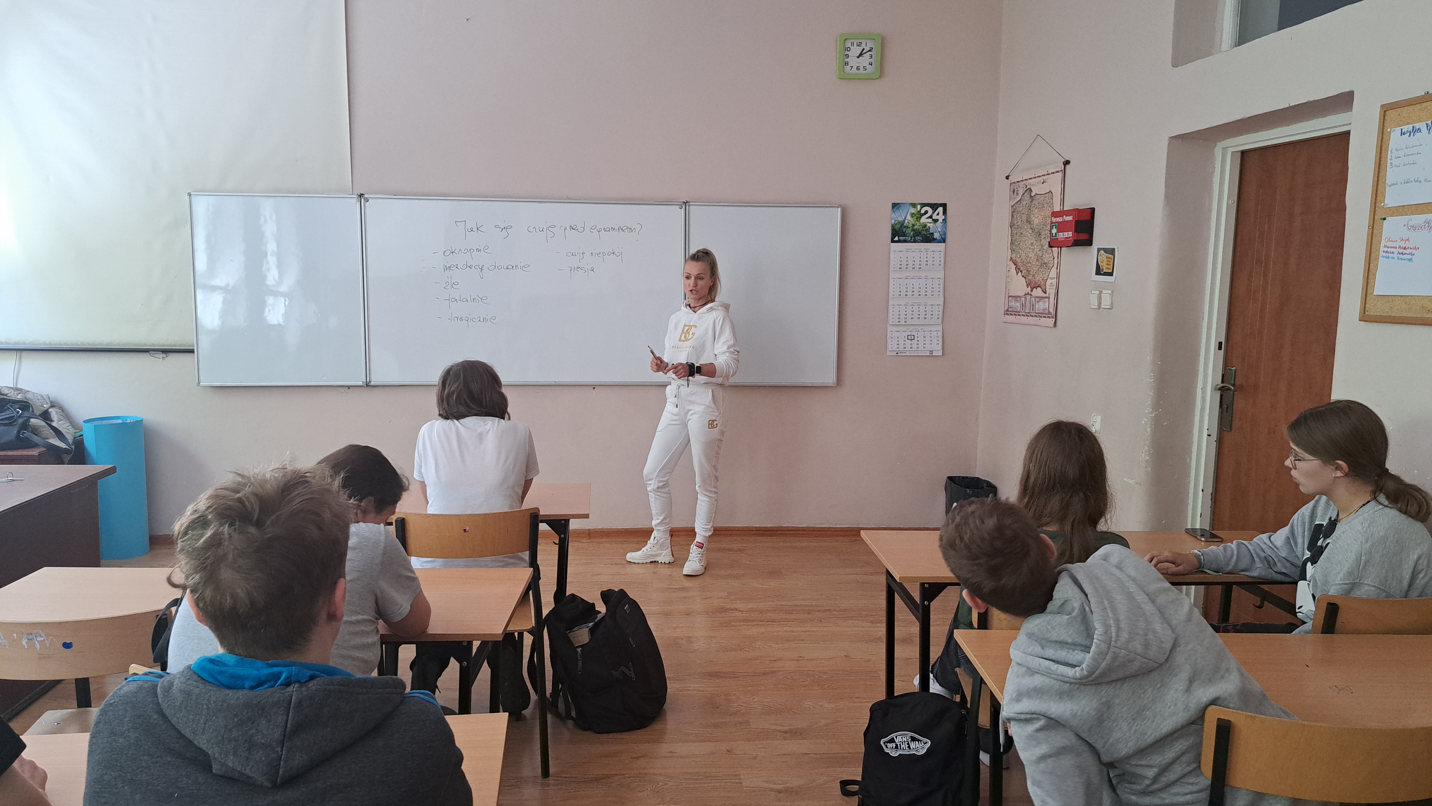 Przed najstarszym naszymi uczniami egzaminy a zatem warto nauczyć się szukać pozytywów, uwierzyć w siebie. Temu właśnie służyły specjalne warsztaty przygotowane przez Panią Ewę Wewersowicz, w których wzięli udział wszyscy ósmoklasiści. Uczniowie pracowali w grupach, zapisując odczuwane emocje. Poza tym uczyli się radzić z trudnymi sytuacjami, znajdować korzystną alternatywę, szukać pozytywnego myślenia. Ważne jest w tym wszystkim opanowanie niełatwej, ale jakże potrzebnej techniki oddechowej, relaksacji i wprowadzenia takiej diety, która pomoże w koncentracji oraz sprawnym funkcjonowaniu umysłu. Przed egzaminami trzeba się: wyspać, odpocząć, powtarzać sobie, że wszystko na pewno się uda. Świetne warsztaty tylko utwierdziły przyszłych absolwentów w przekonaniu, że to będą na pewno dobre, owocne dni i niewątpliwie „nie taki diabeł straszny jak go malują „.