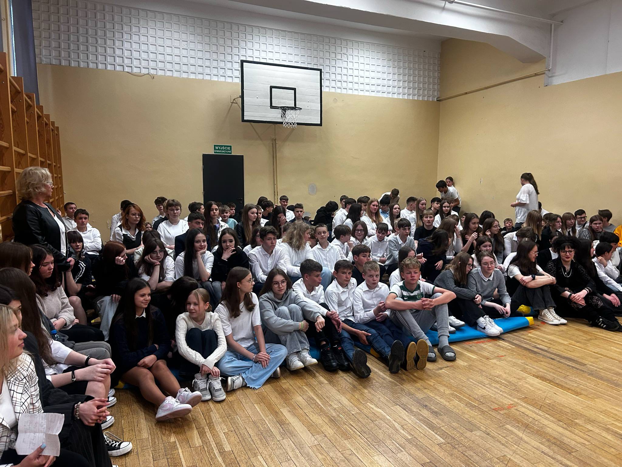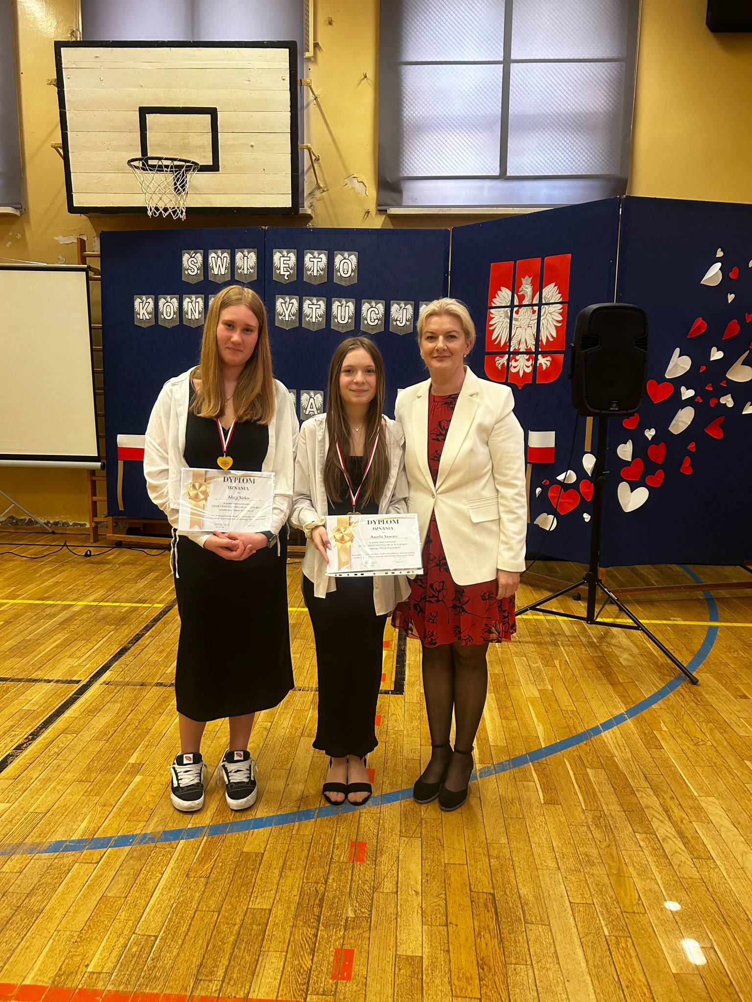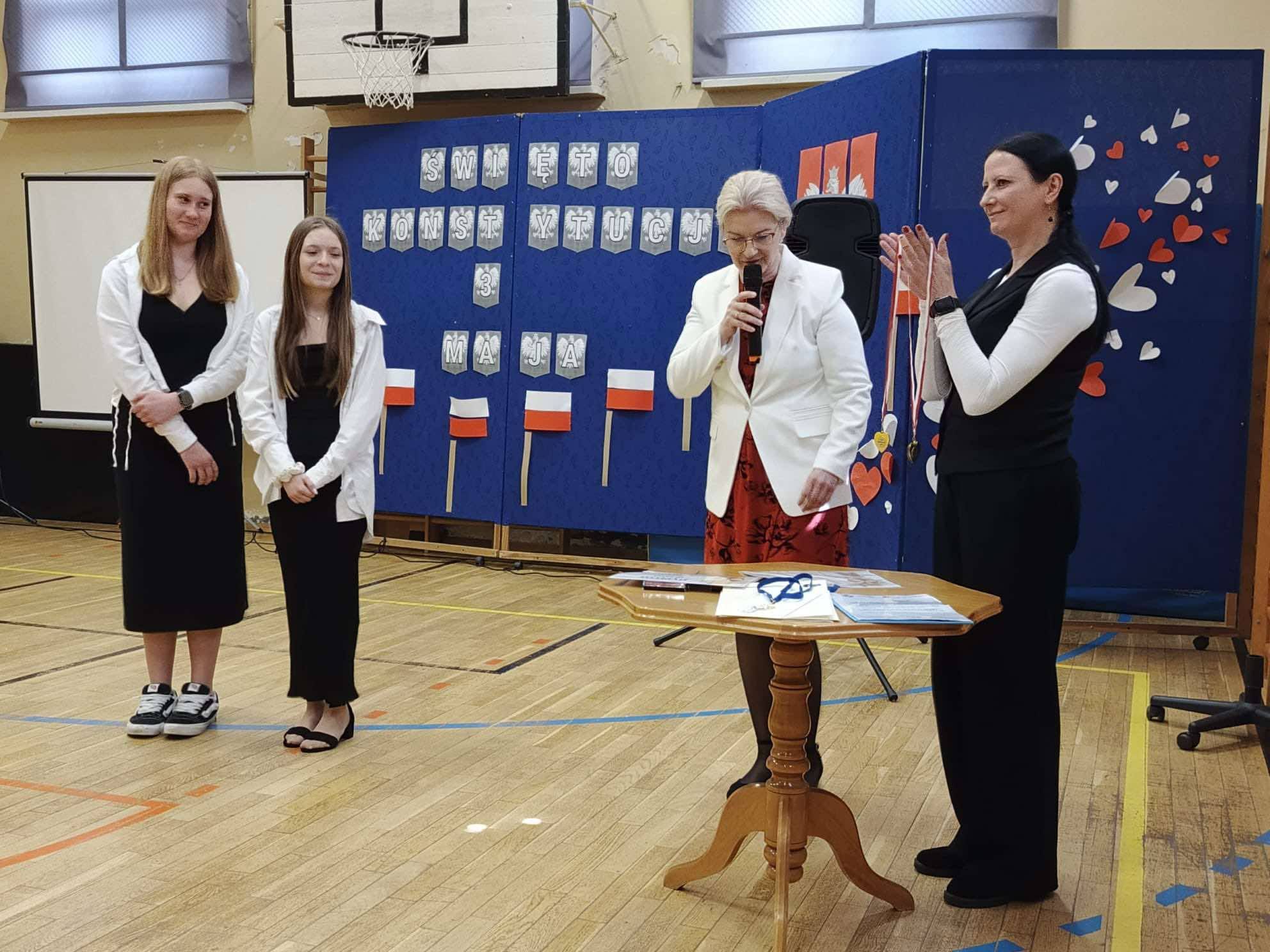 Podczas spotkania wyróżnione zostały również uczennice klasy 8b – Amelia i Ala – wolontariuszki, które godnie reprezentowały naszą szkołę w konkursie „Ośmiu Wspaniałych”, dając przykład empatii, gotowości do niesienia pomocy i wrażliwości na potrzeby innych.