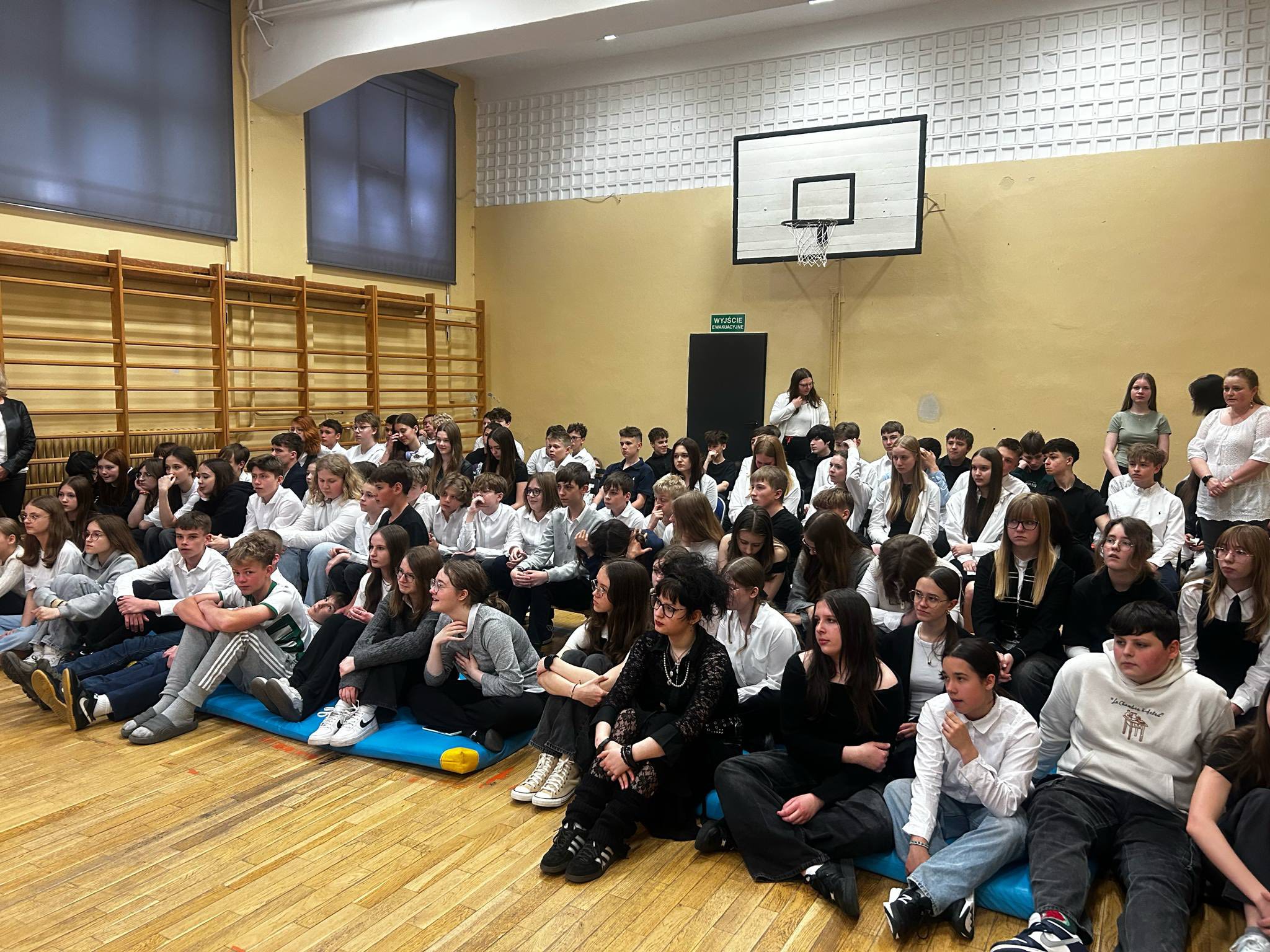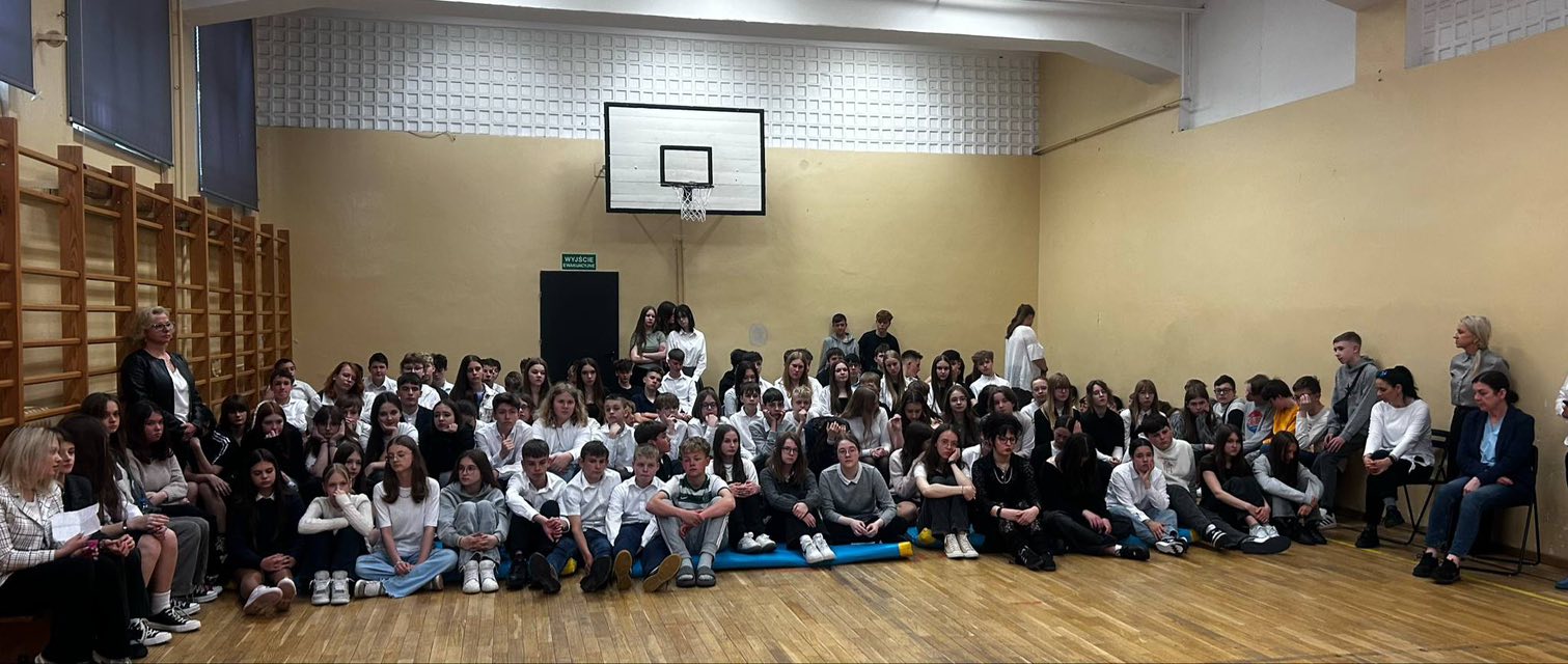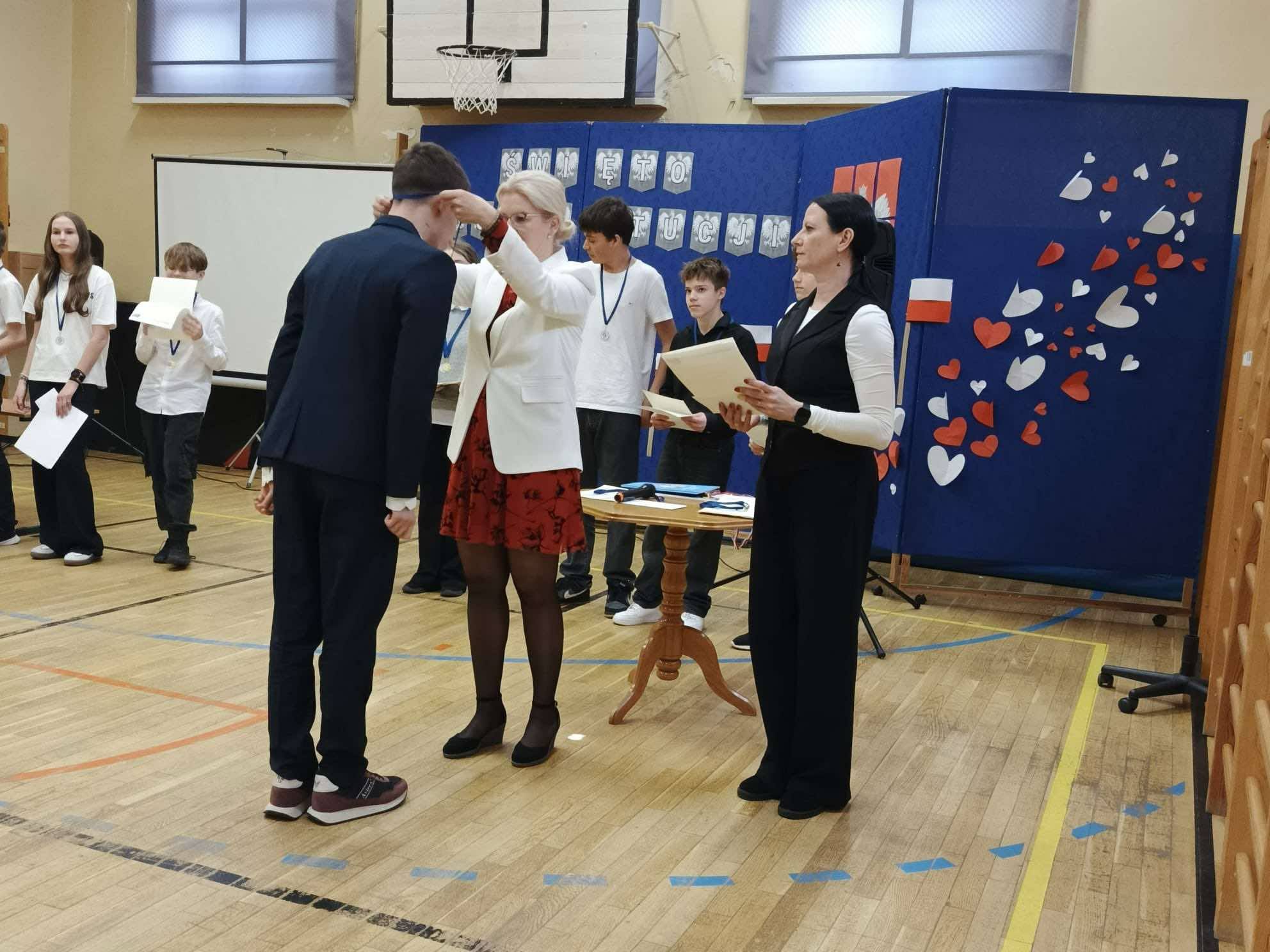 Podczas spotkania wyróżnione zostały również uczennice klasy 8b – Amelia i Ala – wolontariuszki, które godnie reprezentowały naszą szkołę w konkursie „Ośmiu Wspaniałych”, dając przykład empatii, gotowości do niesienia pomocy i wrażliwości na potrzeby innych.