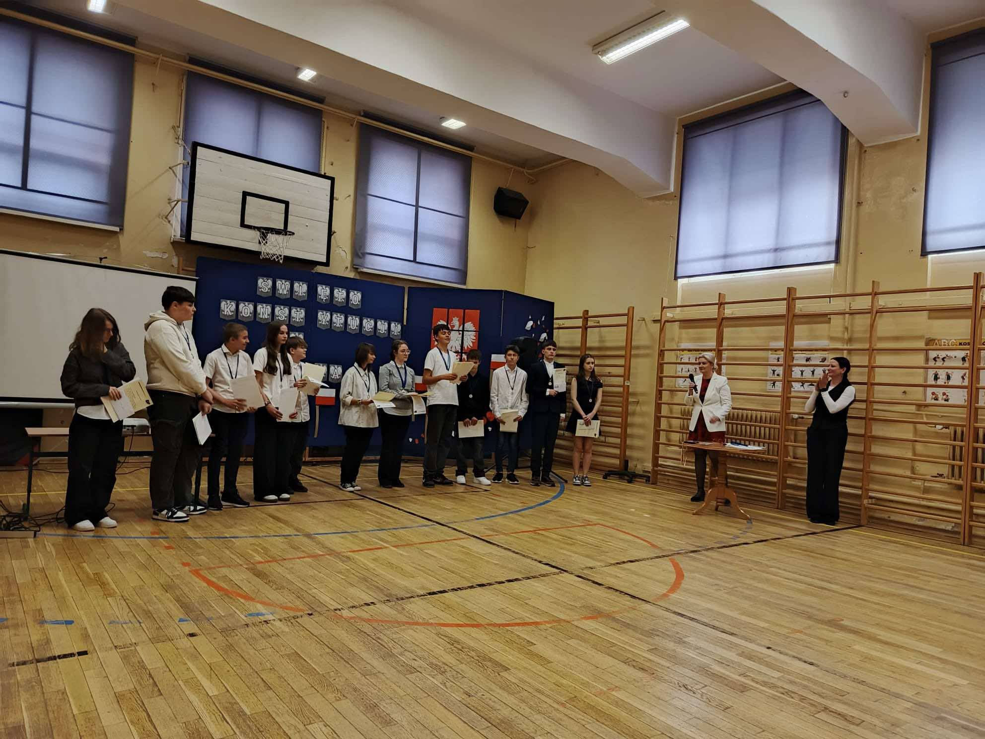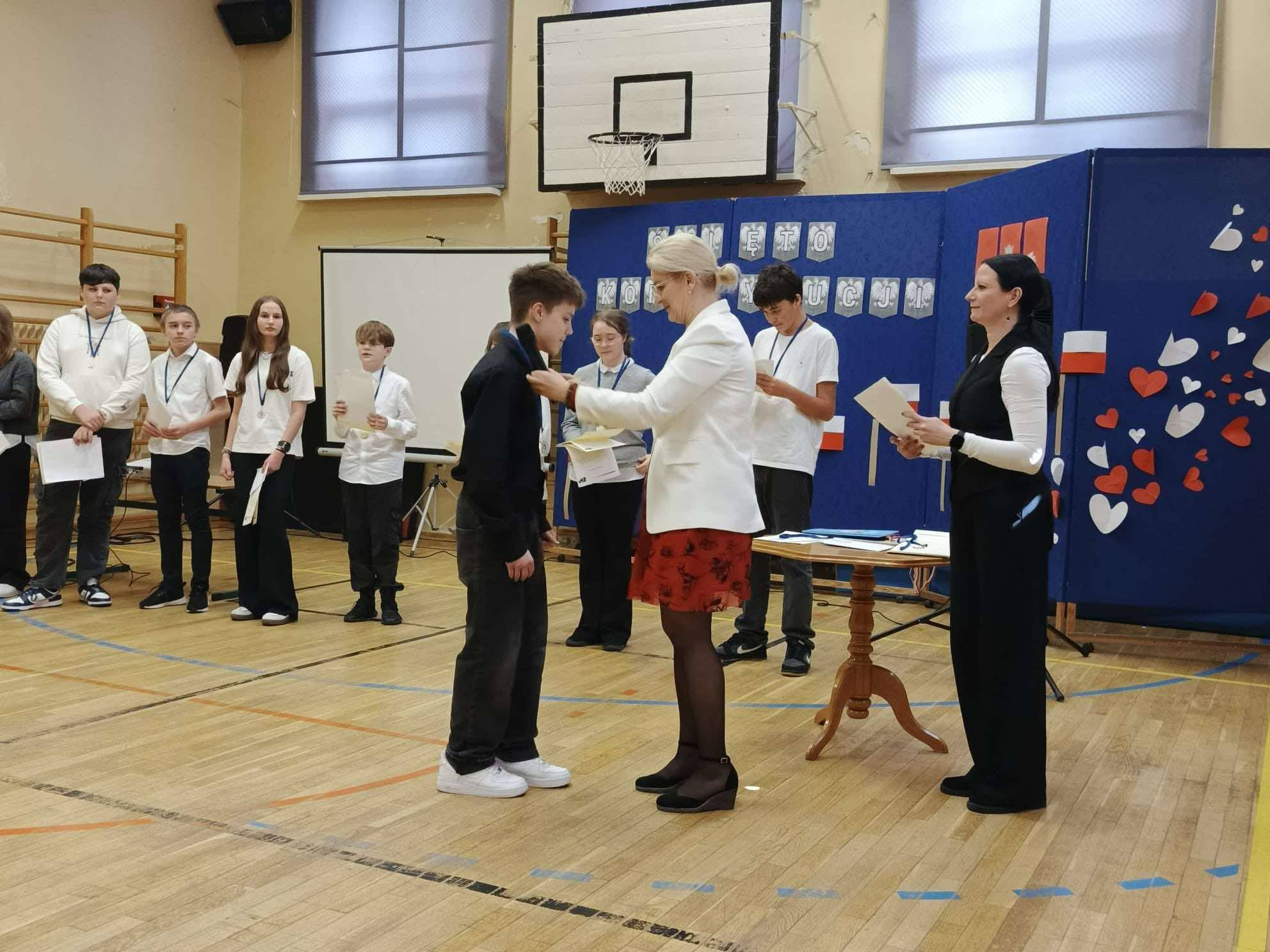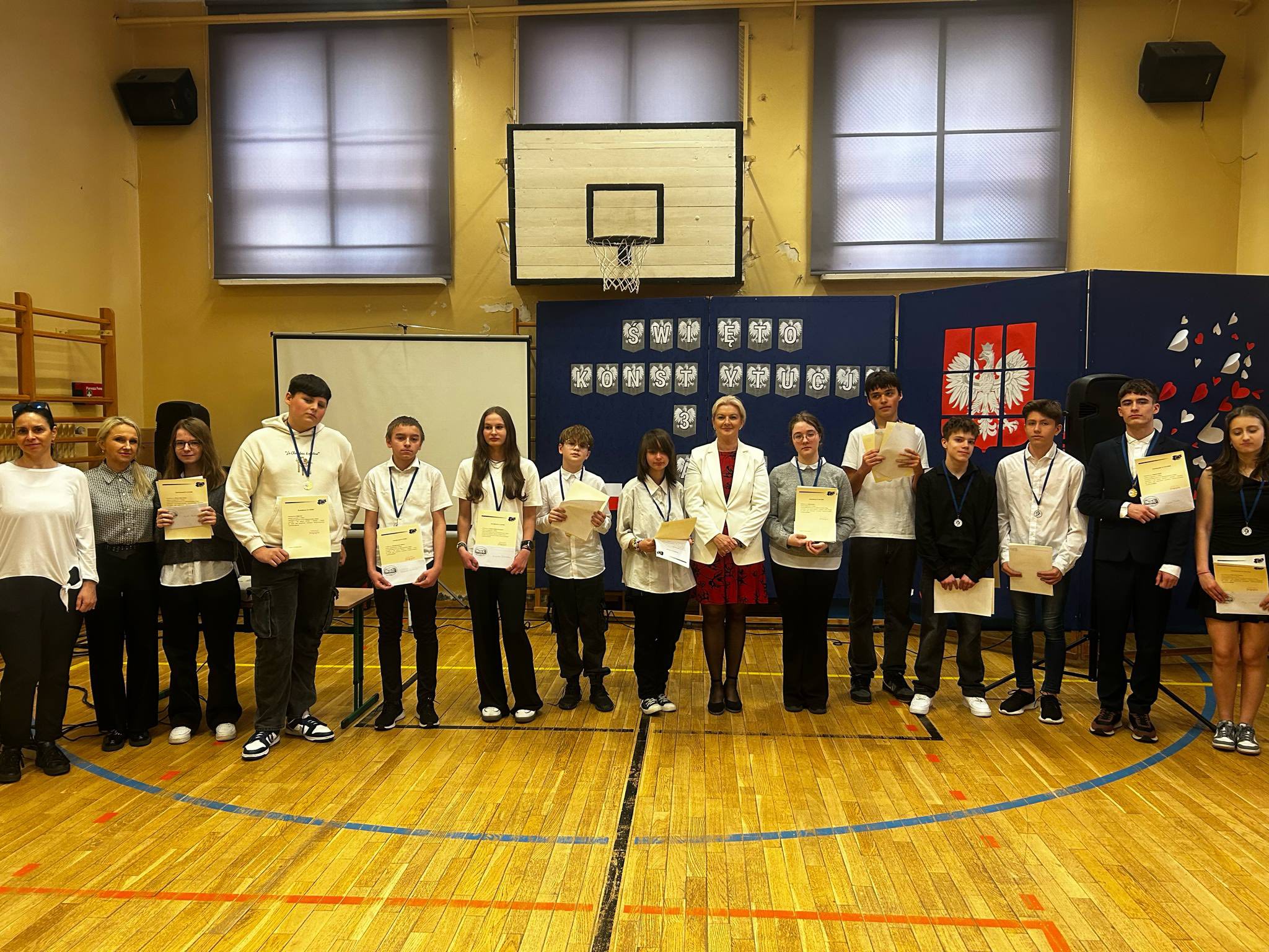 Dziś, odbyło się uroczyste spotkanie Pani Dyrektor z uczniami klas 7 i 8, podczas którego wręczone zostały zaświadczenia oraz medale dla uczniów, którzy uzyskali tytuł laureata i finalisty w konkursach przedmiotowych. Był to wyjątkowy moment docenienia ich ciężkiej pracy, zaangażowania i motywacji do zdobywania wiedzy.
