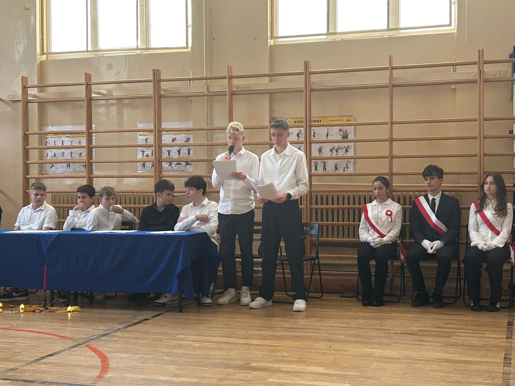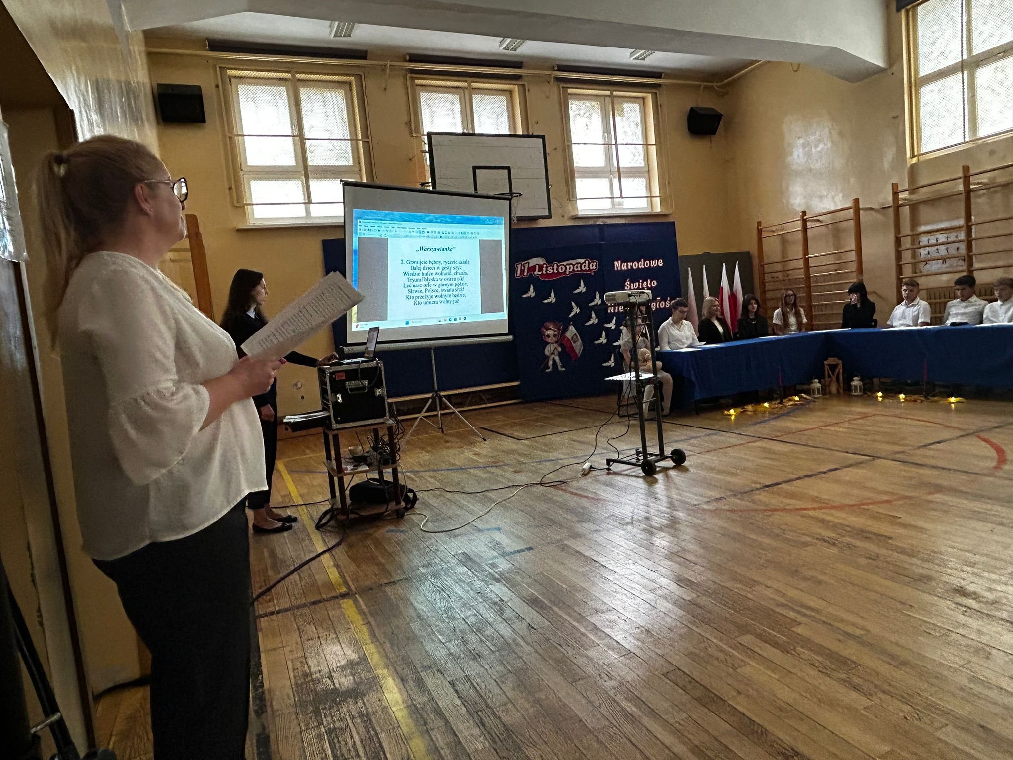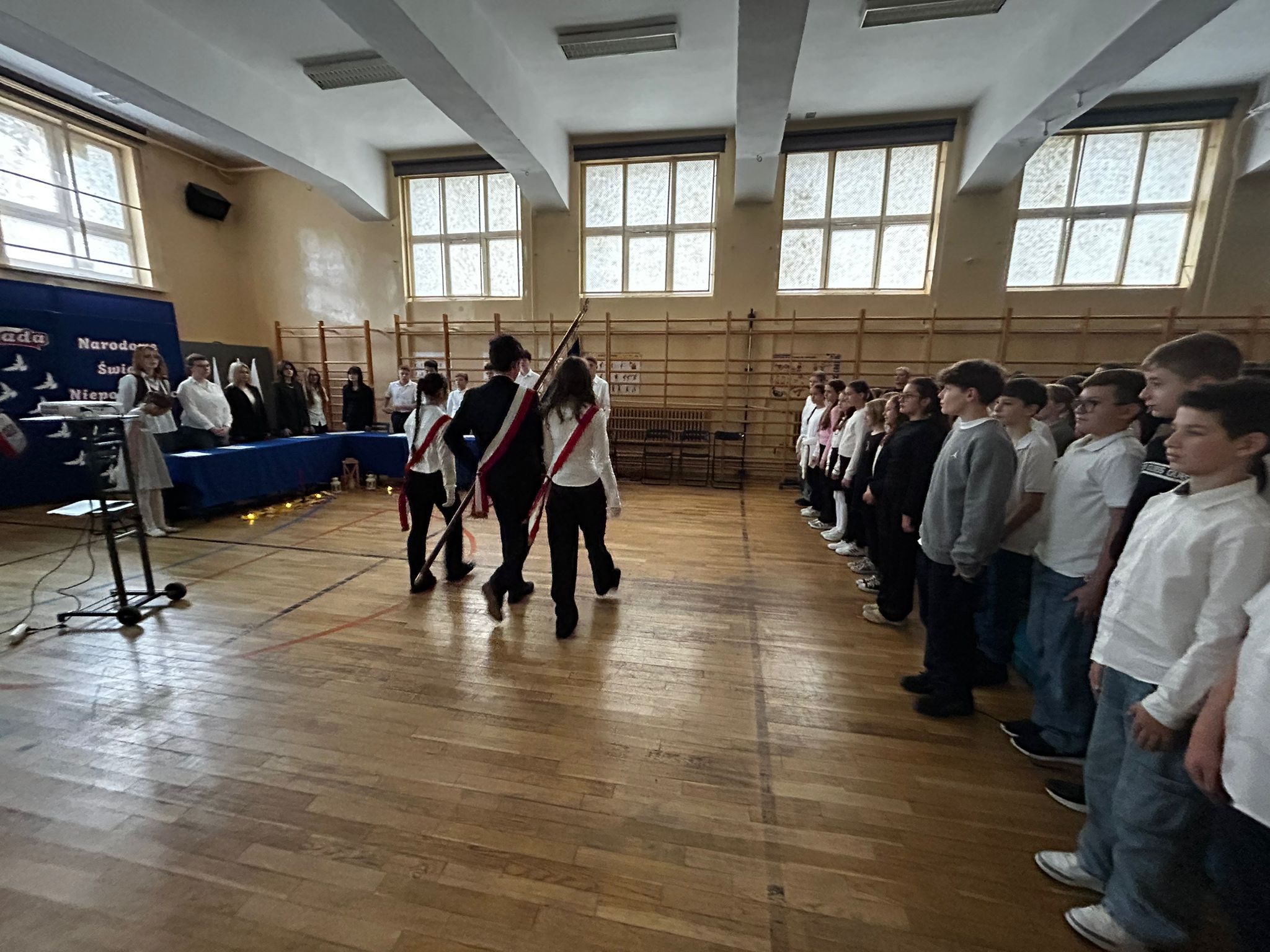 Uroczystość rozpoczęła się od wprowadzenia sztandaru szkoły i wspólnego odśpiewania hymnu narodowego- ” Mazurka Dąbrowskiego”, gdyż bierzemy udział w corocznej akcji pod patronatem MEN ” Szkoła do hymnu”.