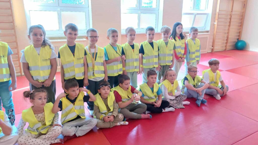 Dziękujemy także firmie Interrisk, naszemu ubezpieczycielowi, za wyposażenie uczniów w kamizelki odblaskowe. Wkrótce dostaną je kolejne klasy ![]()