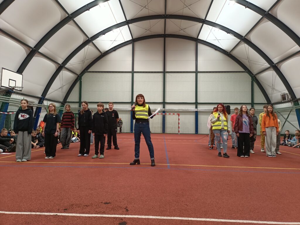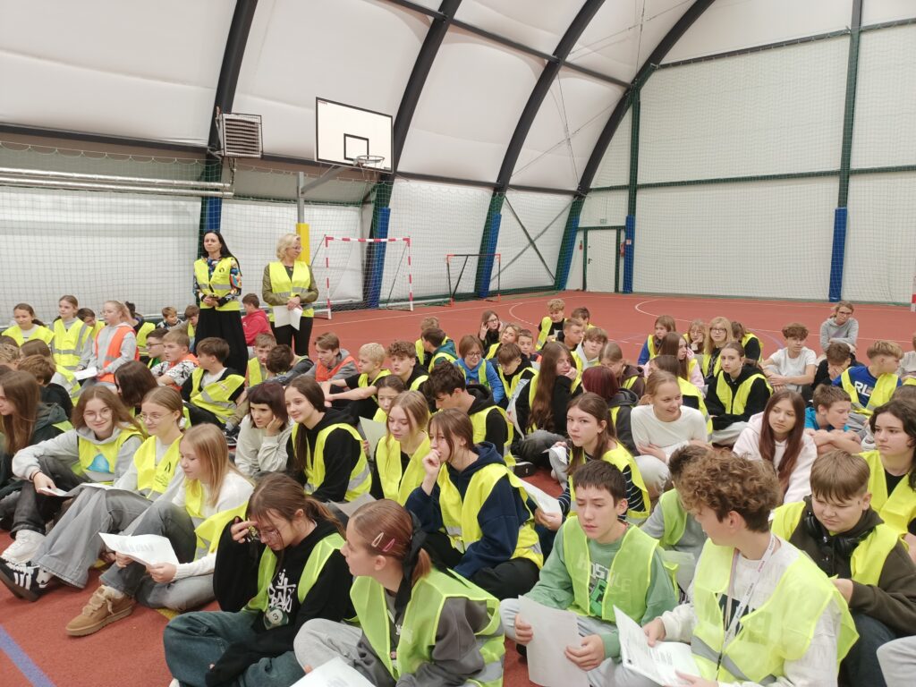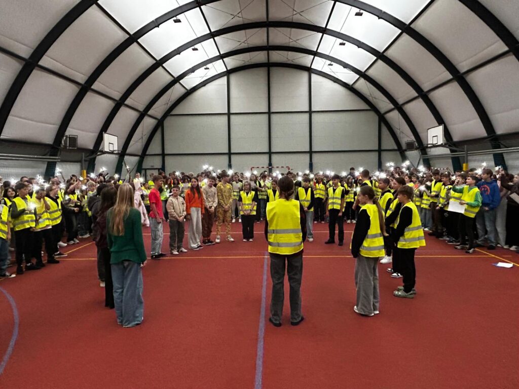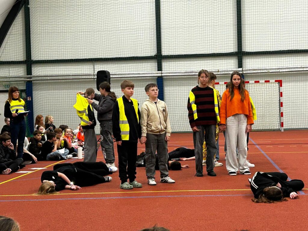 Dzisiejszy Happening „w odblaskach” – wydarzenie artystyczne zorganizowano z użyciem odblasków jako głównego elementu wizualnego i symbolicznego. Akcja dla uczniów klas 4-8 miała zwrócić uwagę na bezpieczeństwo pieszych, rowerzystów, sprowokować do dyskusji.