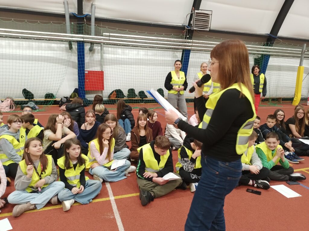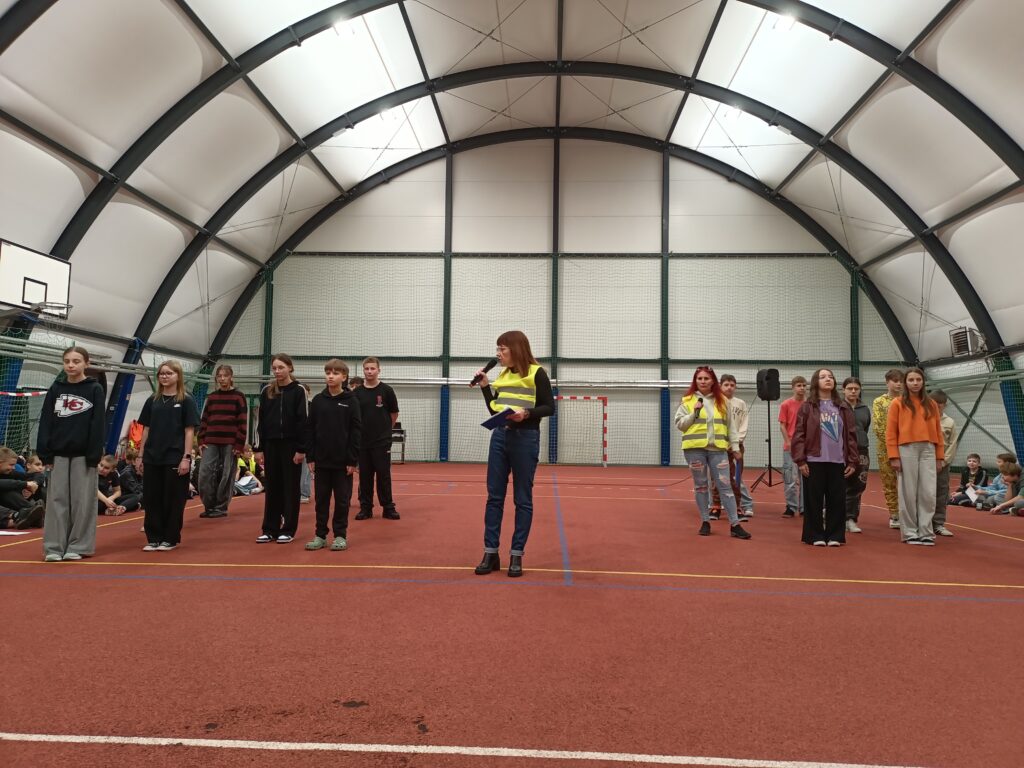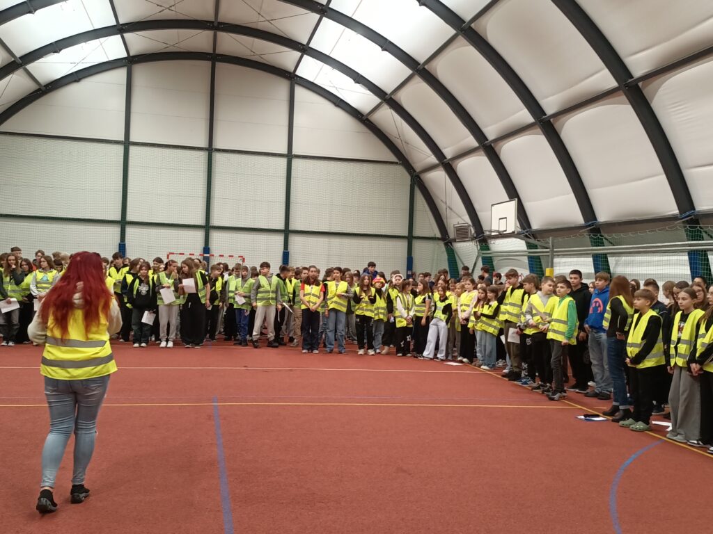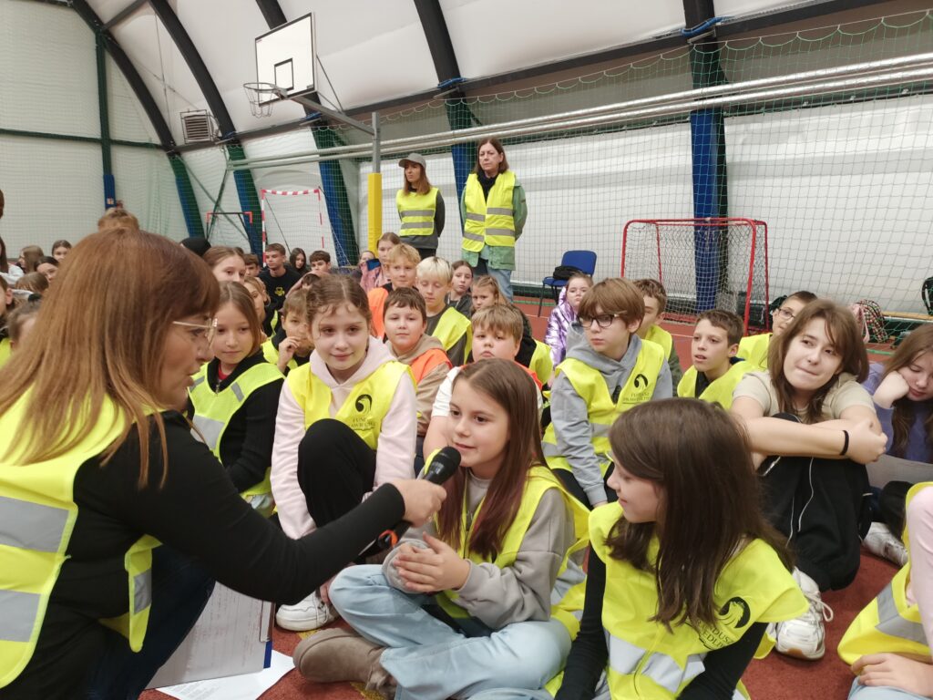 Dzisiejszy Happening „w odblaskach” – wydarzenie artystyczne zorganizowano z użyciem odblasków jako głównego elementu wizualnego i symbolicznego. Akcja dla uczniów klas 4-8 miała zwrócić uwagę na bezpieczeństwo pieszych, rowerzystów, sprowokować do dyskusji.